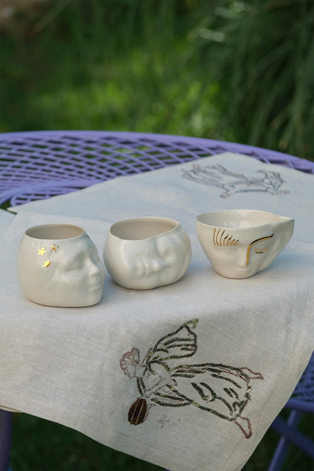 ‘Uyuyan güzel’ fincan ilhamını masallardan aldıHer zaman güzel, tutkulu, uykudan istediği gibi uyanan ‘uyanık güzeller’e hitaben hazırlandıYunan mitolojisinin büyücü tanrıçası ‘Kirke’, en etkili gizini paylaşıyor bizlerleİlk büyüsünü nefretten değil aşkından yapmış olmalı!Türkiye’de çağdaş seramikçiliğin öncülerinden ilk kadın seramikçimiz ‘Füreya’ Koral’dan aldığımız ilhamla biçimlendirdik fincanımızıSaçlarını, her biri birbirinden farklı ve eşsiz altın yıldızlarla süsledikBir arada eşsisz bir uyum yakalıyorlarSabah kahvenize, çayınıza incecik bir eşlikçi olabilirler, ya da hayal ettiğiniz her yerde kullanabilirsiniz, minik kase veya süs objesi olarak.