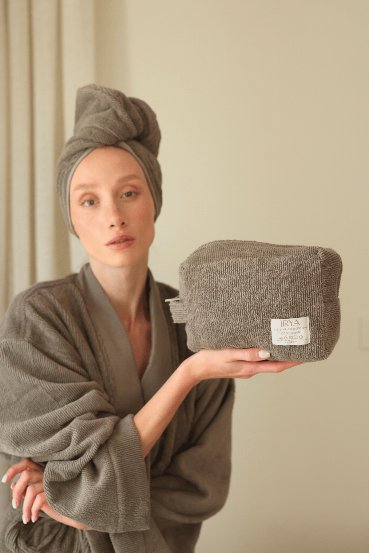 Zamansız tasarımı, doğal pamuk liflerinin konforu ve pratik bakım çantasıyla Solena havlu çanta, banyonuza hem şıklık hem de işlevsellik katar.