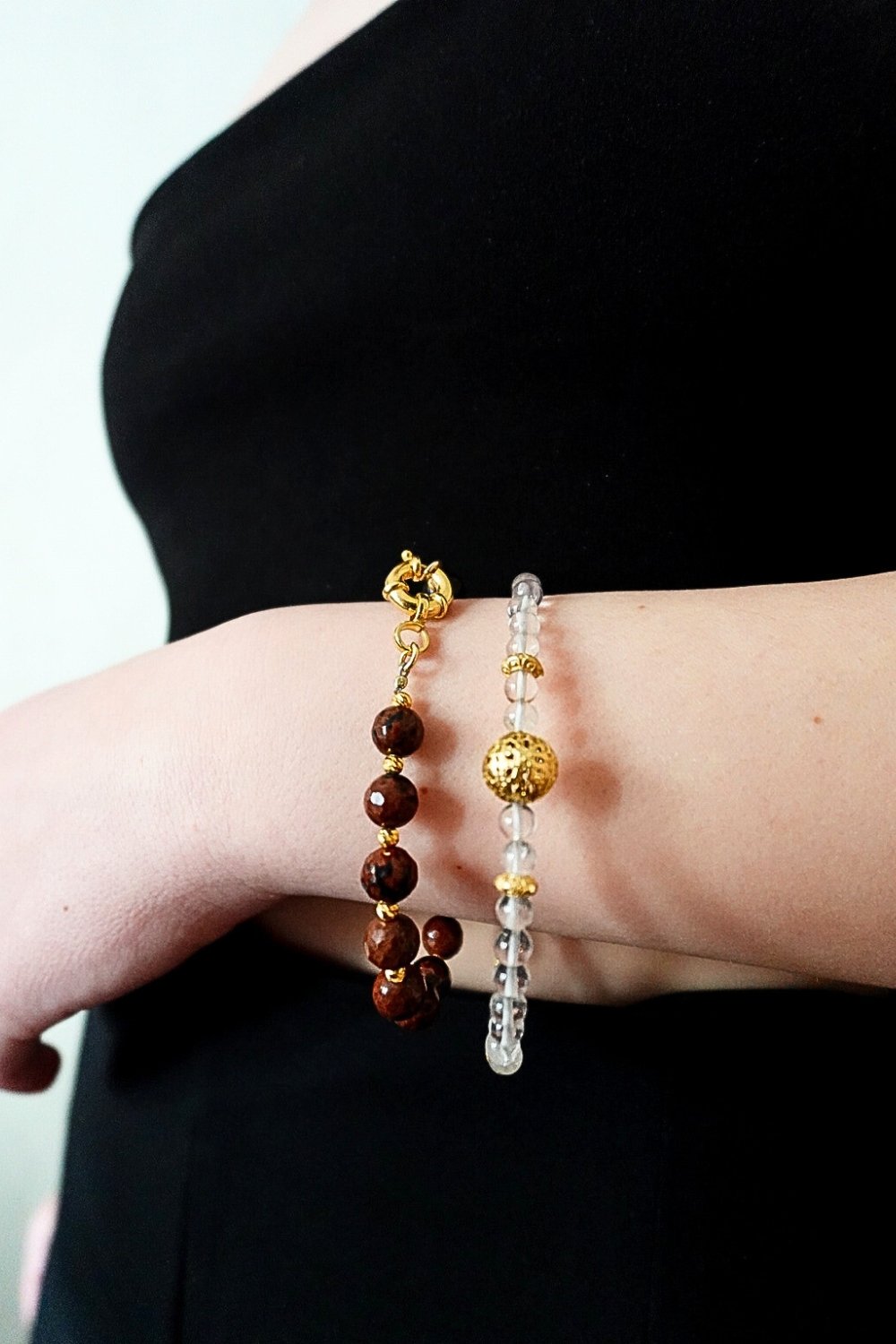 Bronn Berrak Kuvars Doğal Taş Bileklik - Hava Elementi