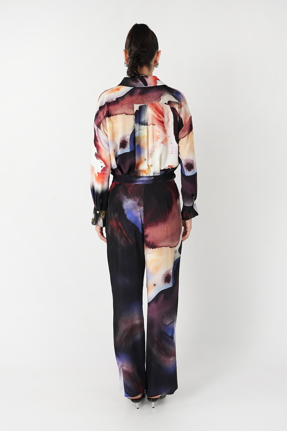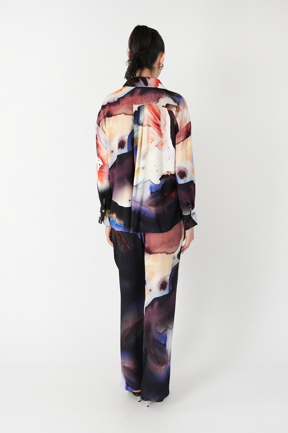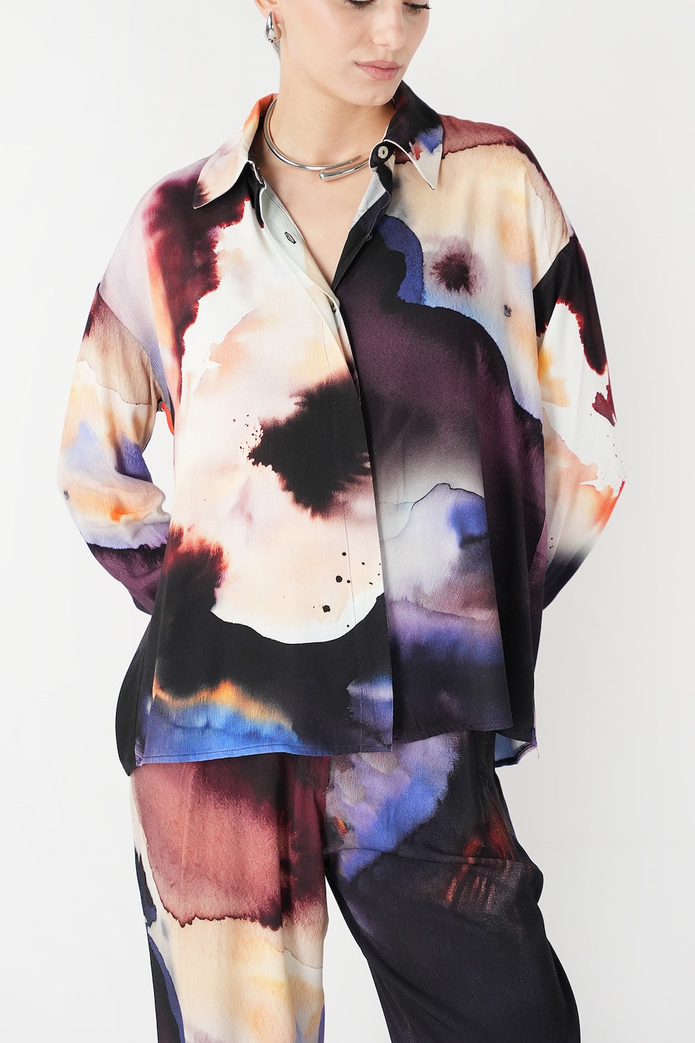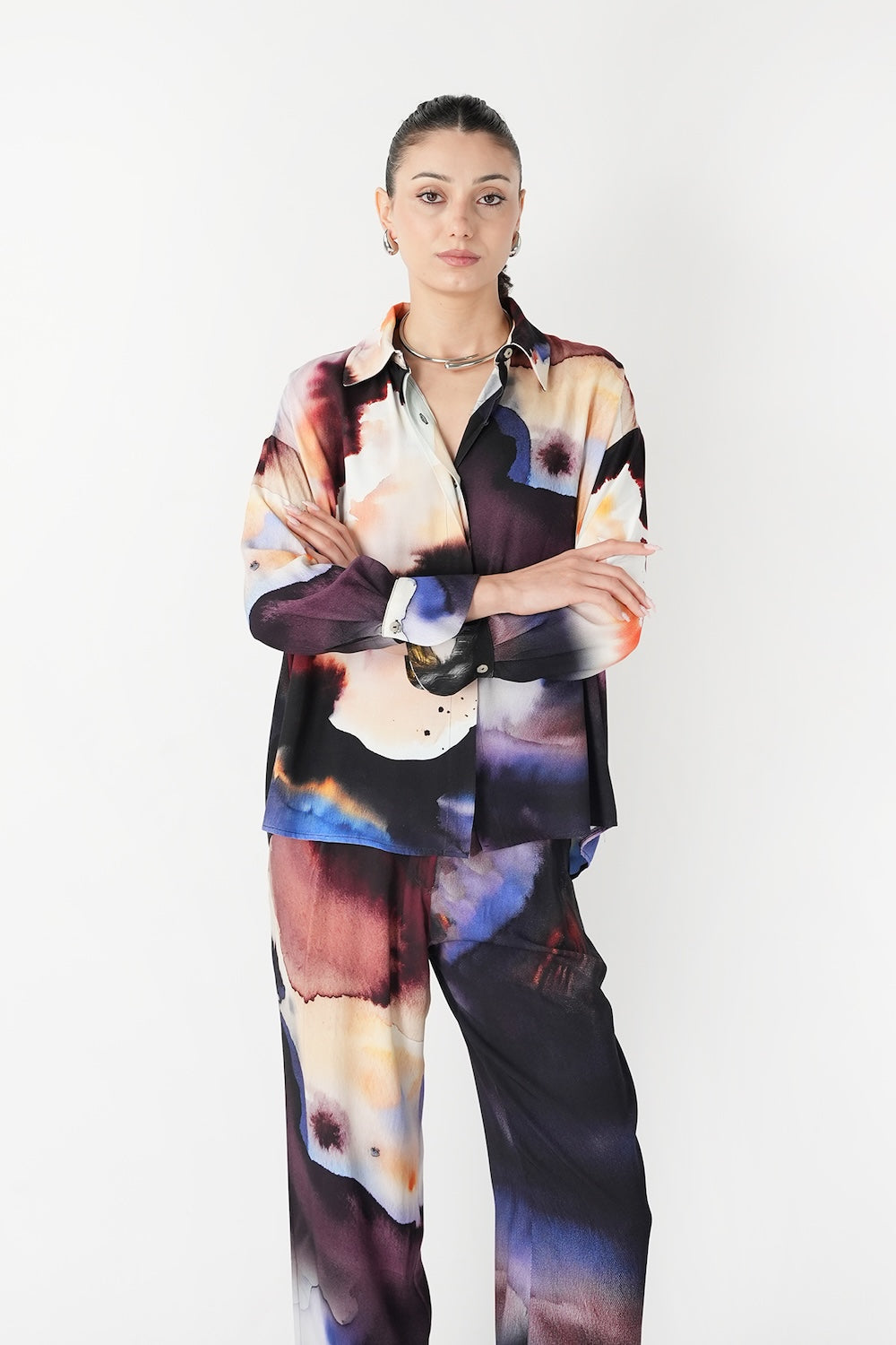 El boyası suluboya çizimlerinden ilham alan desenleriyle güçlü ve özgün bir görünüm sunar. Sanatsal dokusu, dijital baskı tekniğiyle pamuk kumaşa aktarılmıştır. Doğadan beslenen renkleri ve modern silueti sayesinde hem günlük kullanımda hem de şık kombinlerde rahatlıkla tercih edilebilir. Hafif ve nefes alabilen yapısı gün boyu konfor sağlar.