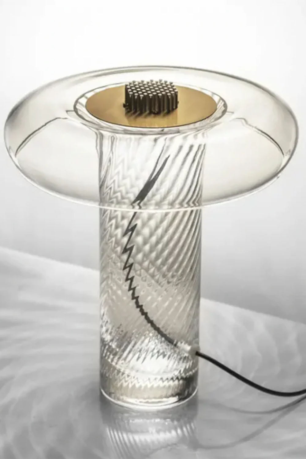 Atolye Store tarafından satışa sunulan Lucia Cam Masa Lambası, özel yapım cam gövdesi ve modern cam birleşimi ile aydınlatmanın yanı sıra özel bir dekor özelliği sunuyor.