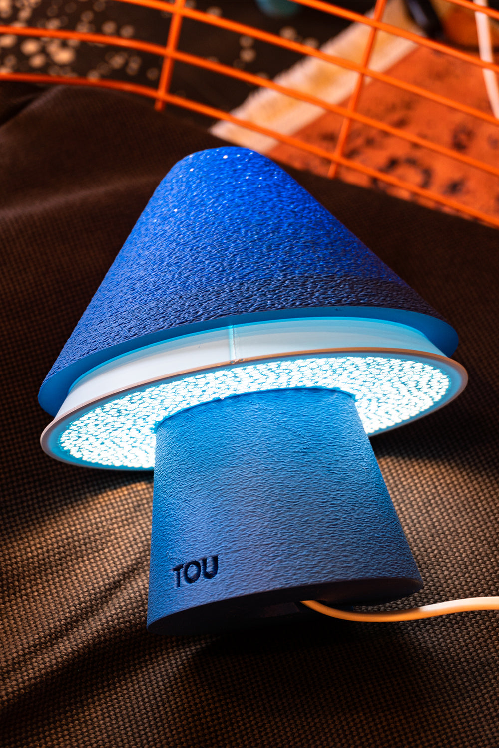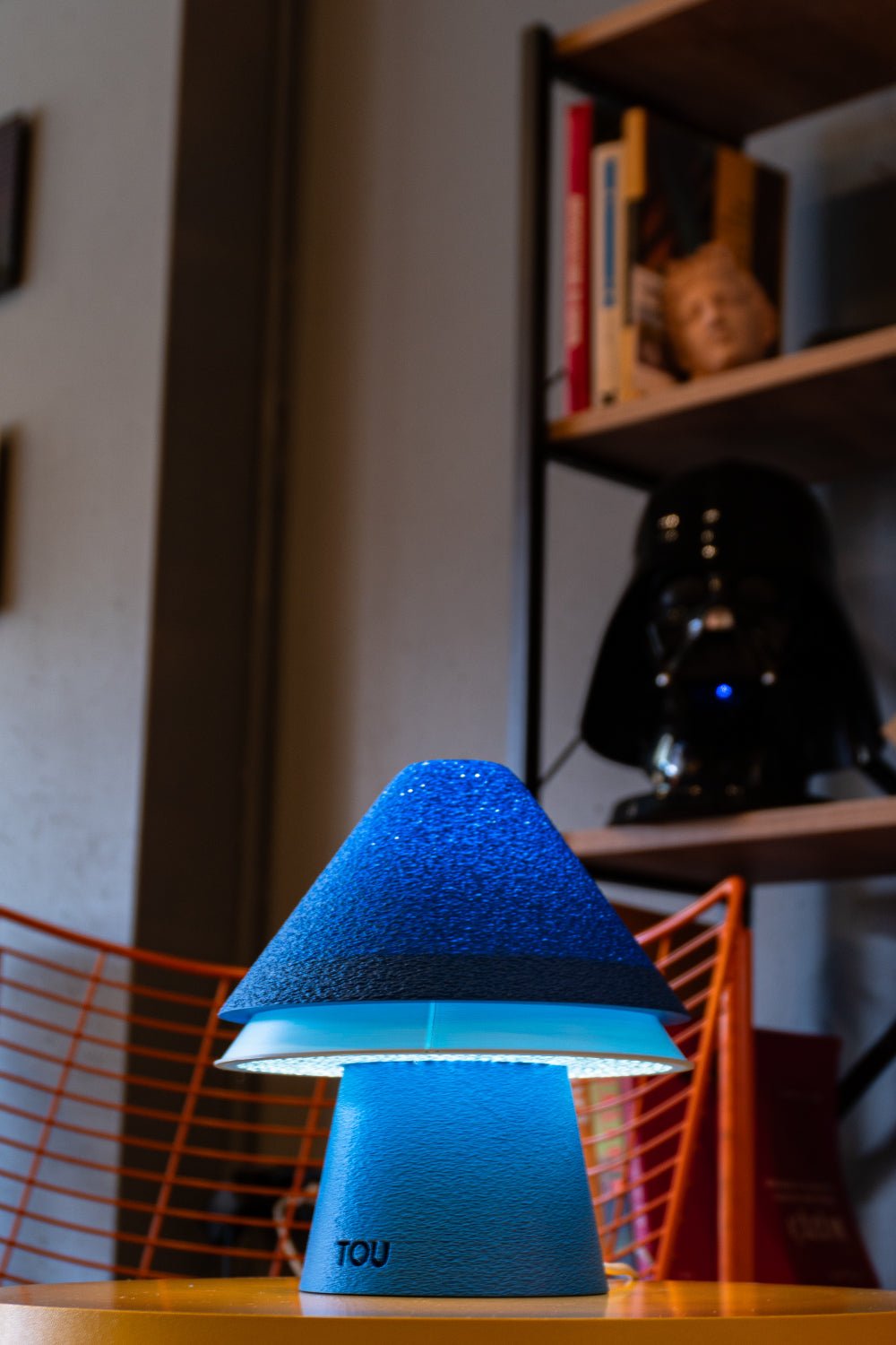 Bu masa lambası, mantar formundan esinlenerek tasarlanmış olup, dokulu mavi gövdesi ve organik hatlara sahip pastel mavi başlığı ile sıcak ve davetkar bir aydınlatma sağlar. Minimal boyutları sayesinde çalışma masası, başucu ya da TV ünitesi gibi alanlarda şık bir dekoratif unsur olarak tercih edilebilir. Üretiminde kullanılan biyoplastikler, hem doğa dostu bir yaklaşımı destekler hem de çevreye uyumlu bir tasarım sunar. Hem estetik hem de sürdürülebilirliği bir araya getiren bu lamba, yaşam alanlarına zarif bir dokunuş katmak için ideal bir seçimdir.