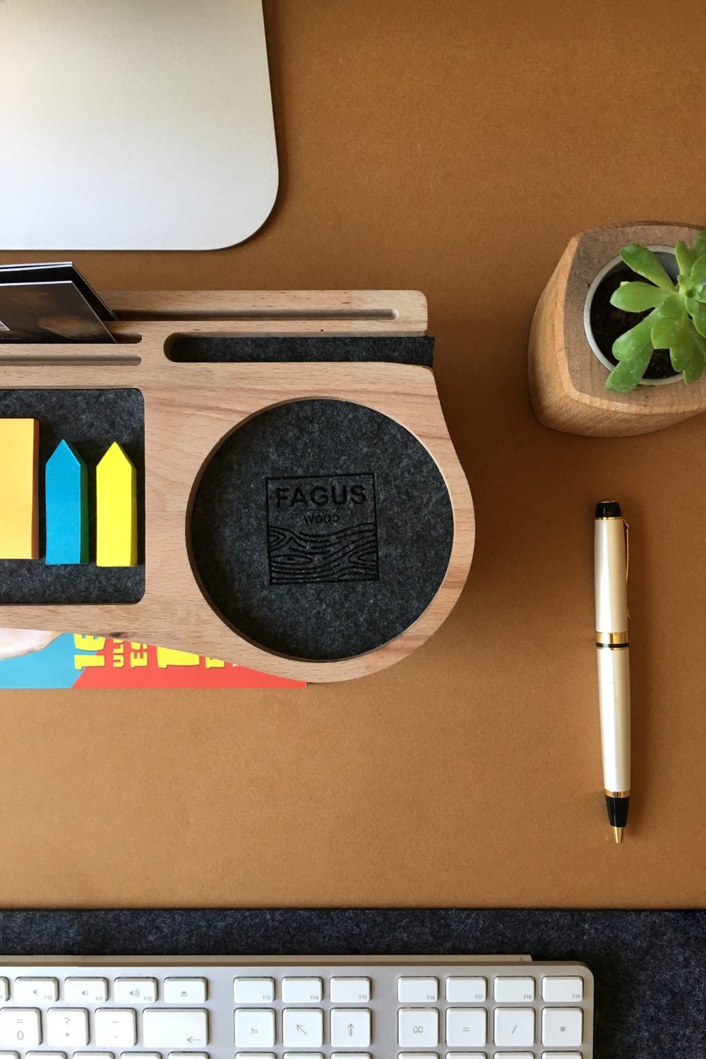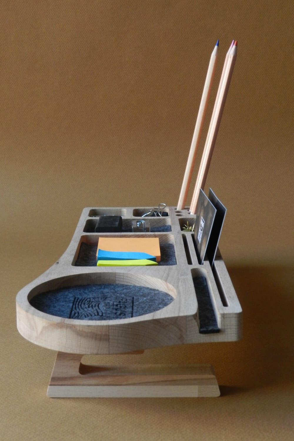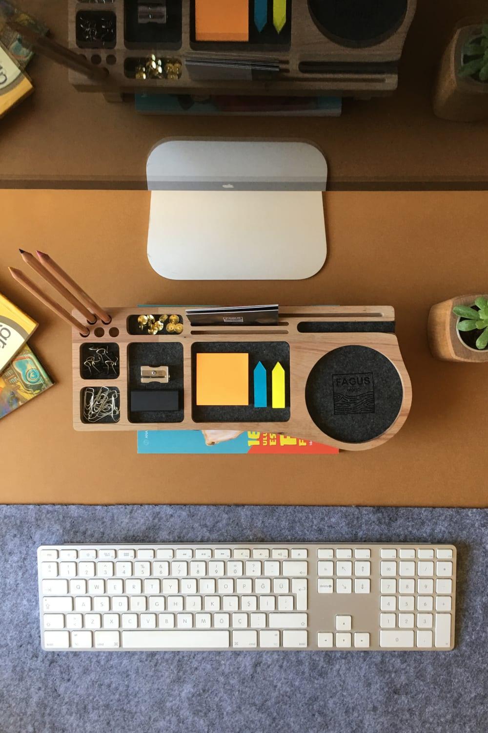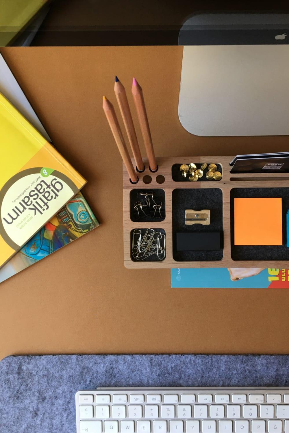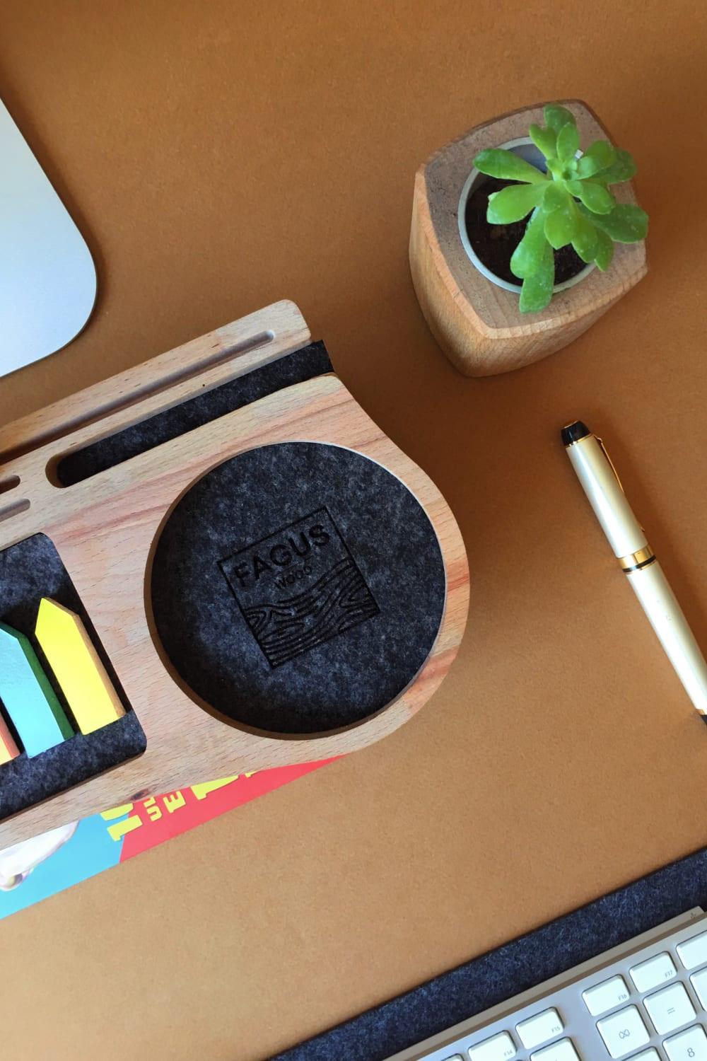 Fagus Wood Mini Stanley masa düzenleyici; çalışırken genelde elimizin altında bulunması gereken ofis gereçleri bulunmaktadır. Mini Stanley 15 bölmesi sayesinde tüm ihtiyacınızı karşılayacaktır. Sürekli ihtiyaç duyduğunuz kalemleri, silgi, kalemtıraş, uç kutuları, kartvizit gibi bir çok eşyanızı koyabilir aynı zamanda telefon standı olarakta kullanabilirsiniz. Masif ahşaptan üretilen Mini Stanley, bölmelerine konulan mat sayesinde tasarımda kişiselleştirebilme yapabilmeniz için 2 renk seçeneği ile üretilmiştir. Tamamen doğal ağaçtan üretildiği için ürünler arasında renk ve desen farklılığı olabilir. Fiyata yalnızca ahşap stant dahildir. Toplu siparişlerde ürünlere lazer kazıma ile logo, amblem, isim, vs. eklenebilir.