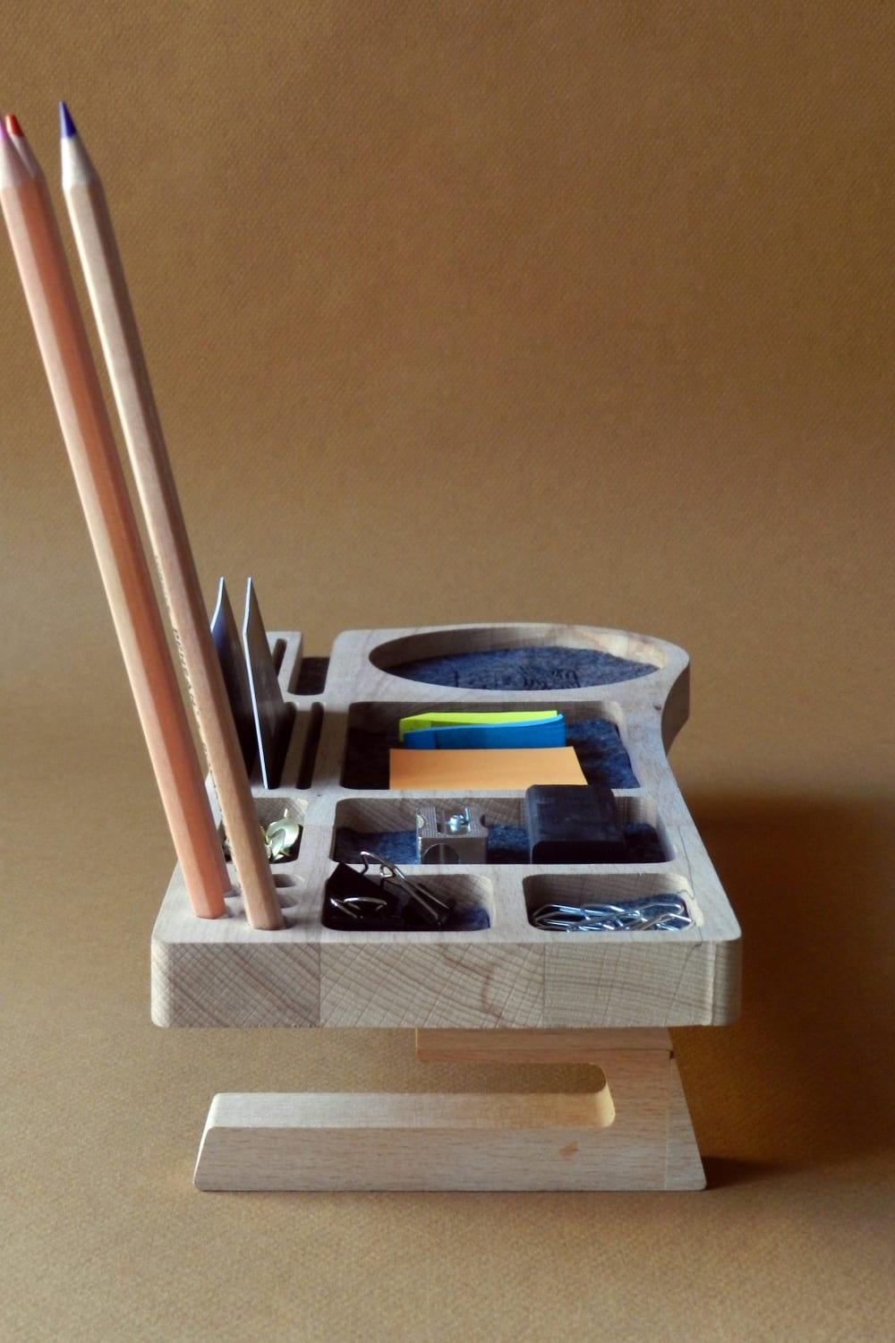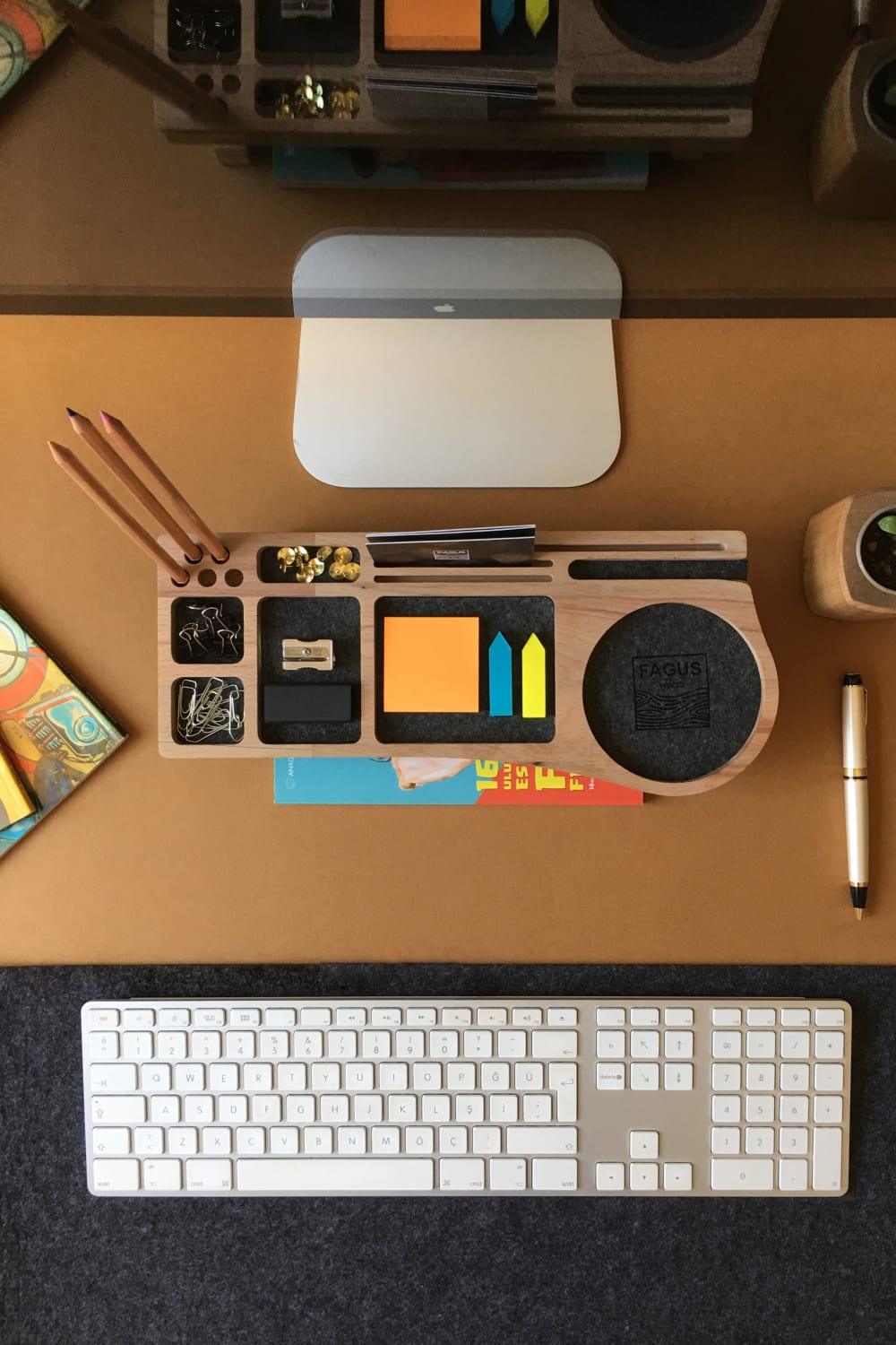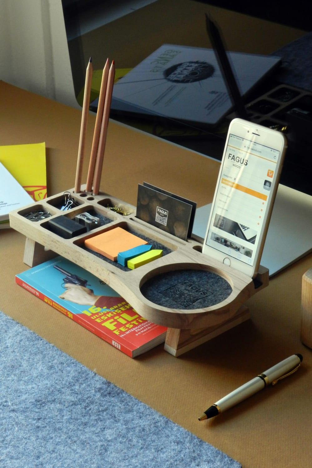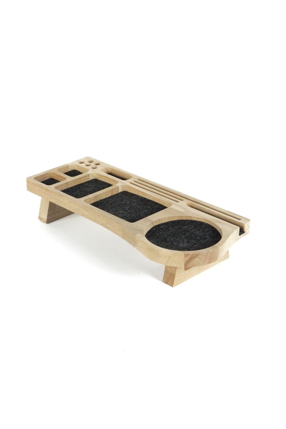 Fagus Wood Mini Stanley masa düzenleyici; çalışırken genelde elimizin altında bulunması gereken ofis gereçleri bulunmaktadır. Mini Stanley 15 bölmesi sayesinde tüm ihtiyacınızı karşılayacaktır. Sürekli ihtiyaç duyduğunuz kalemleri, silgi, kalemtıraş, uç kutuları, kartvizit gibi bir çok eşyanızı koyabilir aynı zamanda telefon standı olarakta kullanabilirsiniz. Masif ahşaptan üretilen Mini Stanley, bölmelerine konulan mat sayesinde tasarımda kişiselleştirebilme yapabilmeniz için 2 renk seçeneği ile üretilmiştir. Tamamen doğal ağaçtan üretildiği için ürünler arasında renk ve desen farklılığı olabilir. Fiyata yalnızca ahşap stant dahildir. Toplu siparişlerde ürünlere lazer kazıma ile logo, amblem, isim, vs. eklenebilir.