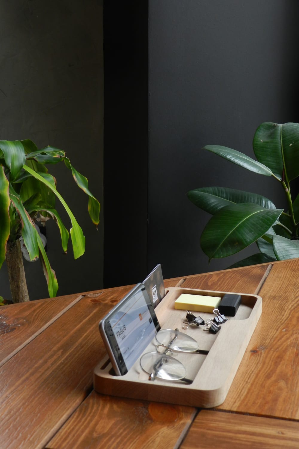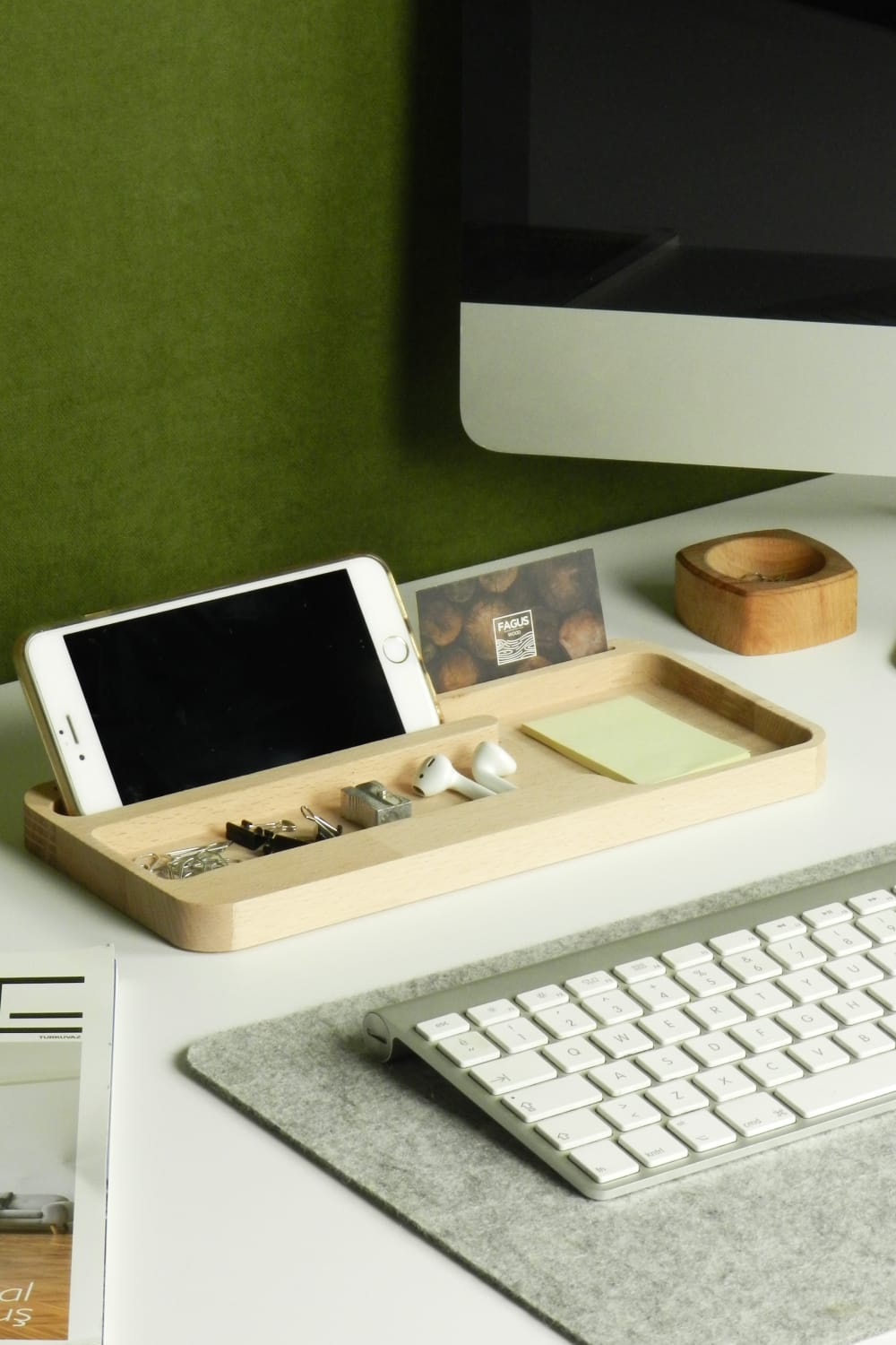 Fagus Wood Stil masa düzenleyici; tek parça naturel görüntüsüyle ortamınıza uygun göz yormayan bir tasarımdır. Tek bir telefon standı yerine birkaç parça eşyanızı da koyabilmeniz için tasarımda maksimum faydayı ön planda tutarak bunu sağlamaya çalıştık. Küçük bir tasarım olması sebebiyle masanızda kolaylıkla konumlandırabilirsiniz. Tamamen doğal ağaçtan üretildiği için ürünler arasında renk ve desen farklılığı olabilir. Fiyata yalnızca ahşap stant dahildir. Toplu siparişlerde ürünlere lazer kazıma ile logo, amblem, isim, vs. eklenebilir.