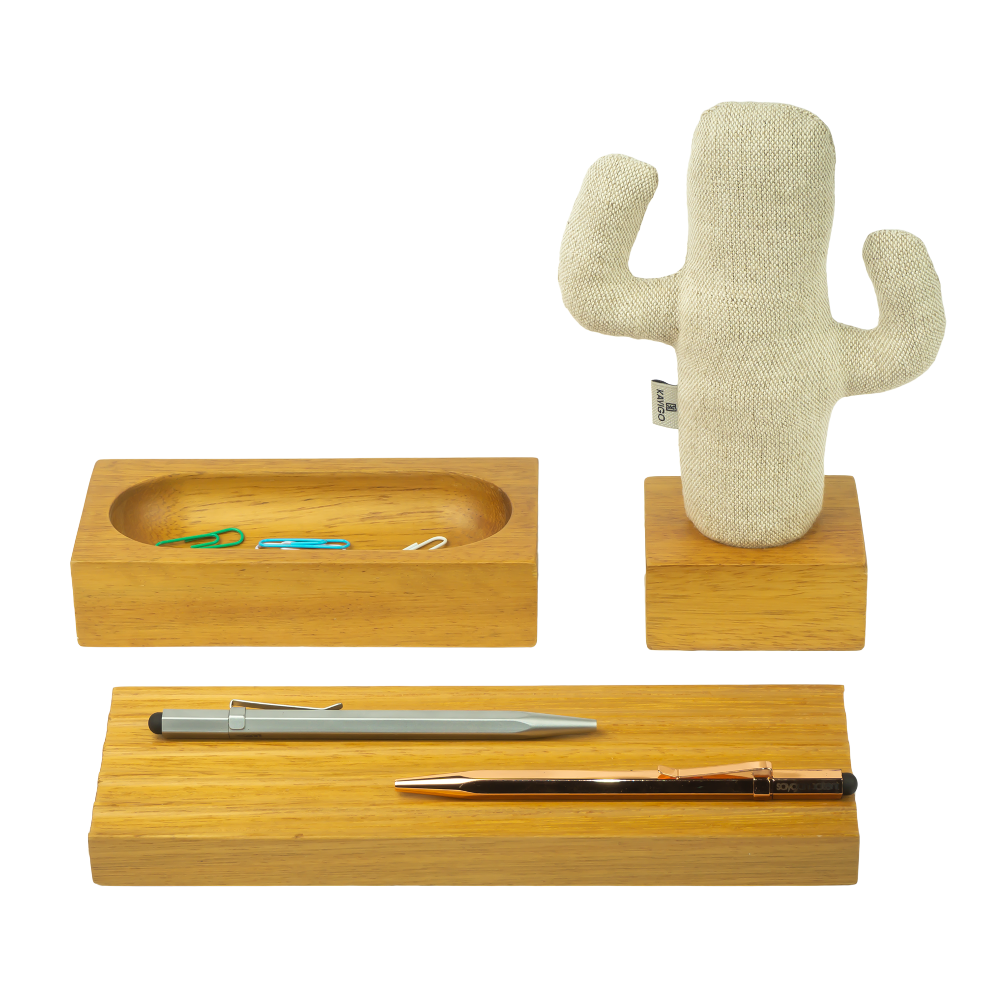 Çalışma masalarının üstünde biriken eşyaları sürekli aramaktan kurtaracak özel tasarım ahşap organizerler sizi dağınıklık ve karmaşadan uzaklaştırarak her şeyi rahatça bulmanızı sağlayacak.Lavanta Dolgulu Notluğu notlarınızı sağlıklı ve eğlenceli şekilde hatırlatacak. Antiviral ve sakinleştirici lavanta kokusunu yoğunlaştırmak için, kaktüsünüzü sıkarak lavantaları ezin. Ofisinizin havasını değiştiren aynı zamanda iş yerleri için kullanışlı bir hediye olan Kayigo Woody Üçlü Set masa üstü organizer fonksiyonelliği öne çıkarmanız için harika bir tercih olacaktır.
