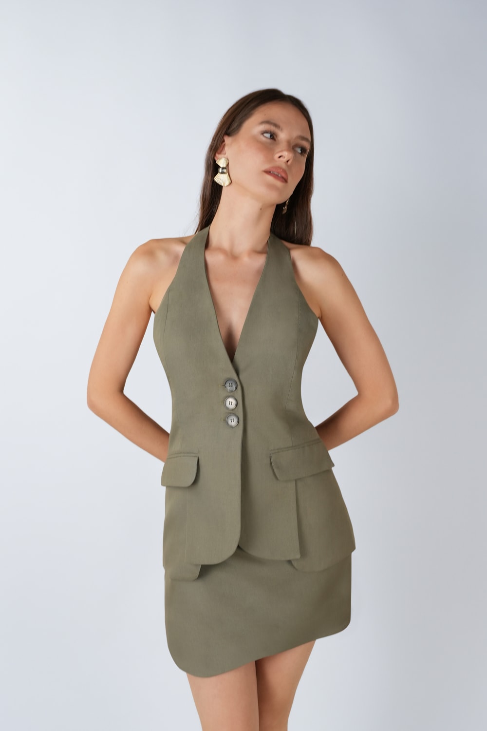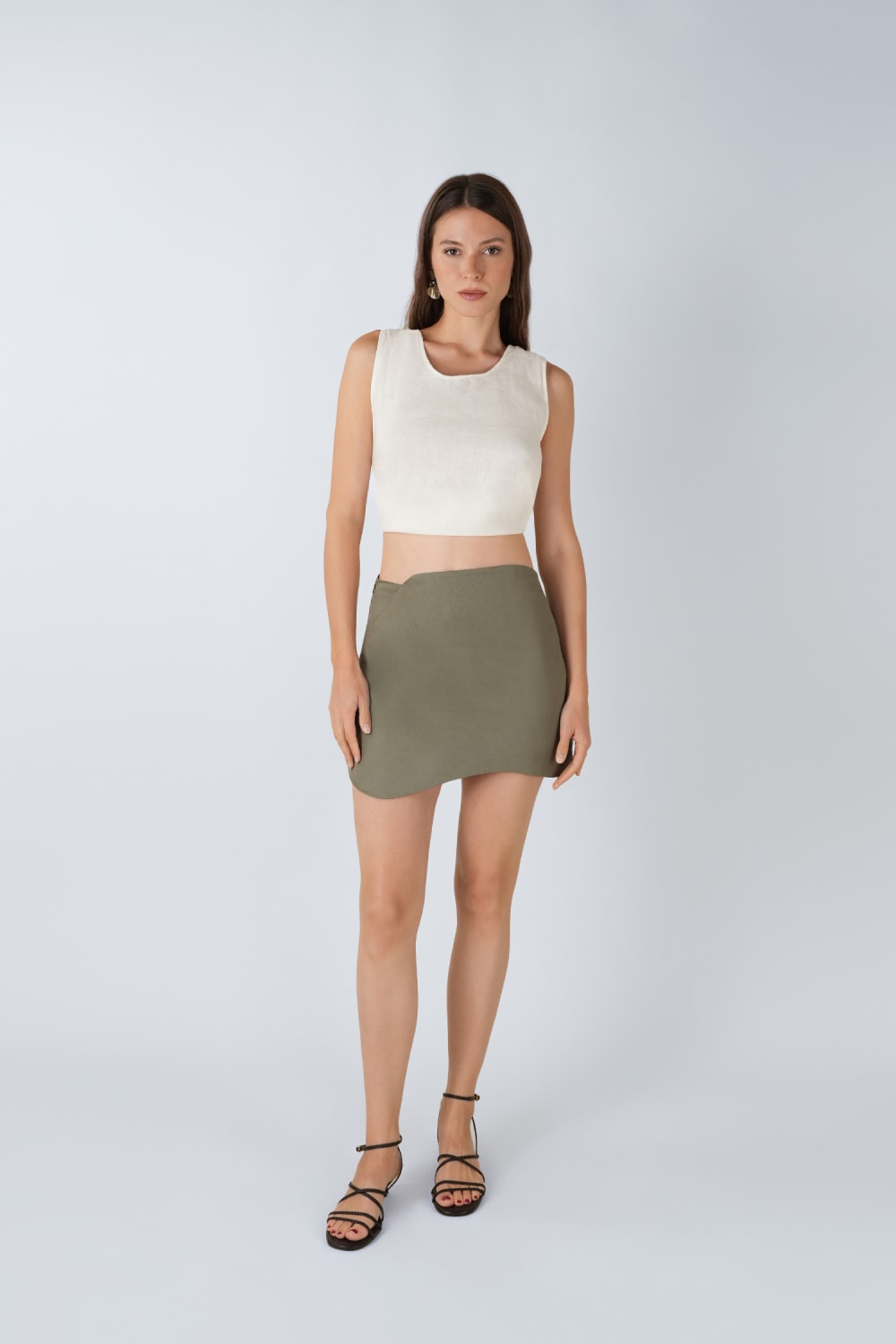 Asimetrik şort etek, modern kadın giyiminin dinamik ve cesur çizgilerini yansıtan çok yönlü bir parça. Dışarıdan bakıldığında şık ve sofistike bir etek görünümüne sahipken, iç yapısında bulunan şort detayı sayesinde maksimum konfor ve hareket özgürlüğü sunar. Asimetrik kesimi, klasik etek formlarına çağdaş bir dokunuş getirerek iddialı ama zahmetsiz bir stil yaratır.