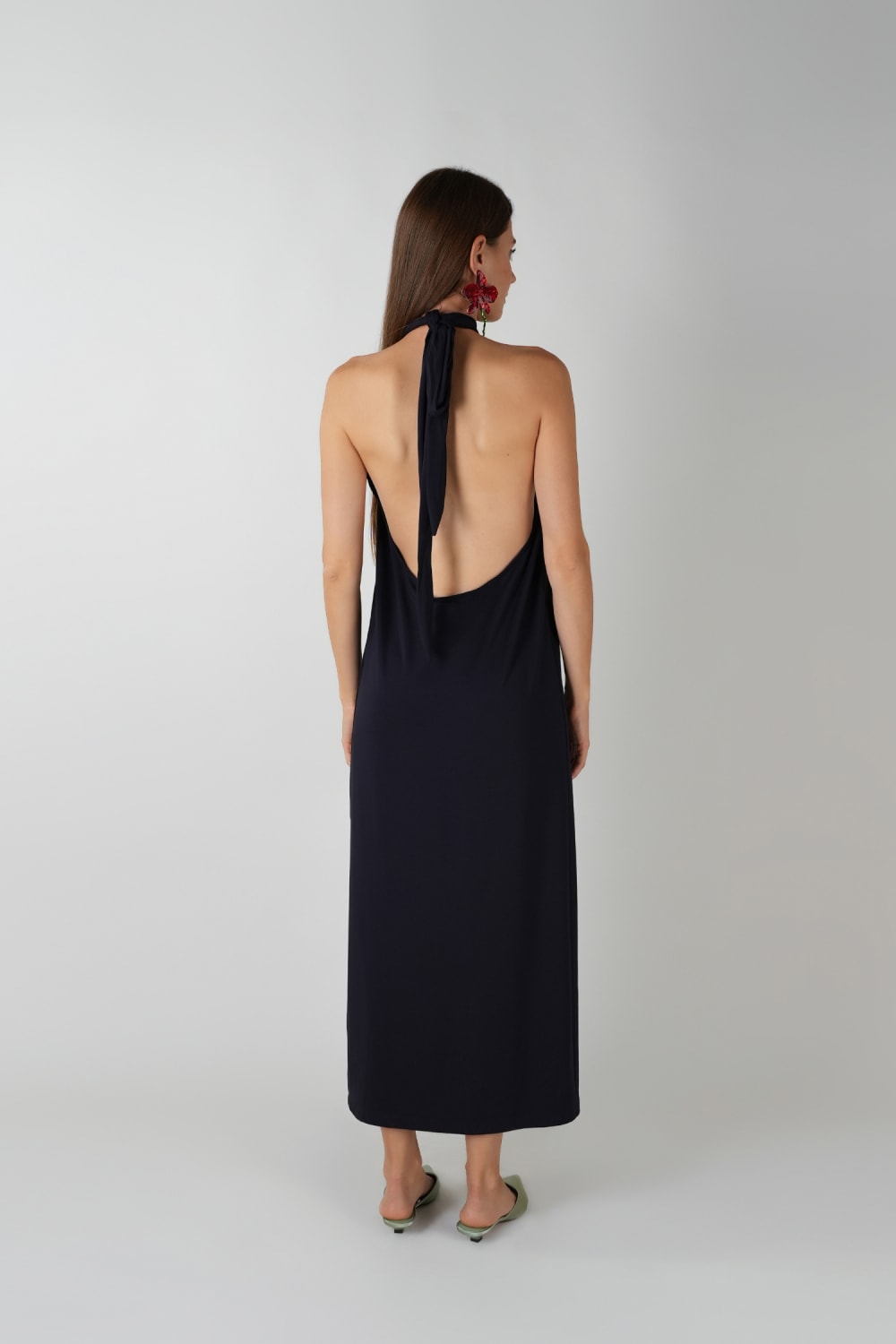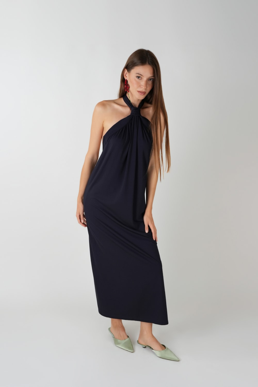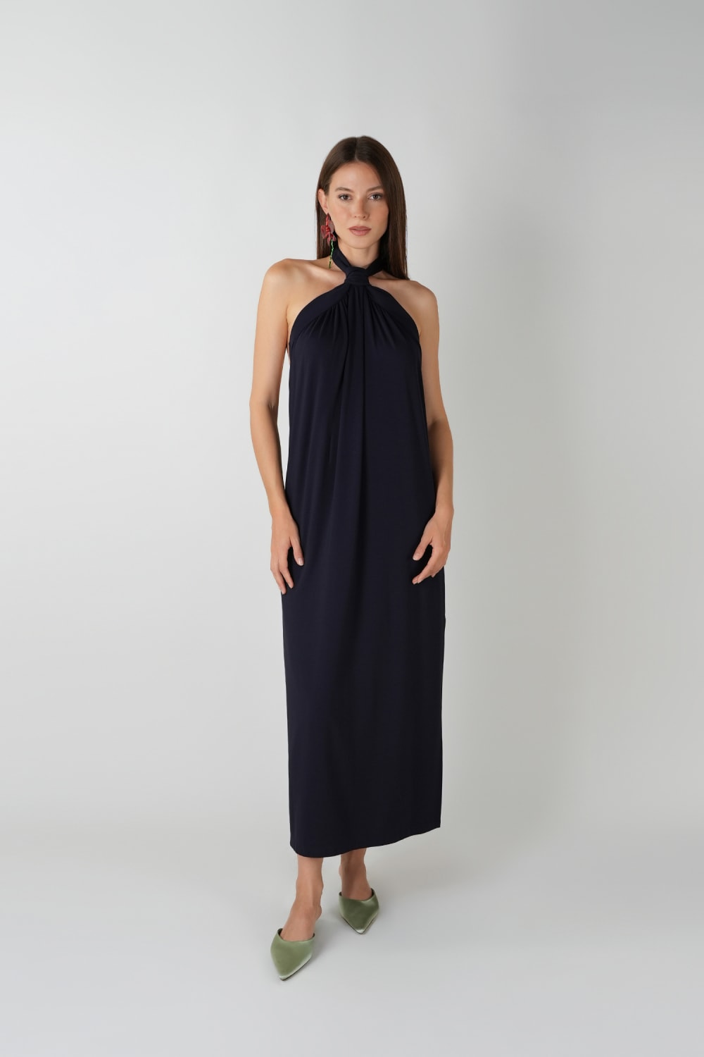 Ultra hafif ve dökümlü kumaşı sayesinde teninizde neredeyse yokmuş hissi yaratır. Boyundan düğümlü tasarımıyla güçlü bir siluet sunarken, sırt dekoltesi ve yırtmaç detayı feminenliği vurgular. Ayarlanabilir bağlama yapısı sayesinde vücuda mükemmel oturur ve gün boyu konfor sağlar. Geceden davetlere, yaz akşamlarından özel anlara kadar çok yönlü bir şıklık sunar.