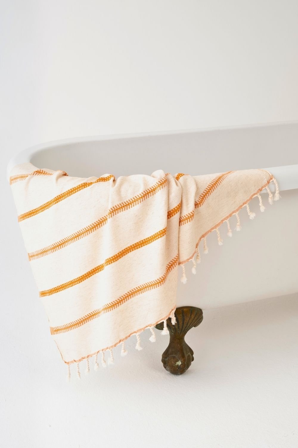 Plajda, havuzda veya teknede havlu olarak kullanabileceğiniz gibi güneşlenirken şık bir örtü olarak da kullanabilirsiniz.