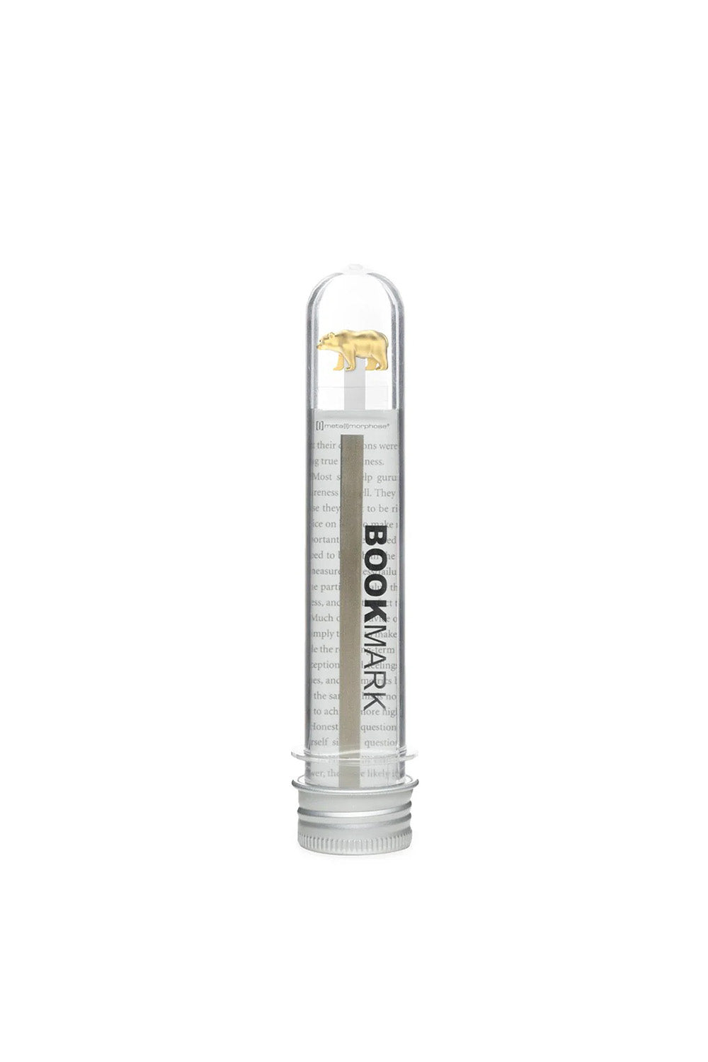 Meta [l] morphose® Kitap Ayracı - Akrilik Tüp Ambalajı - Ayı - inci altın kaplama - telif hakkı kayıtlı tasarım