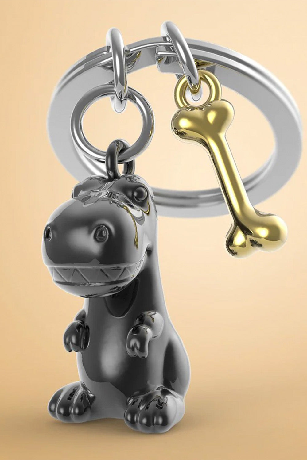 Tasarım/telif hakları tescillenmiştir. Vectorbox Dino, kemik çekicilik anahtarlıklı - 35 mm çelik halka - 2 parçalı kalıplama - Parlak altın kemikli parlak kurşun kaplama