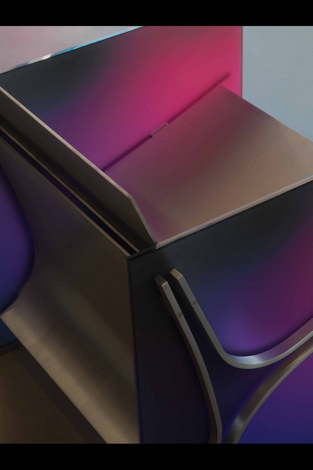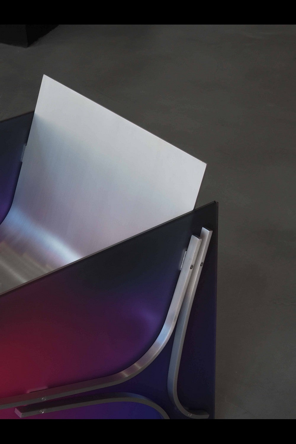 Sandalyenin yanal kısımlarını oluşturan malzeme, temperli ve lamine işleminden geçmiş buzlu veya extra-clear camdır. Oturma ve strüktür, fırçalı alüminyumdan oluşmaktadır.