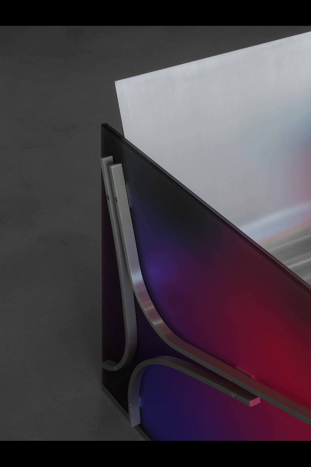 Camın kırılganlığı ve metalin sağlam duruşunu estetik bir biçimde bir araya getirerek kullanıcılarda dokunsal ve farklı duyguların hissiyatı amaçlanmıştır.
