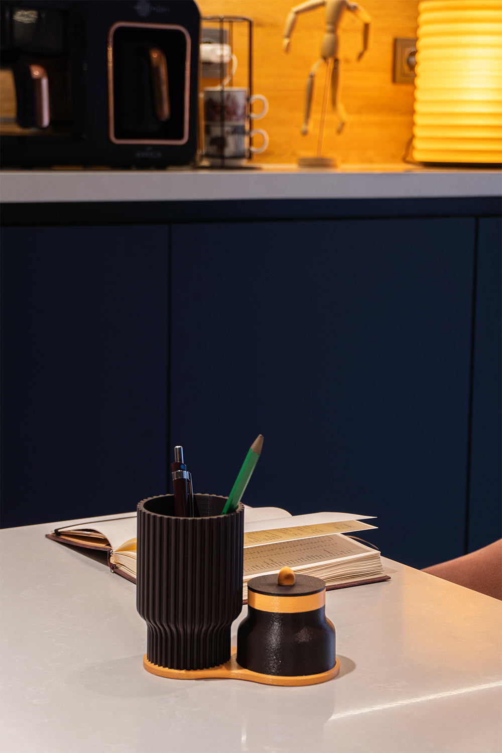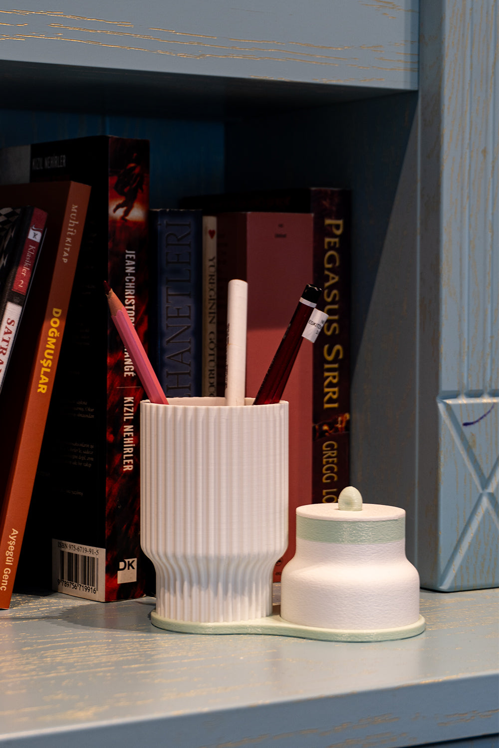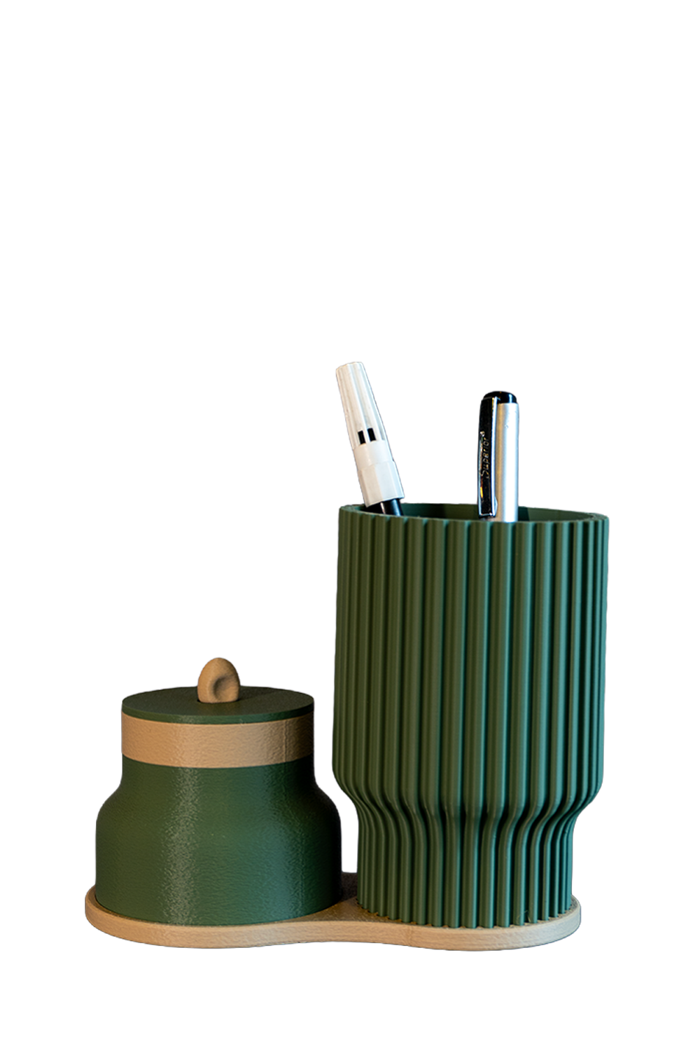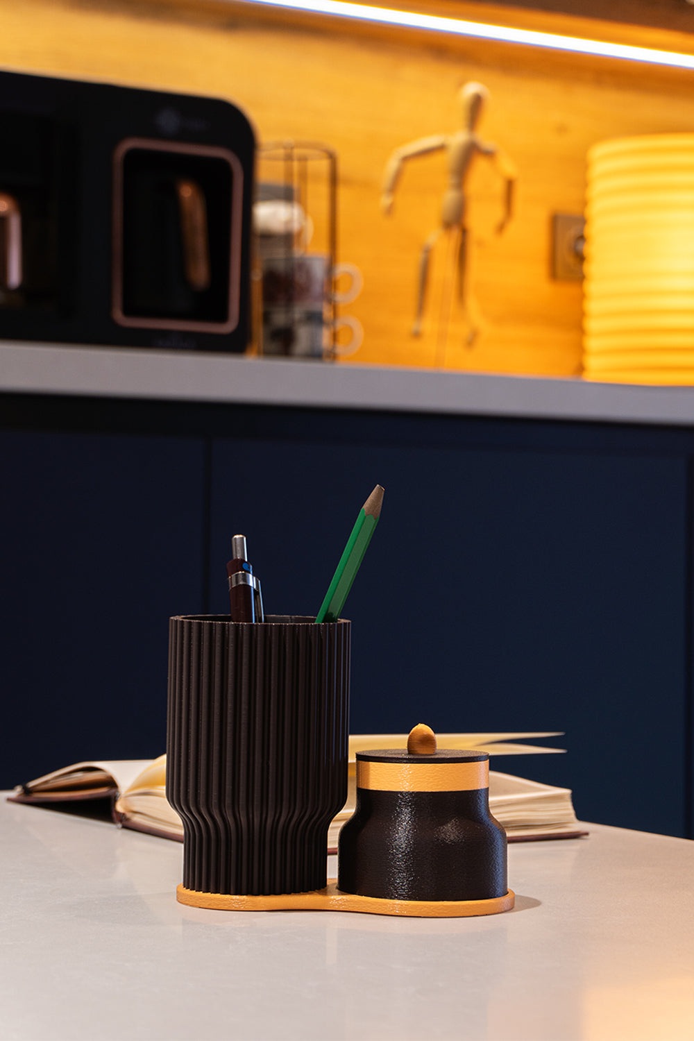 2 parçalı modüler yapı: kalemlik + kapaklı mini kutu