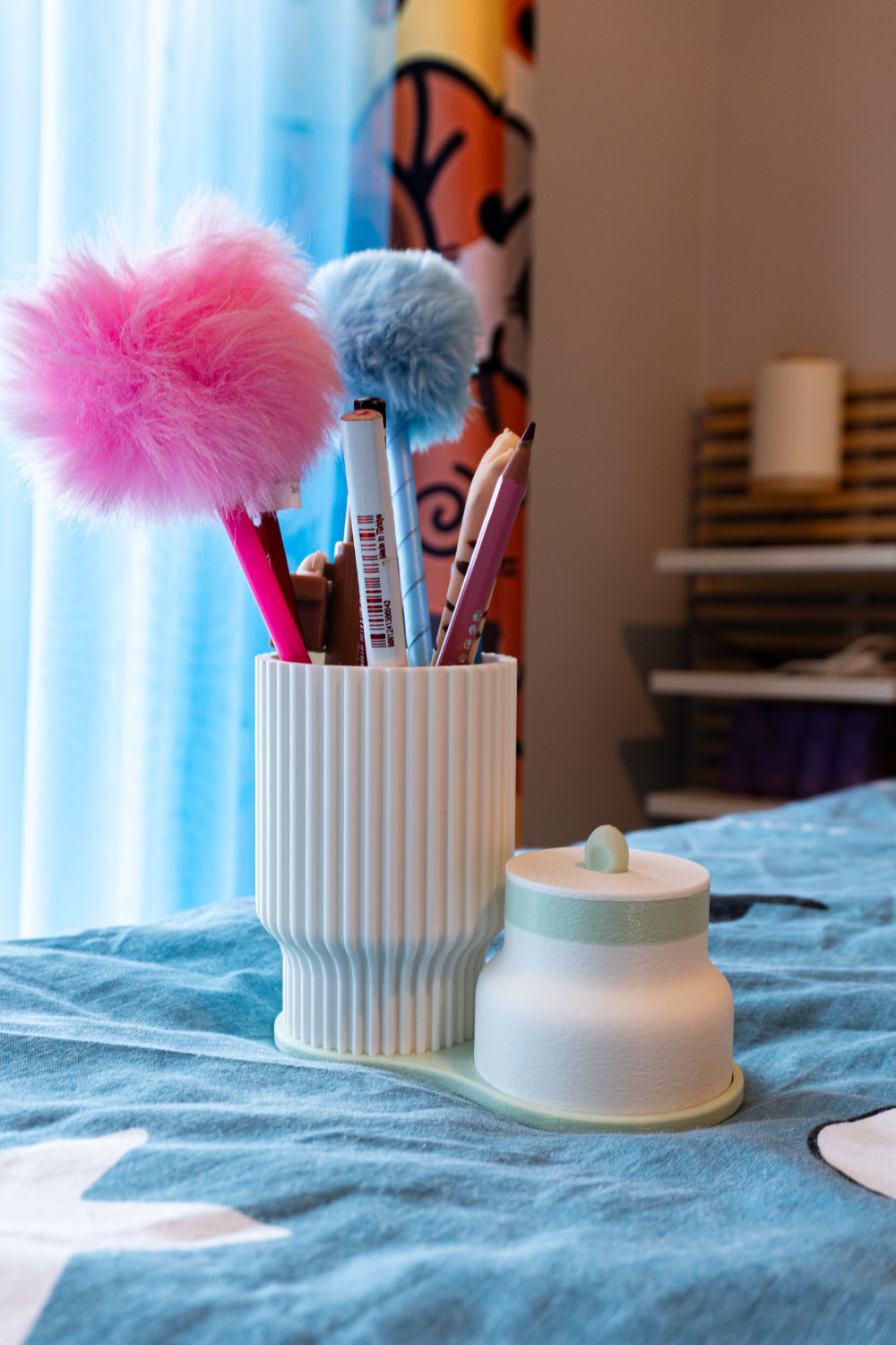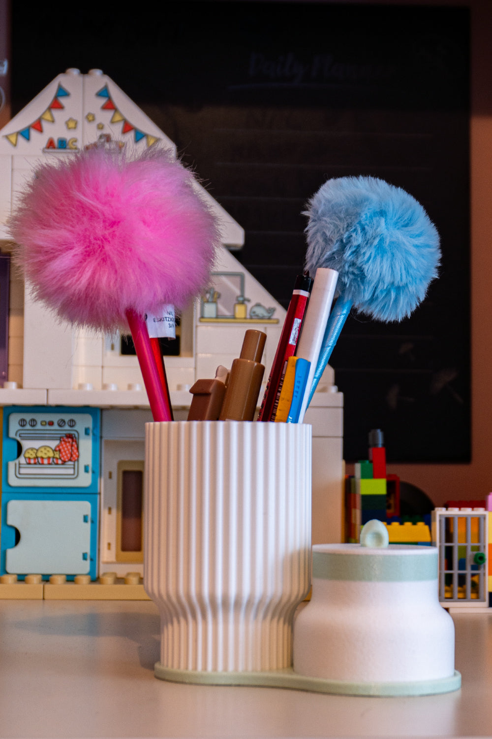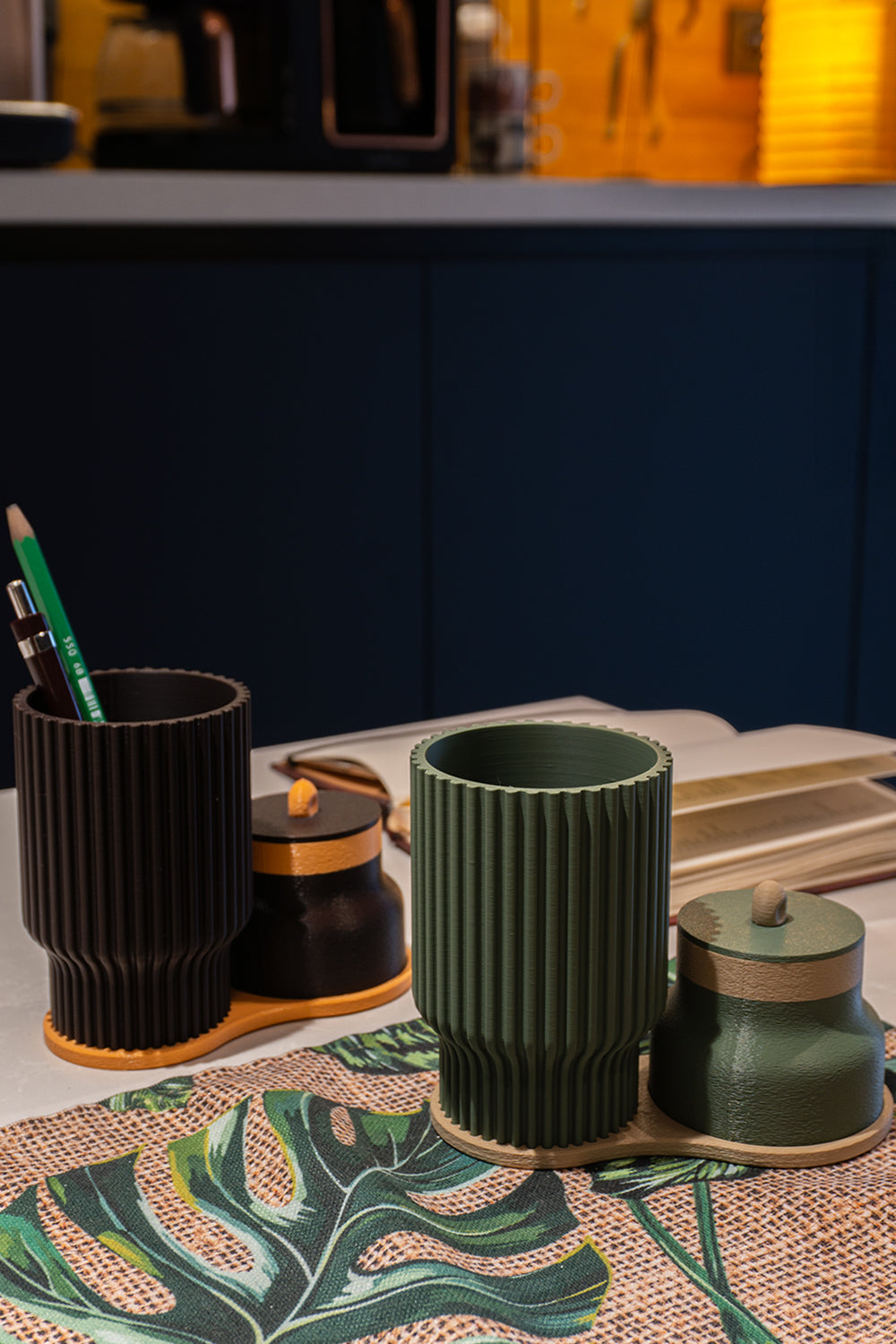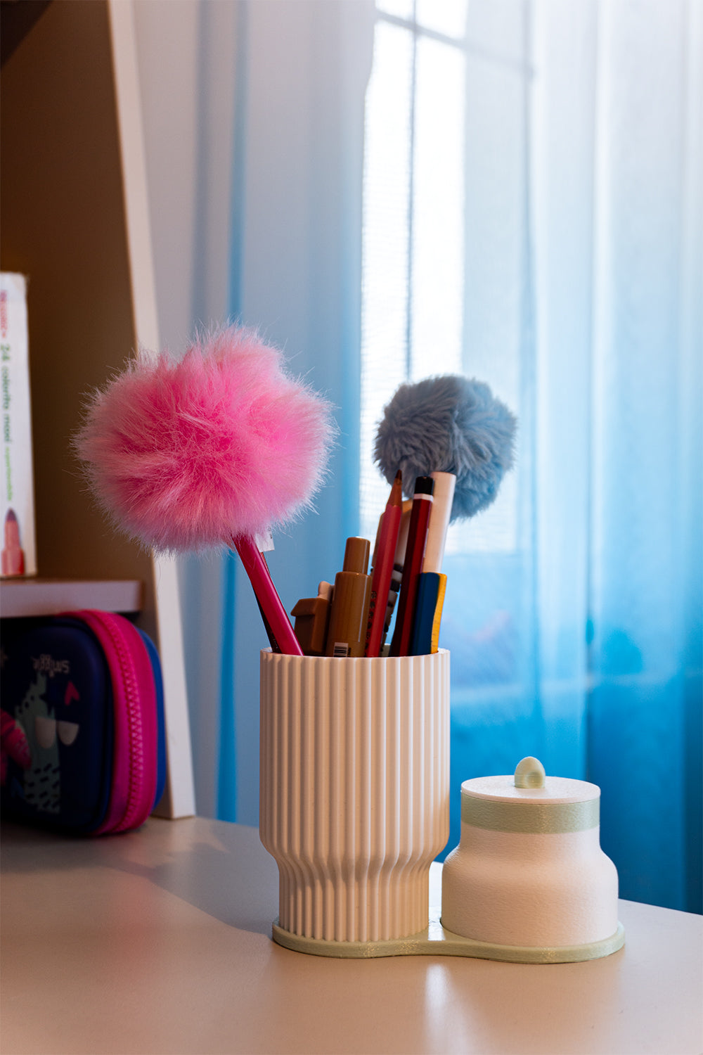 2 parçalı modüler yapı: kalemlik + kapaklı mini kutu