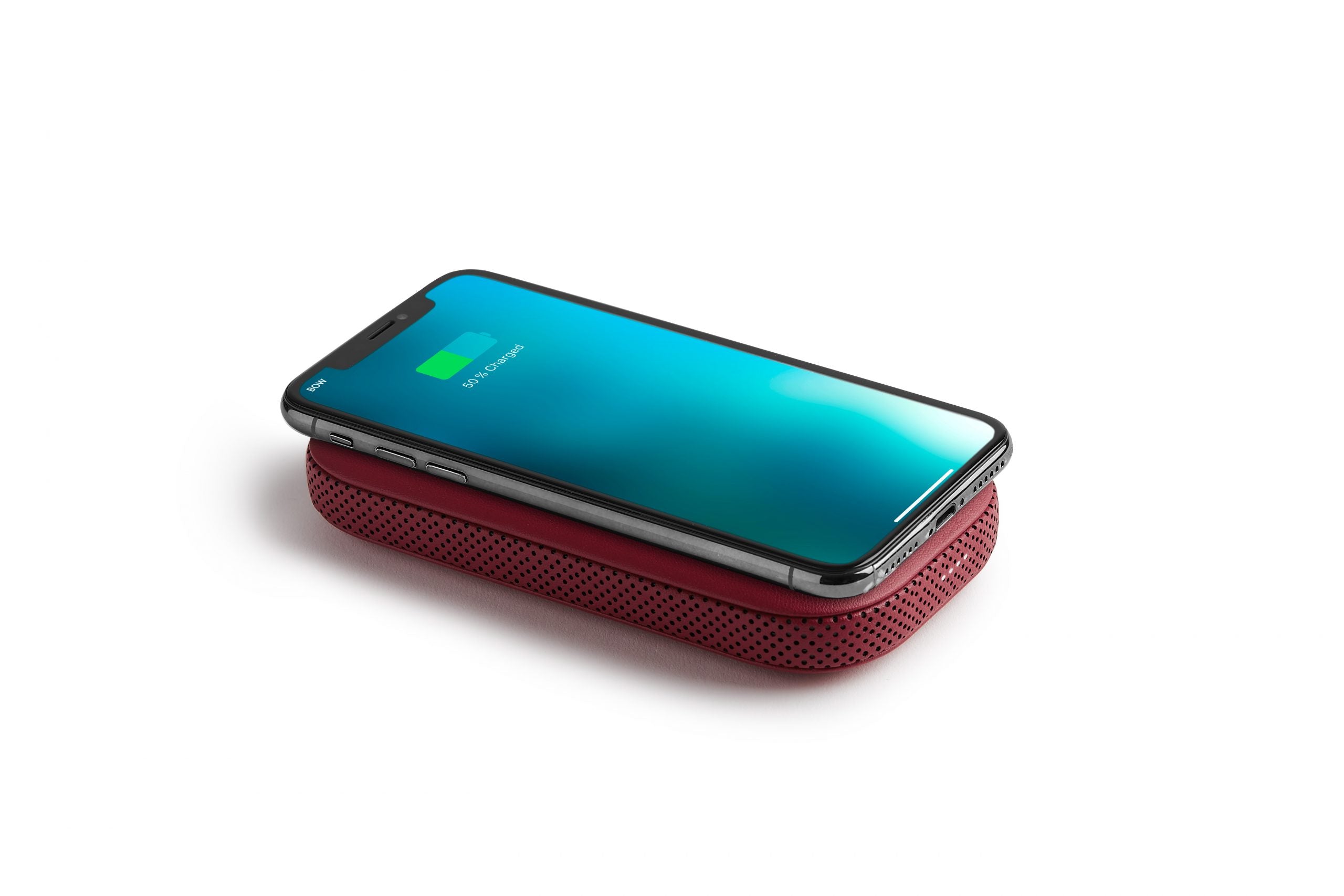 Powersound Deri Kablosuz şarj Cihazı Ve Bluetooth Hoparlör Kırmızı