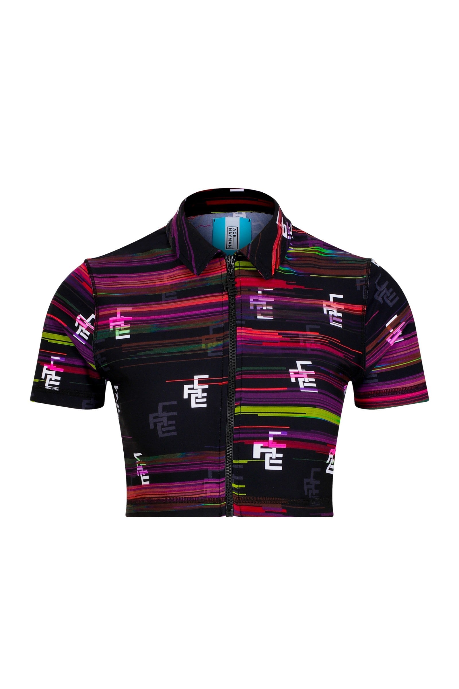 This Brianna monogram printed crop top with a zipper in the front will be your new favorite piece. With its soft and stretchy texture, this half-sleeve crop top will wrap your body perfectly. You can wear it when going to a party, going for a walk, hanging out with friends, or going out on a casual day.You can wear it on boyfriend jeans for a shabby look. You can also combine it with Violet leggings and match with long boots and blazer jackets for effortless elegance.
