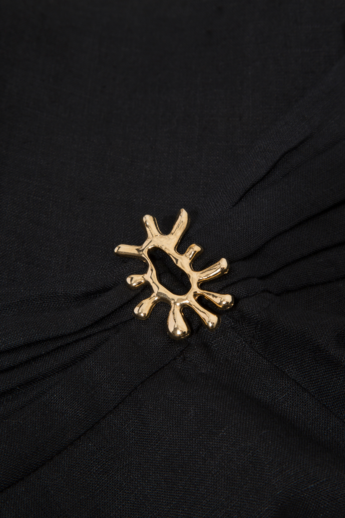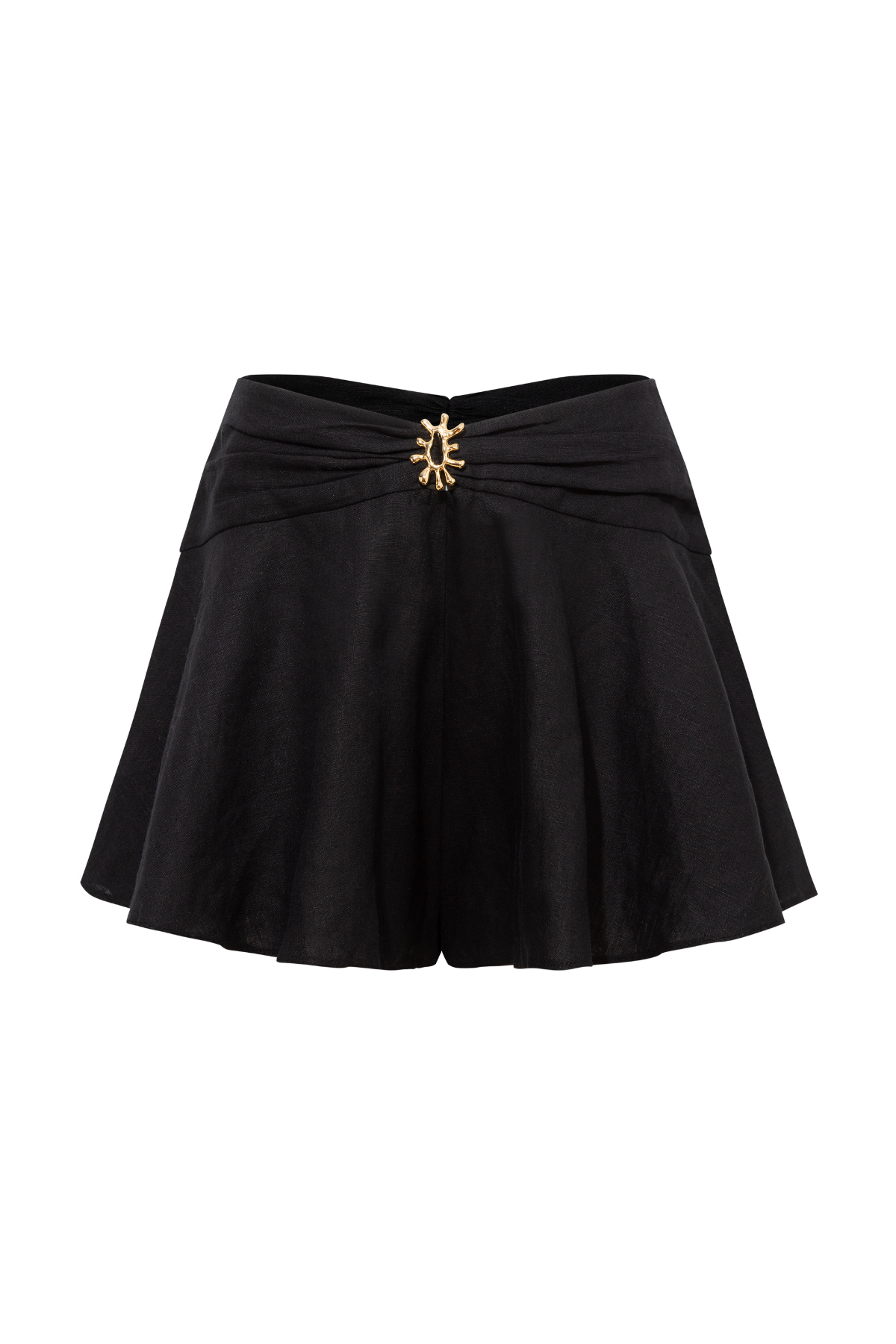 Lima Şort, ketenin doğal dokusunu modern aksesuar detaylarıyla buluşturuyor. Siyah tonu tasarıma zamansız bir karakter kazandırırken hem günlük hem de şık kombinler için güçlü bir tamamlayıcı haline getiriyor.