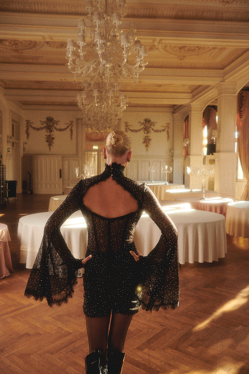 Tokio Elbise, cesur ama zarif bir yüksek yaka dantel detayları ve mini boyuyla öne çıkıyor. Zarif taş işlemeleri ile süslenmiş olan bu elbisecşıklığıyla göz kamaştırırken ince dantel detayı zamansız bir stil duruşu sağlar. Kollarındaki fırfır detayları elbiseye romantik bir hava katarken cesur cut-out detayları modern ve iddialı bir görünüm oluşturur. Klasik siyah rengiyle, Tokio Elbise özgüven ve stil dolu bir şekilde parlamak istediğiniz gece davetleri için mükemmel bir seçim!