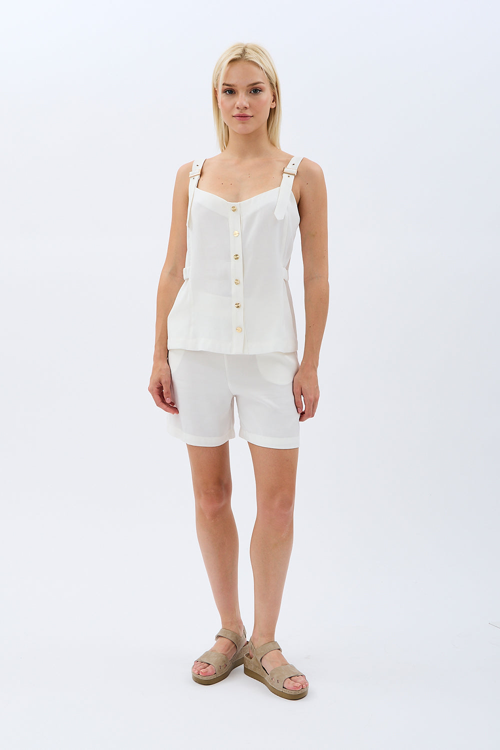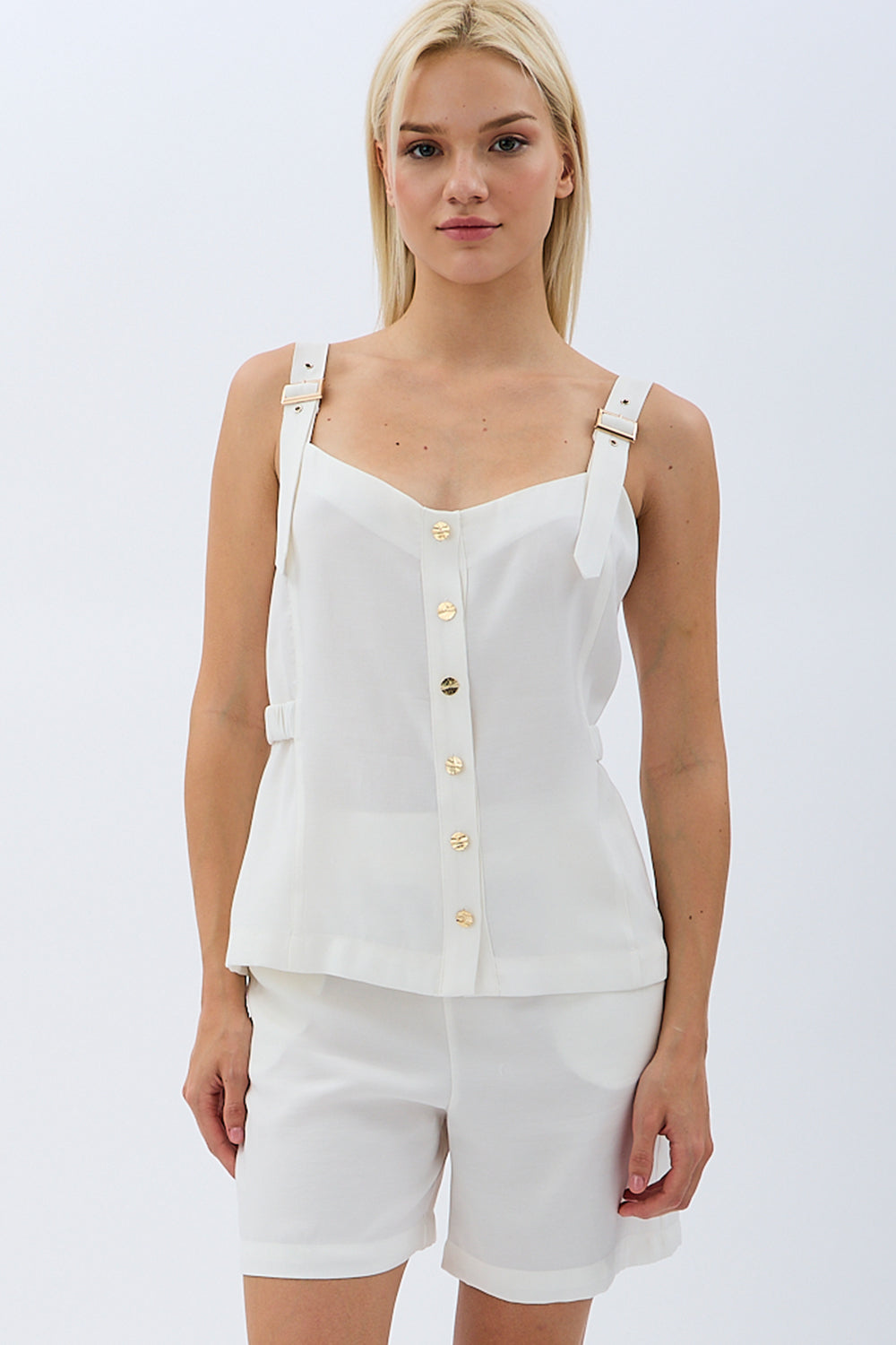 Tokalı Askılı Kare Yaka Modal Bluz – %70 Modal, %24 PA, %6 Elastan