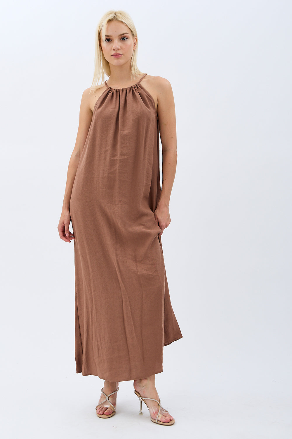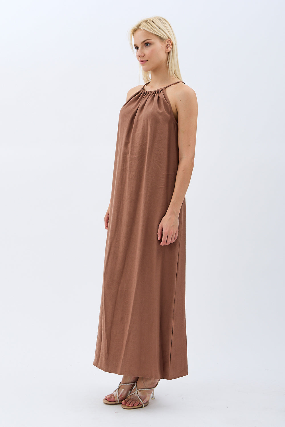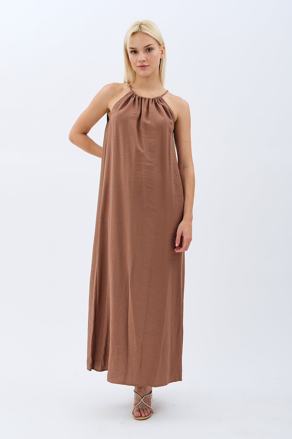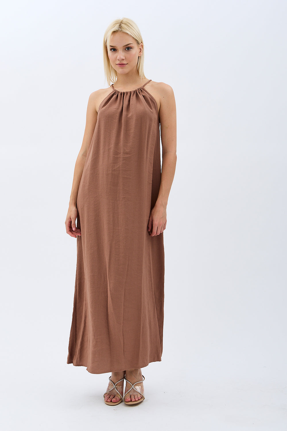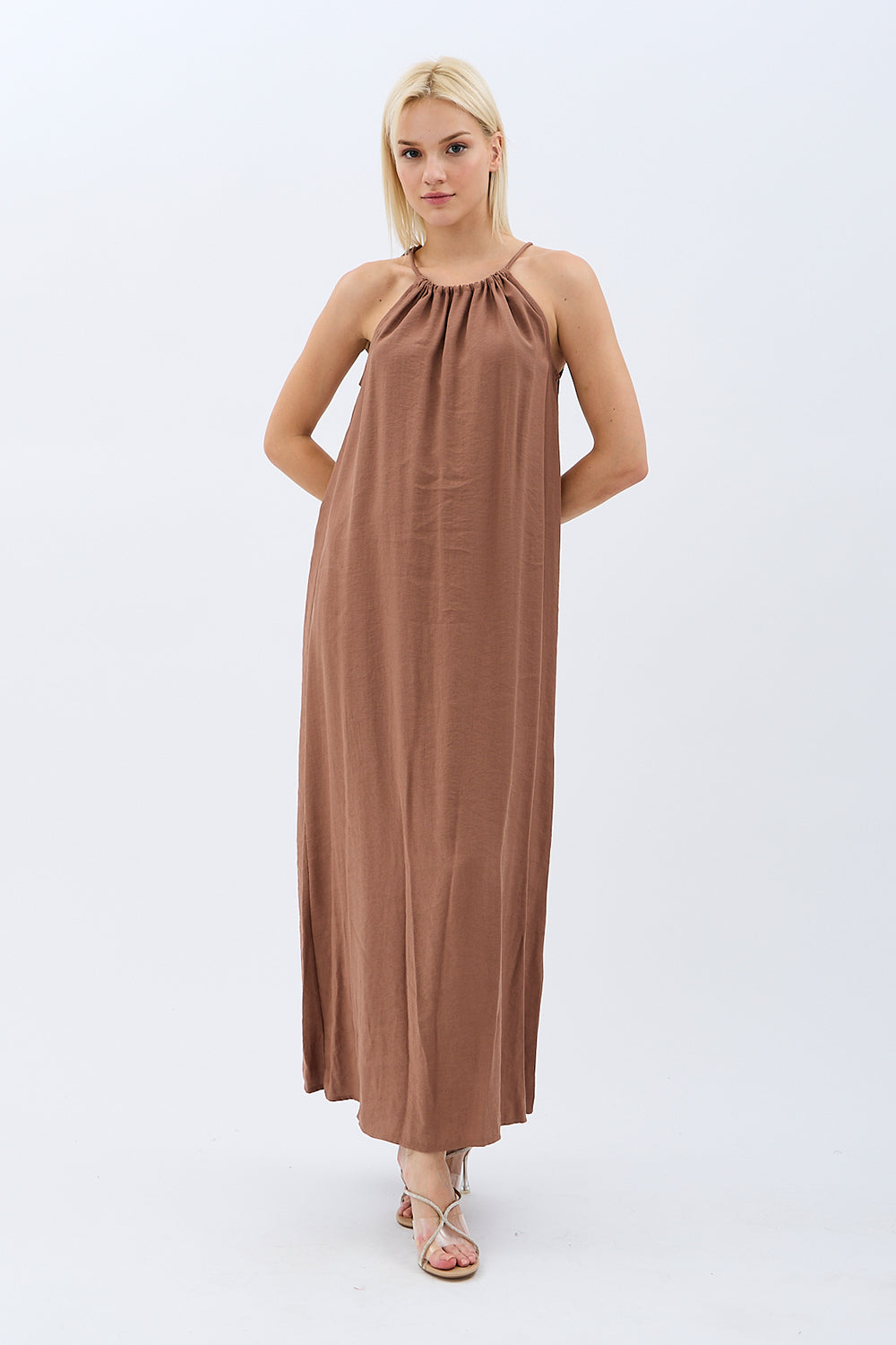 Boğaz Detaylı Büzgülü Askılı Üst – Hafif ve Dökümlü Maxi Şıklık
