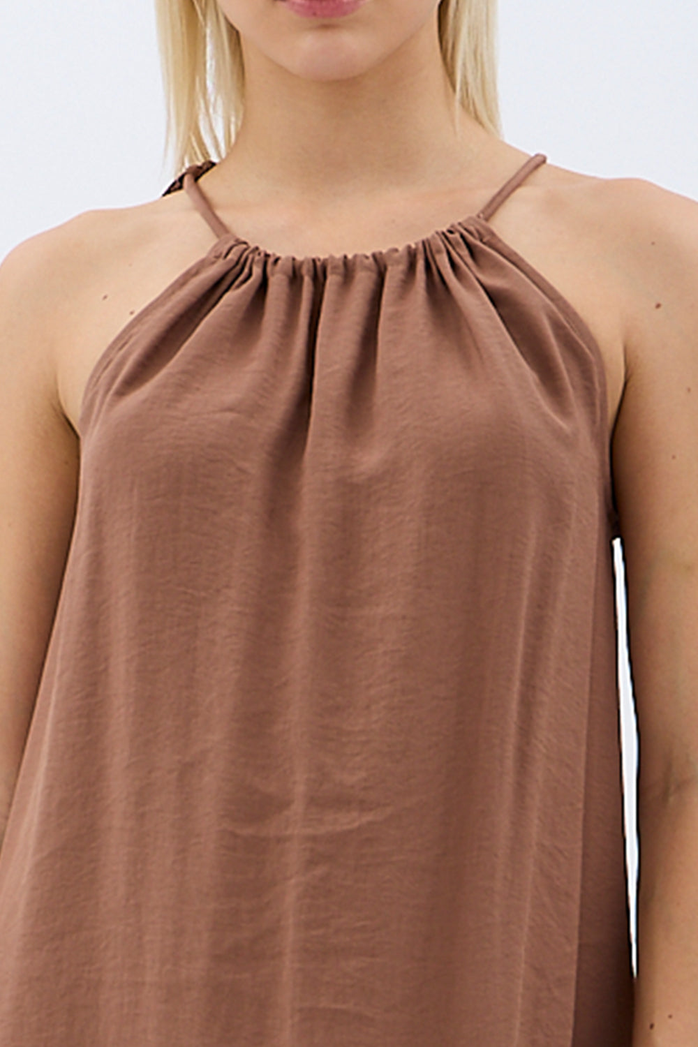 İnce askılı ve sırt bağcık detaylı tasarımı, özgün stilinizi yansıtırken, boğaz kısmındaki büzgü detayı modele hareket ve şıklık katar. Plajdan şehre, gündüzden geceye farklı stillerle kolayca kombinlenebilir.