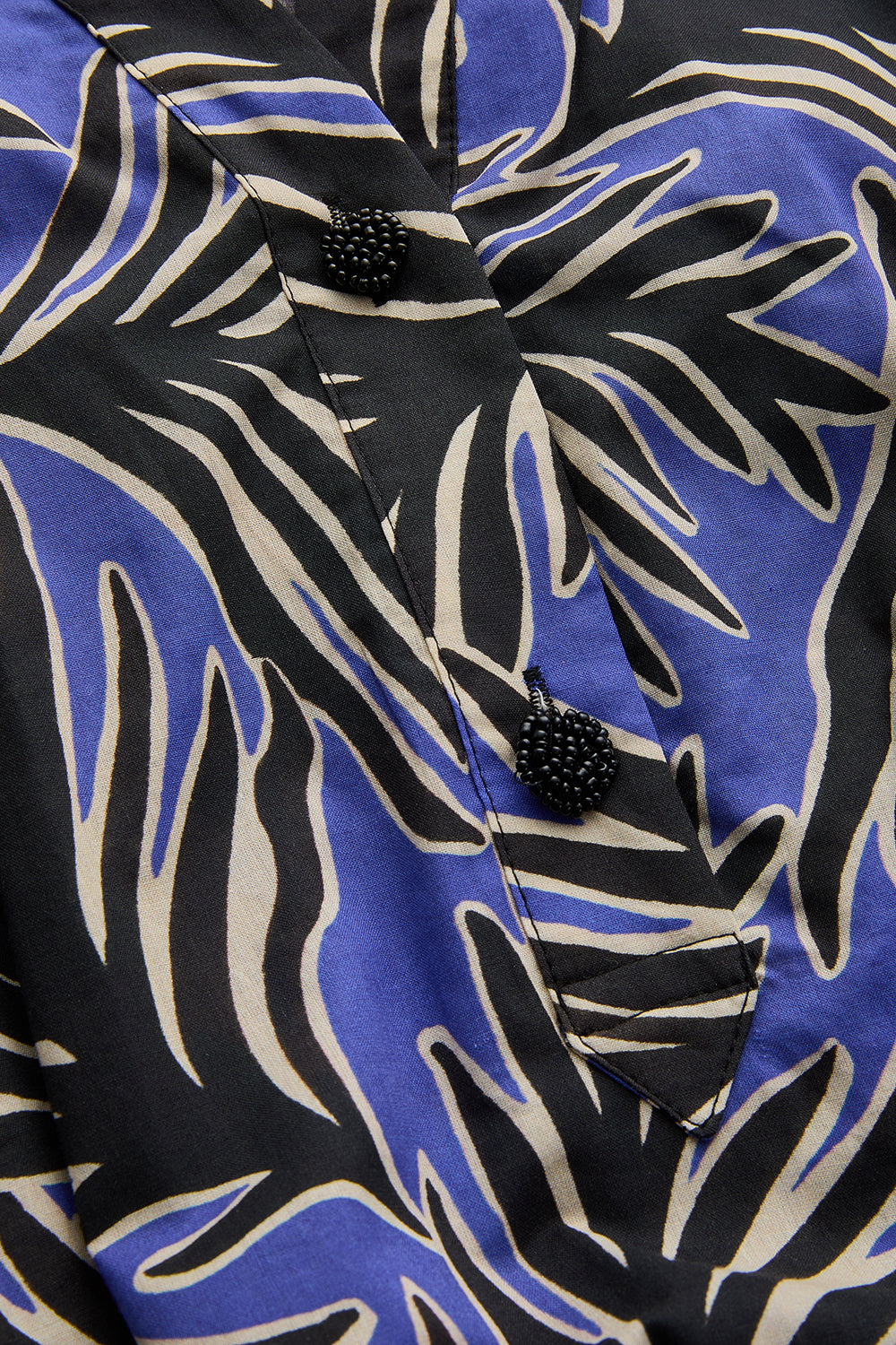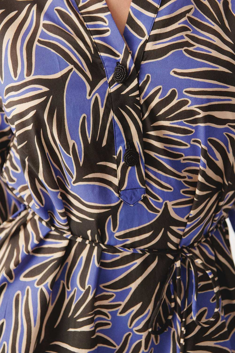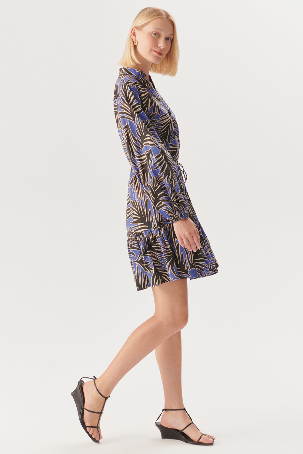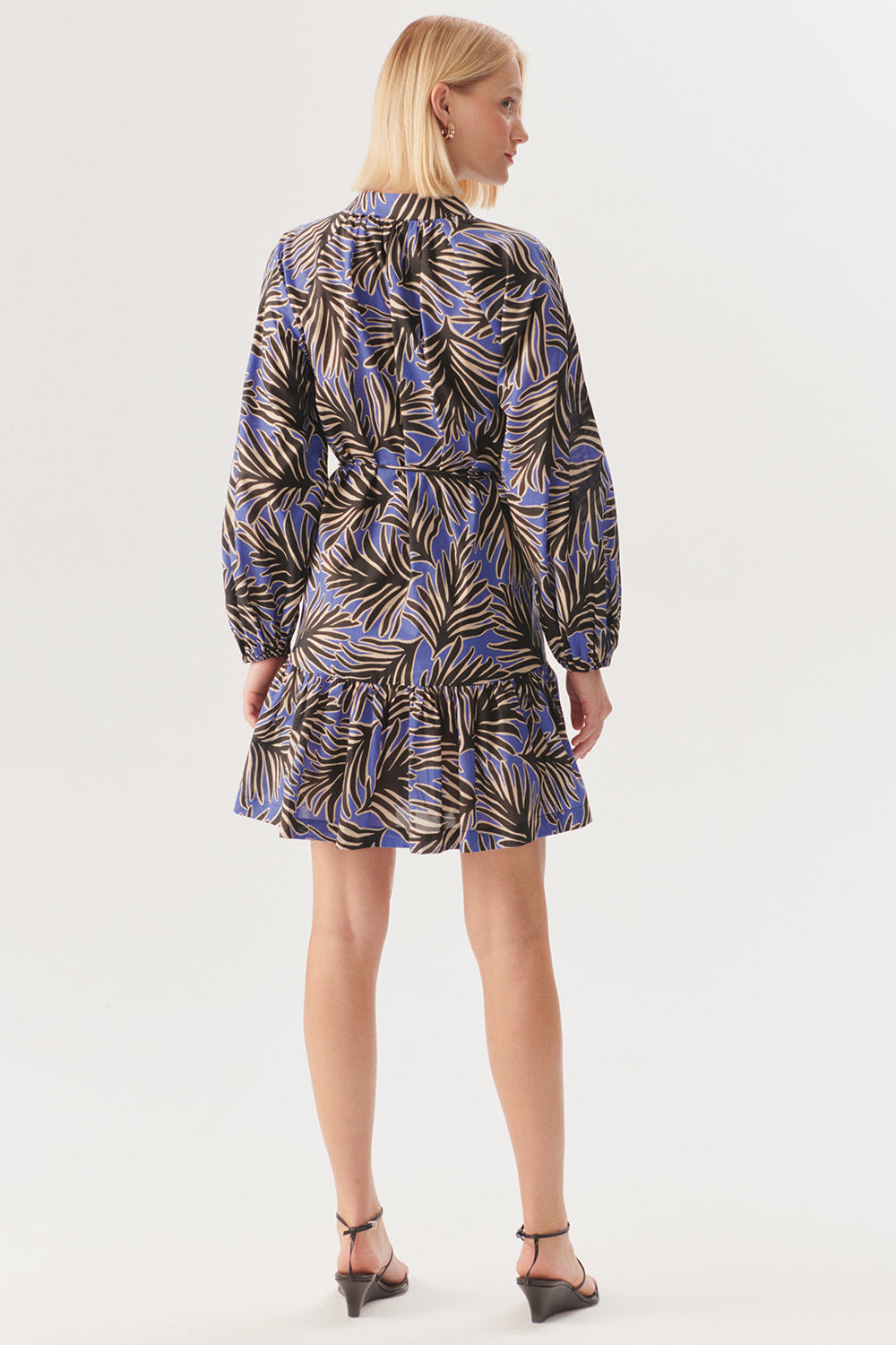 Bağcık Detaylı Yaprak Desenli Rahat Kesim Pamuklu Mini Elbise