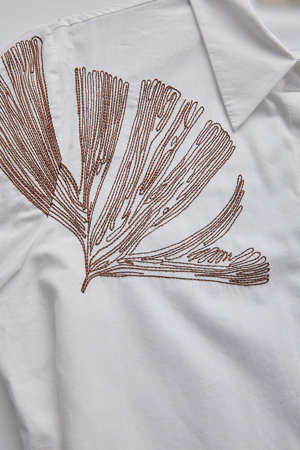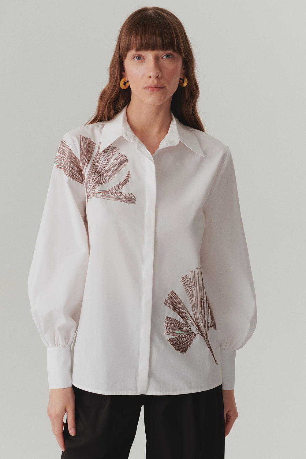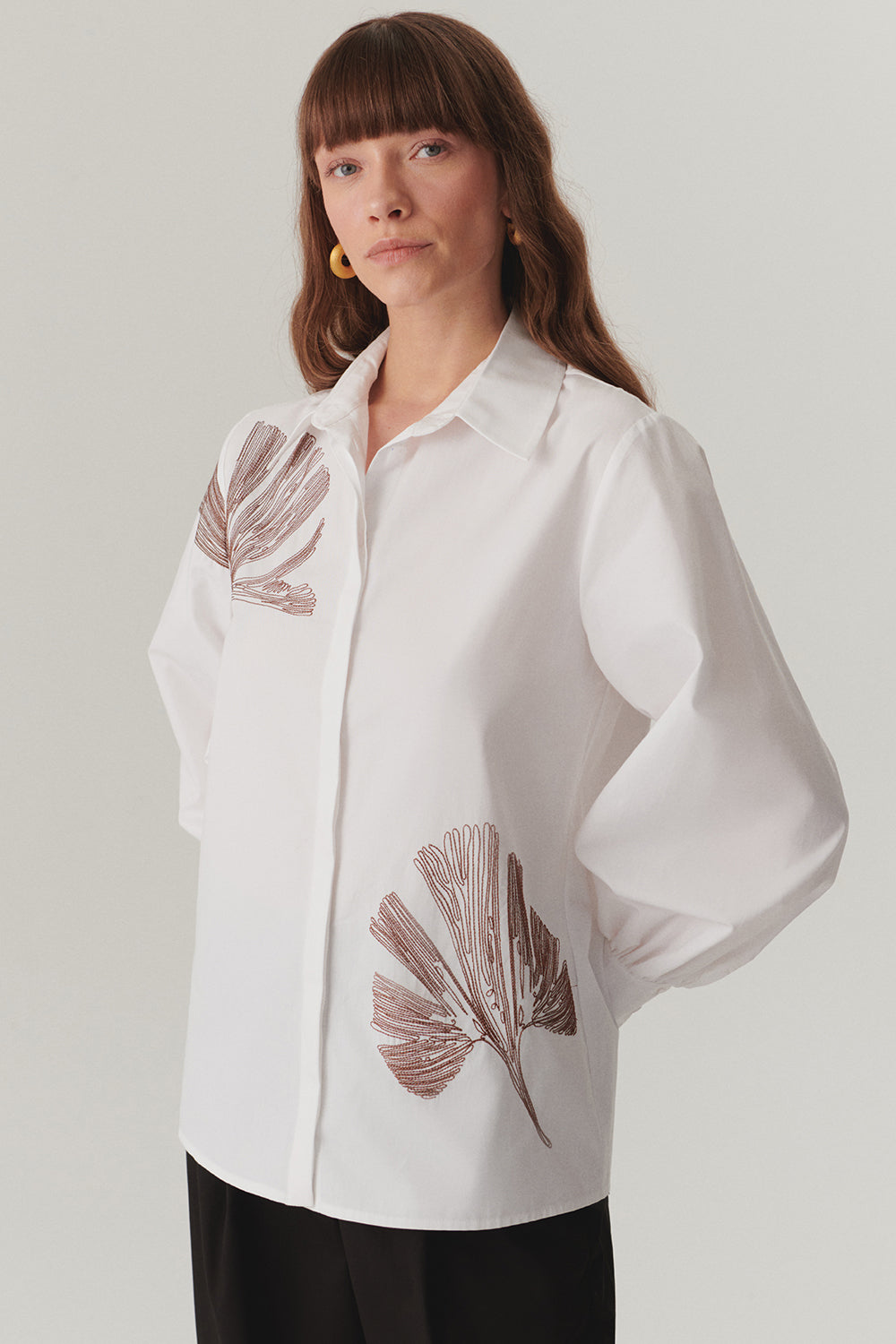 Çiçek Dikiş Detaylı Pamuk Regular Kemik Gömlek