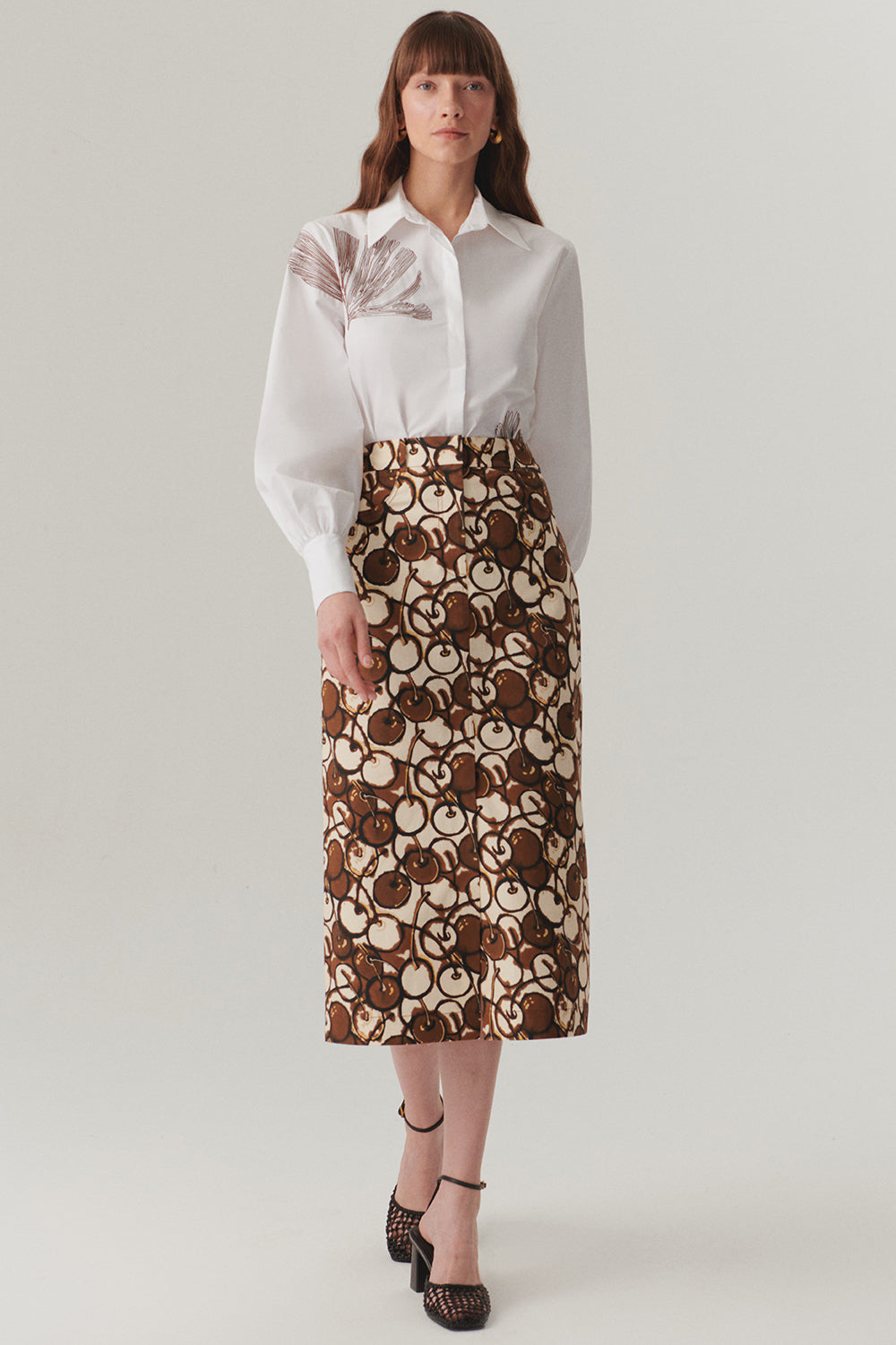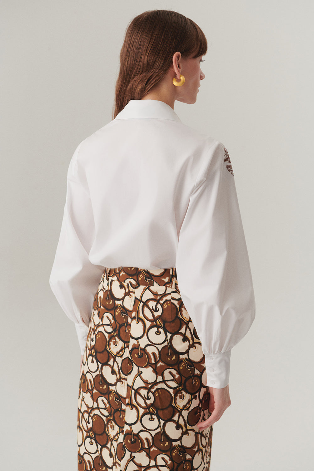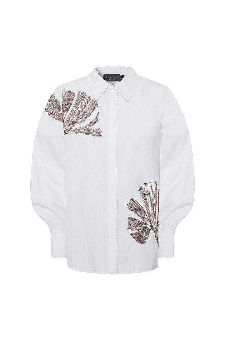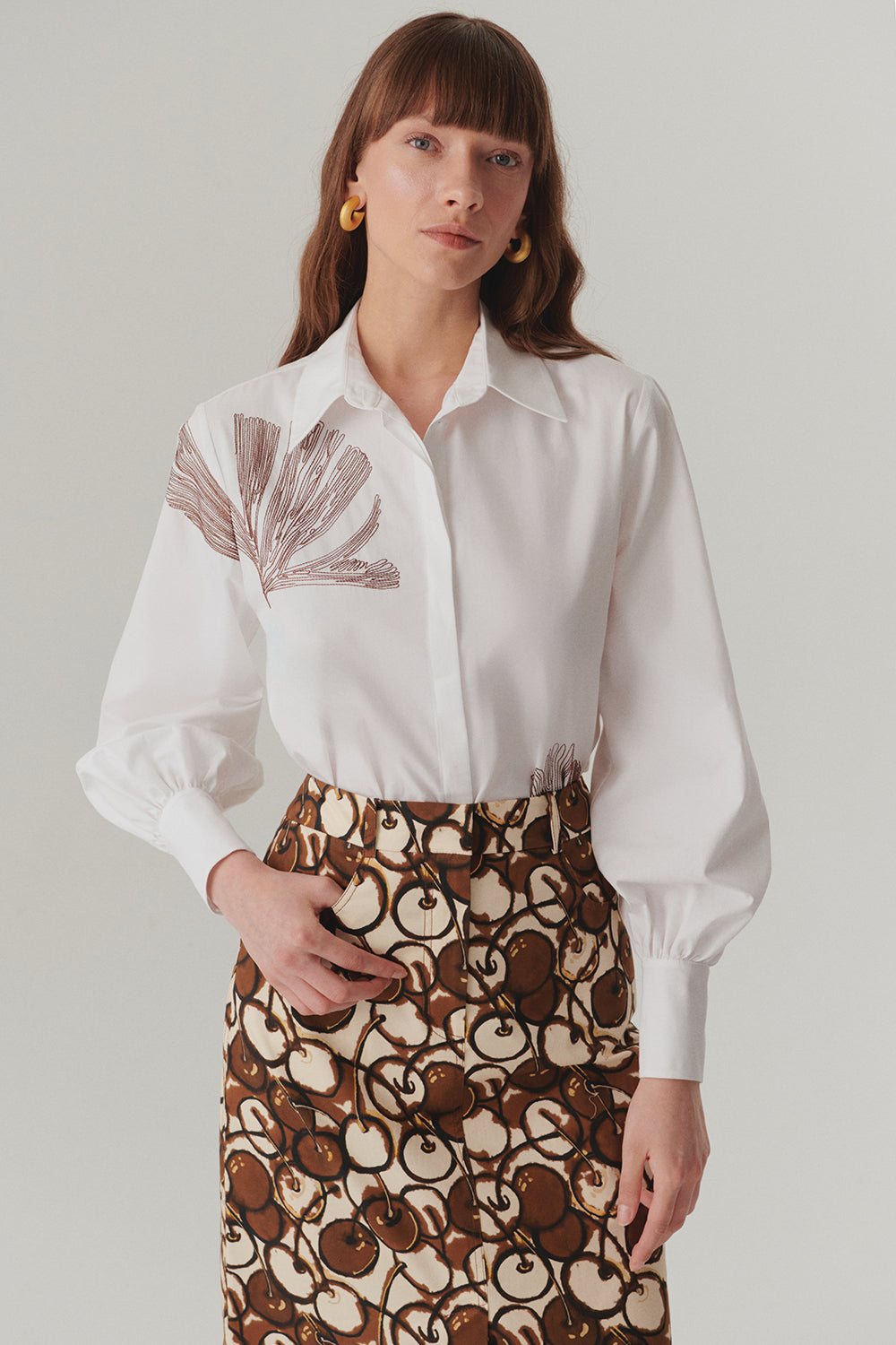 Çiçek Dikiş Detaylı Pamuk Regular Kemik Gömlek