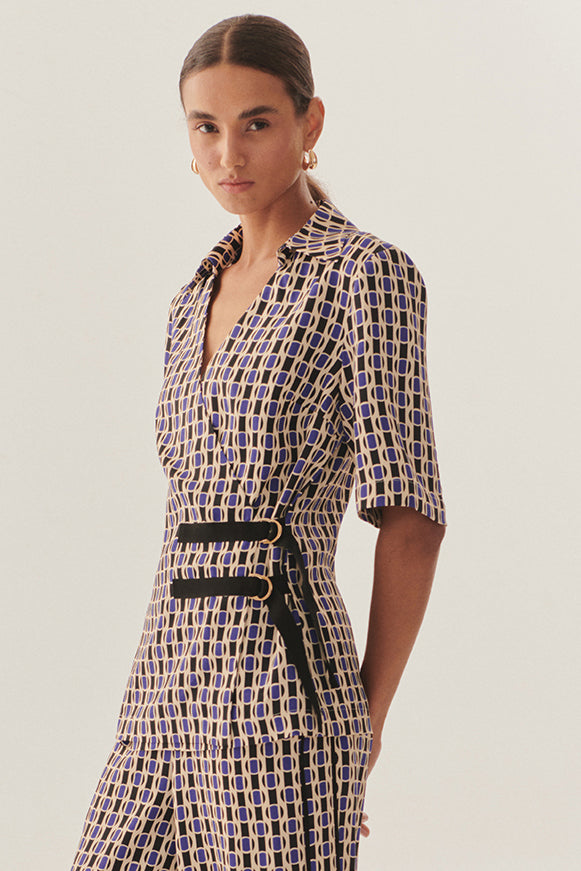 Çift Sabit Kemer Kapama Detaylı Regular Fit Desenli Gömlek