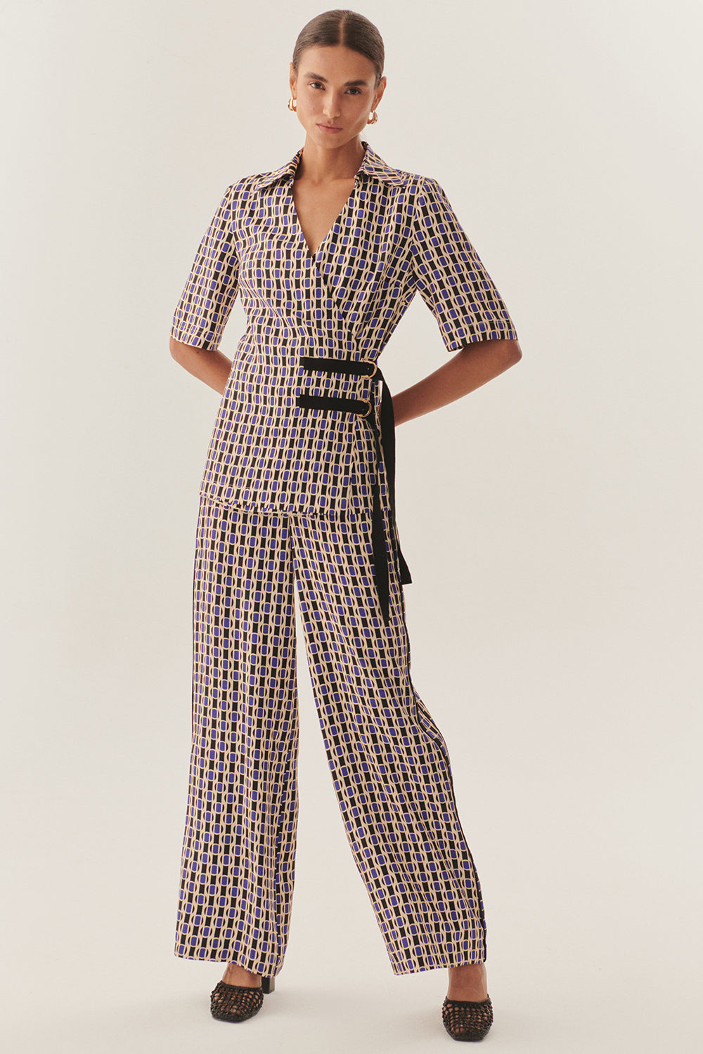 Zamansız desenlerin sofistike dokunuşlarla buluştuğu bu özel tasarım, güçlü ve şık bir stilin anahtar parçası! V yaka kesimi, feminen bir hava katarken, çift sabit kemer kapama detayı belinizi vurgulayarak zarif bir siluet oluşturuyor.Regular fit kesimi, gün boyu konfor sağlarken, cesur ve dinamik desenleriyle dikkat çekici bir duruş sergiliyor. Şık pantolonlarla ofis stilinizi tamamlayabilir, modern bir takım görünümü için uyumlu alt parçalarla kombinleyebilirsiniz. Günlük şıklıkta fark yaratmak isteyenler için ideal bir seçenek!