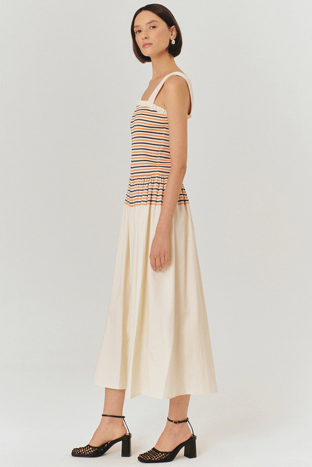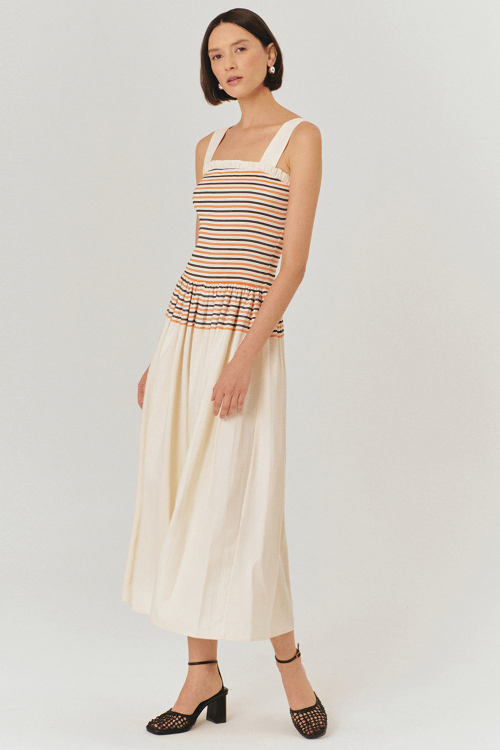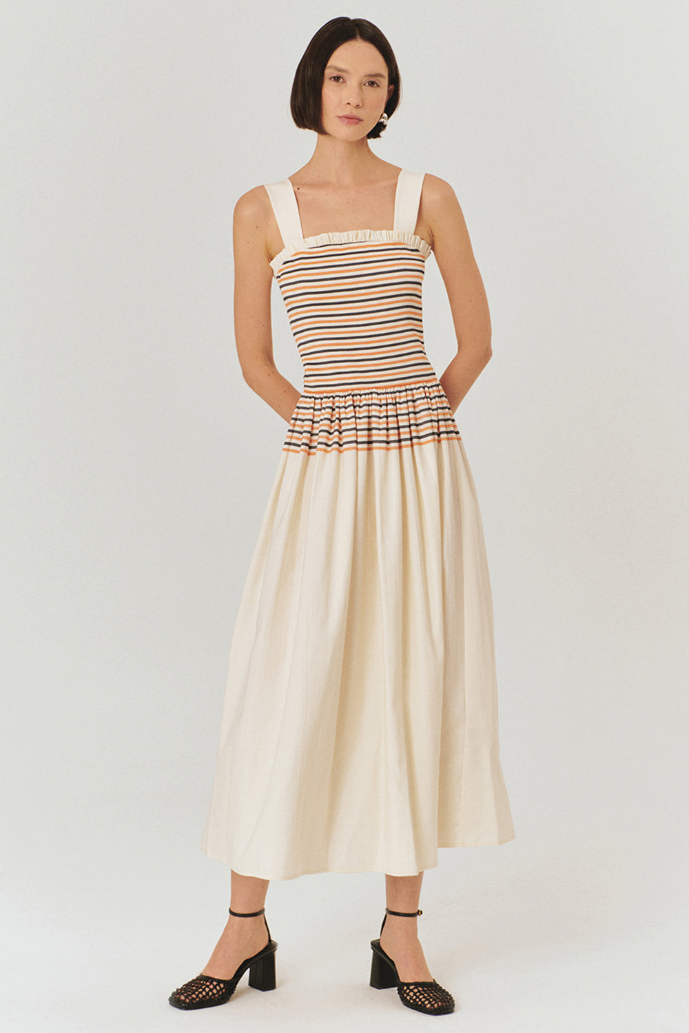 Minimal tasarımı ve rahat kesimiyle dikkat çeken çizgi desenli pileli askılı elbise, yaz aylarının vazgeçilmezi olacak. Modern ve zamansız çizgili üst kısmı, pileli eteğiyle mükemmel bir uyum içinde. Hafif yapısı ve rahat kesimi sayesinde gün boyu konfor sağlarken, aynı zamanda şıklığınızdan ödün vermemenizi sağlar.