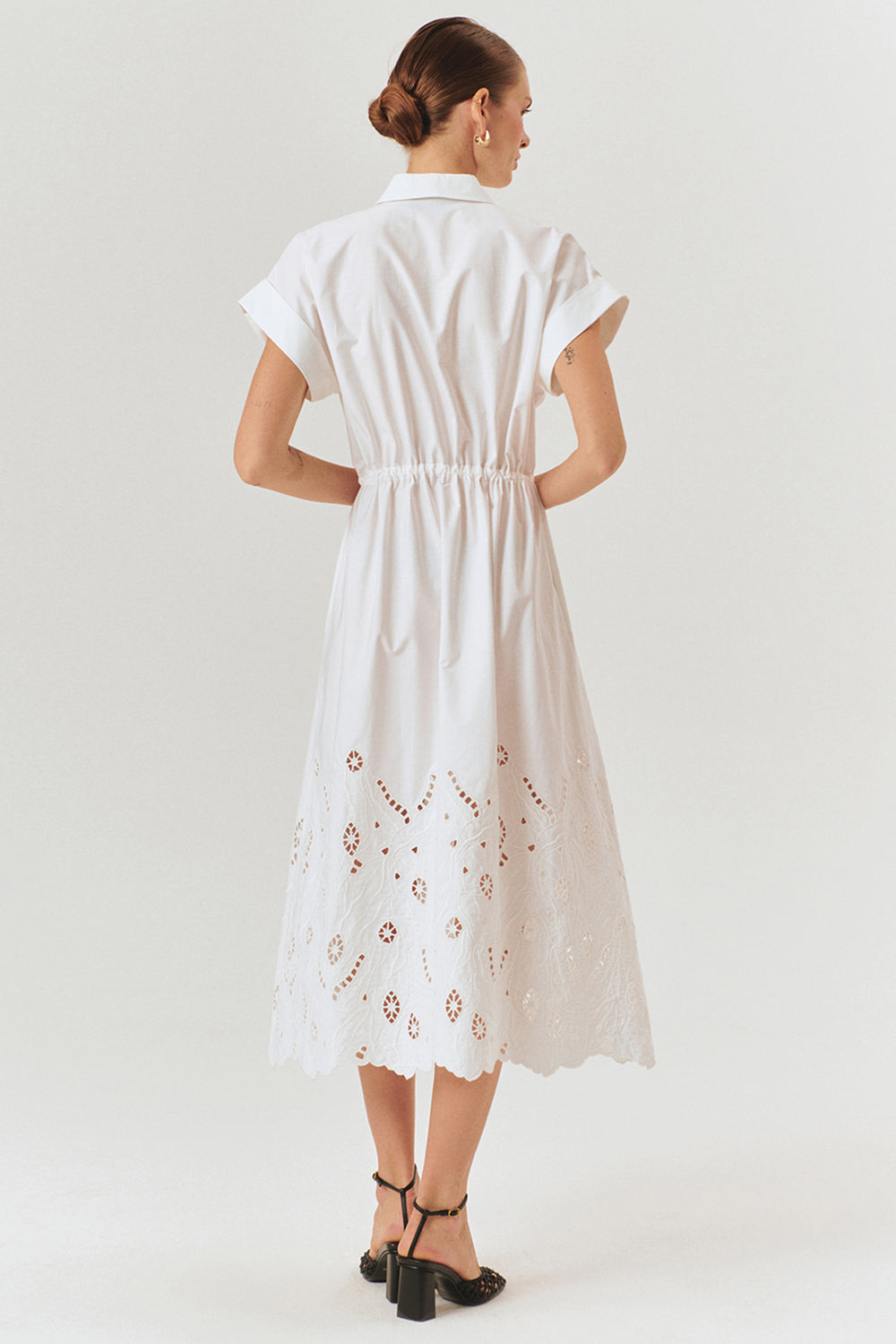 Düşük Kol Fisko Detaylı Pamuklu Rahat Kalıp Elbise