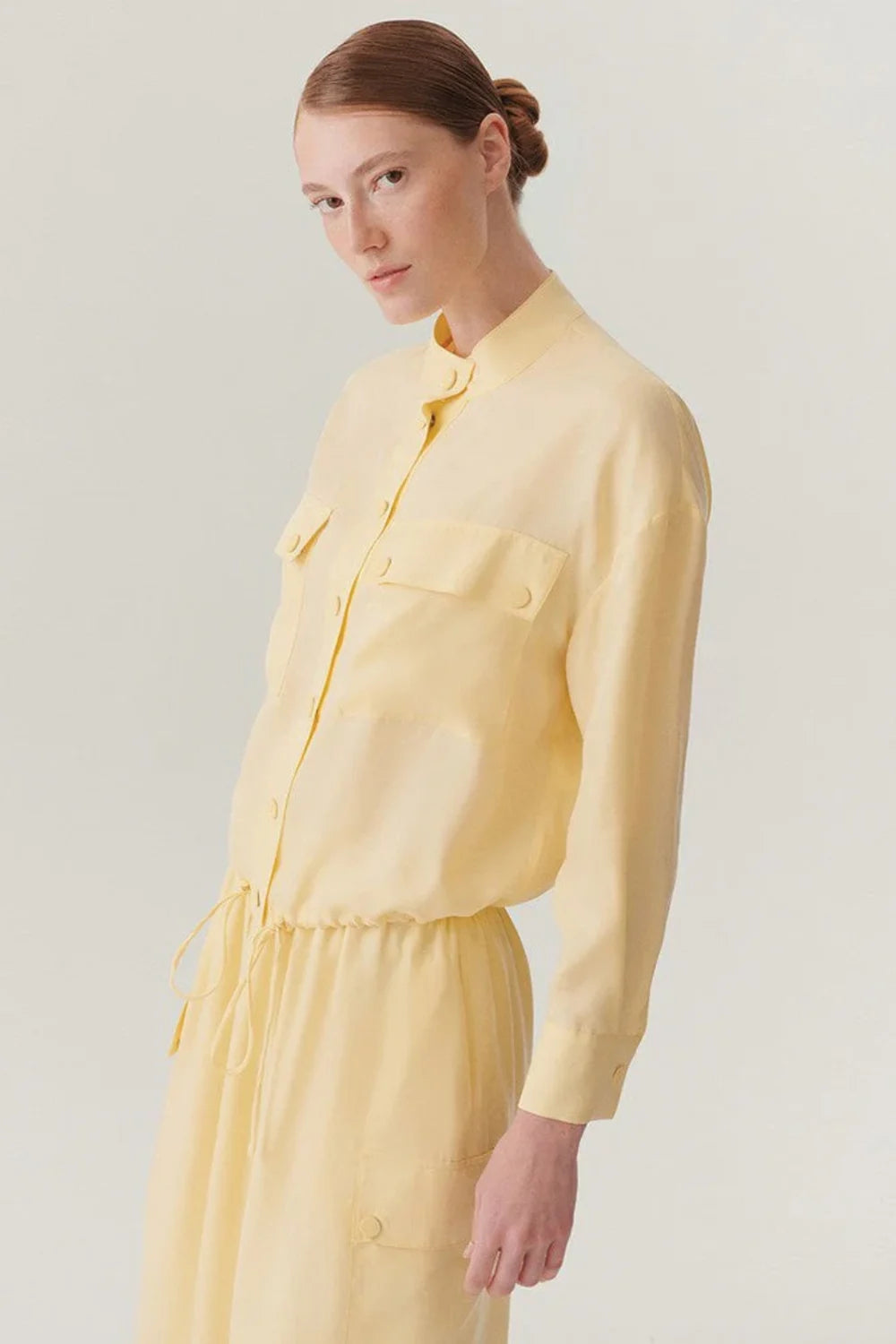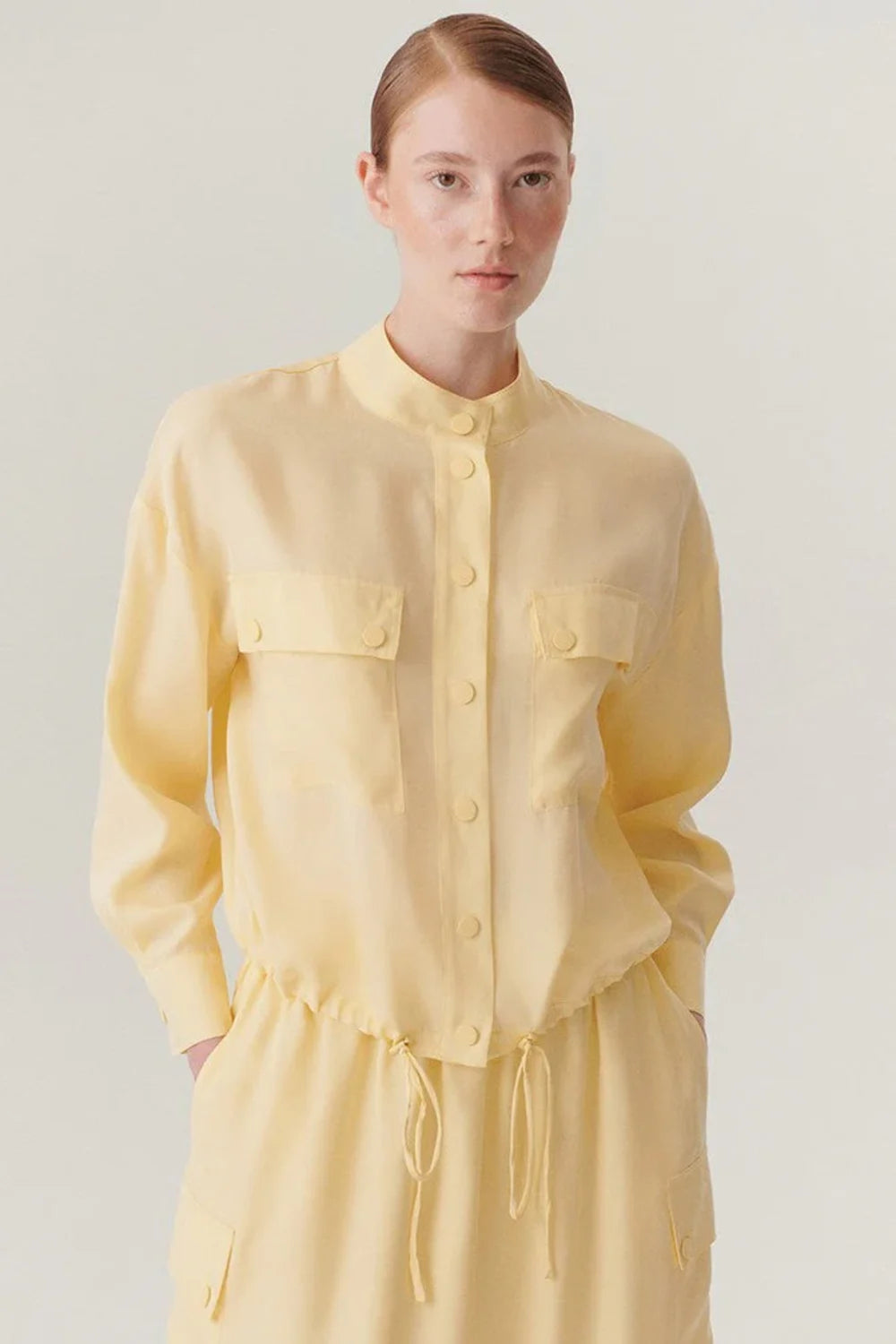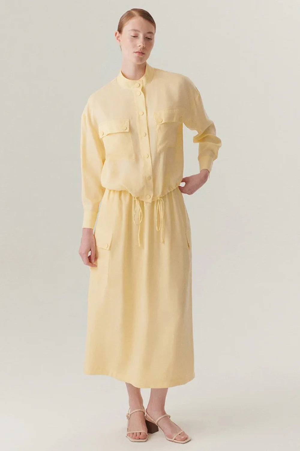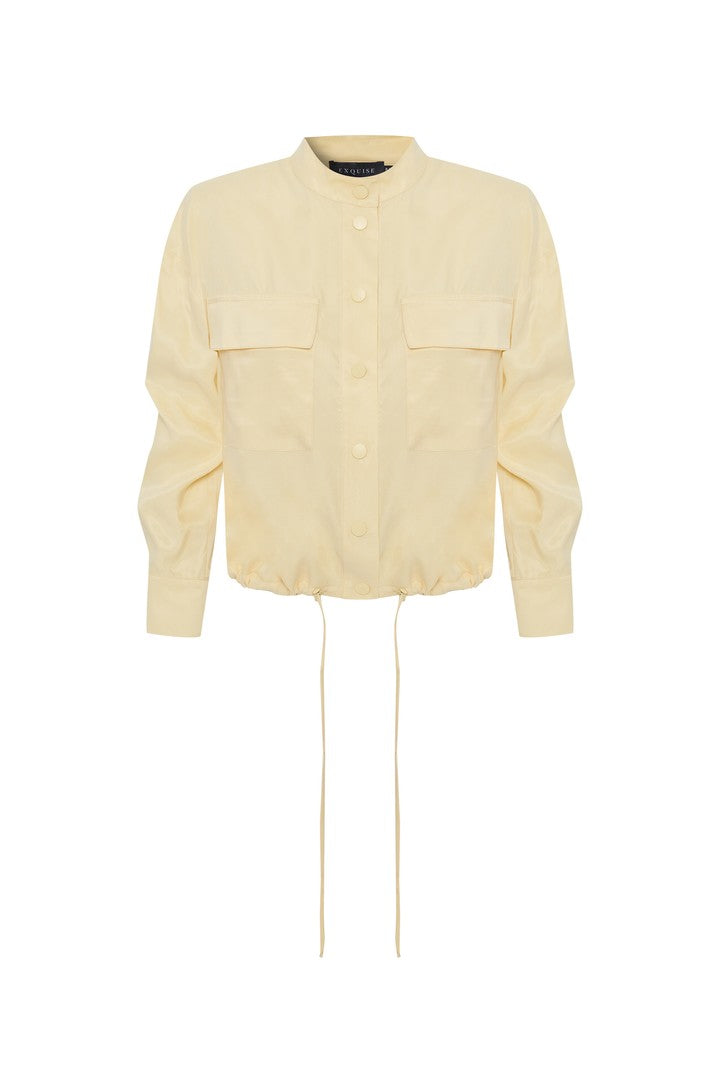 Hakim Yaka Çift Cepli Ayarlanabilir Bağcıklı Rahat Kalıp Lyocell Ceket