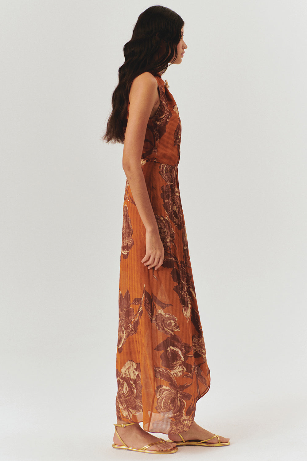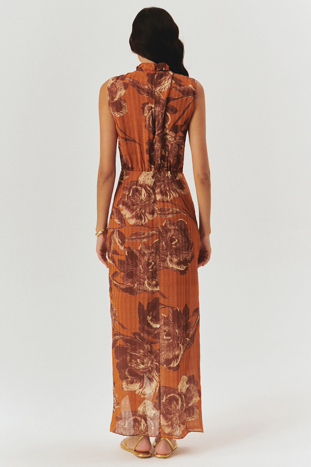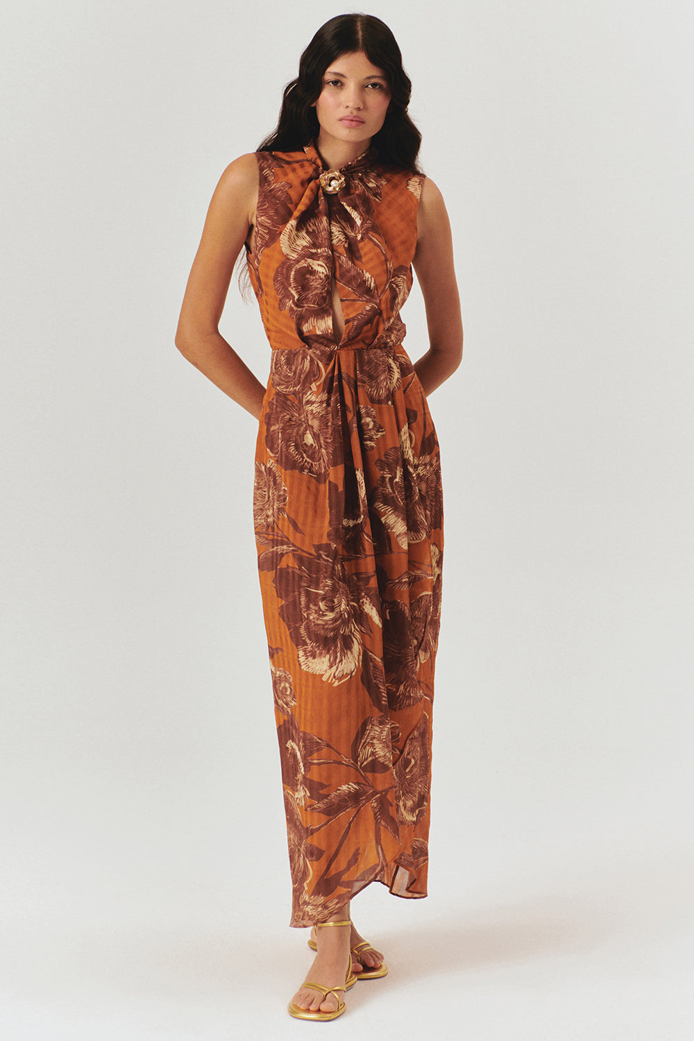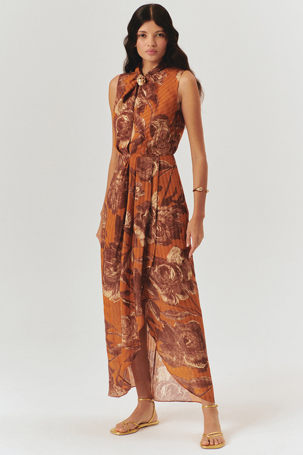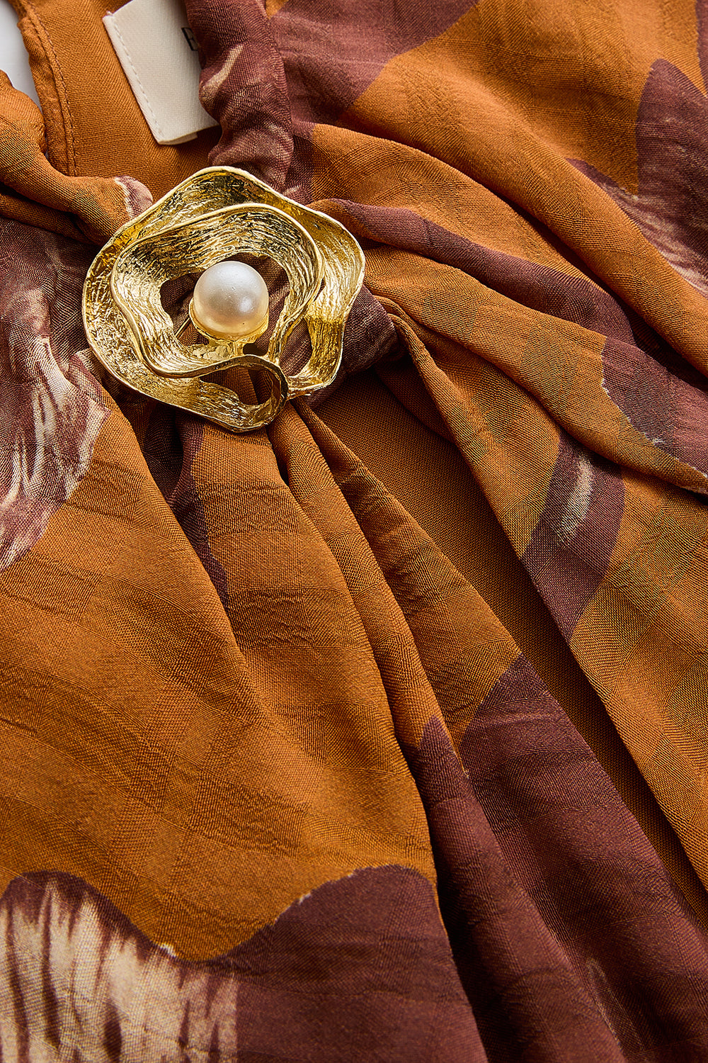 İNci Tokalı Detaylı Desenli Maxi Elbise
