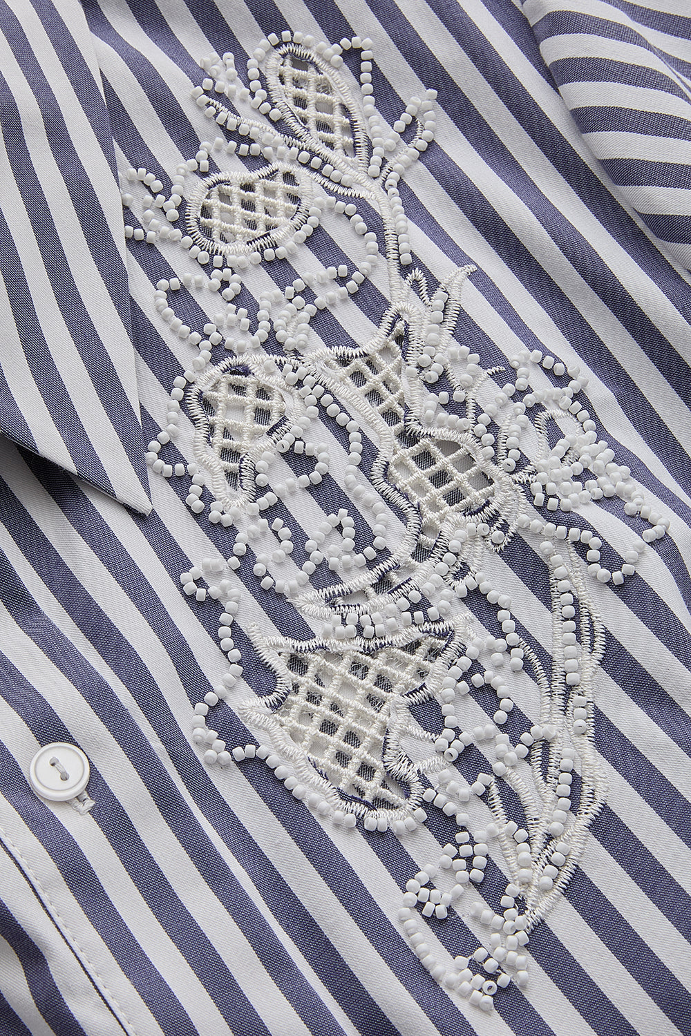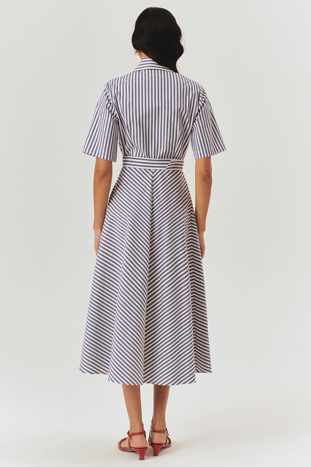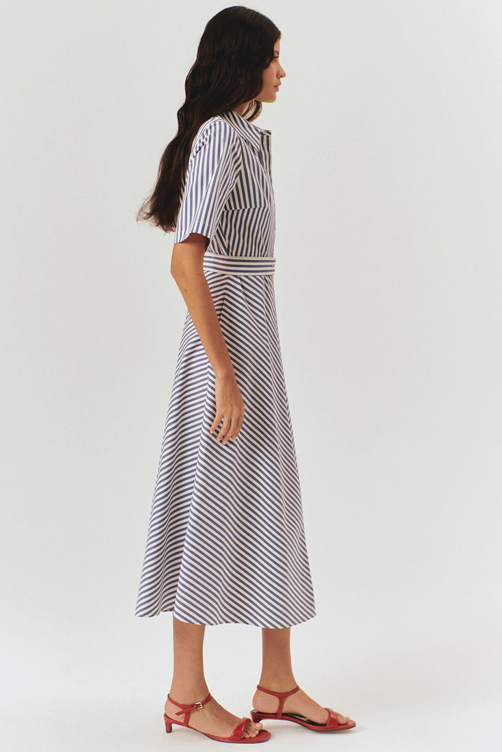 İŞleme Detaylı Kemerli Çizgili A Kesim Gömlek Elbise