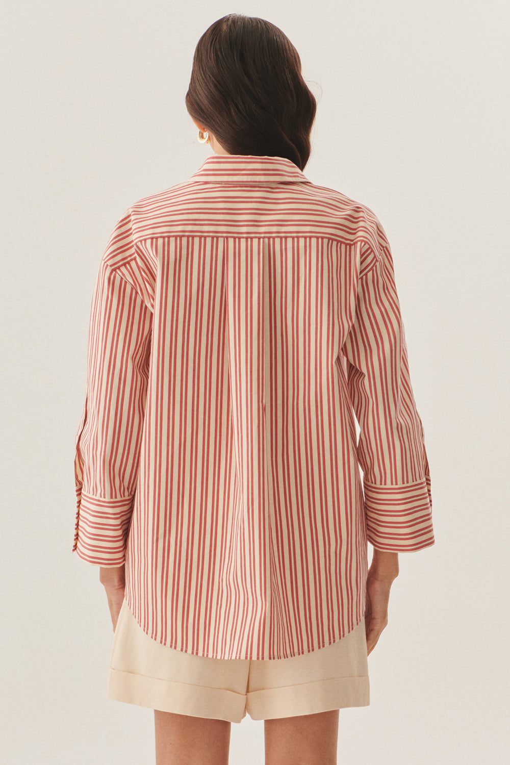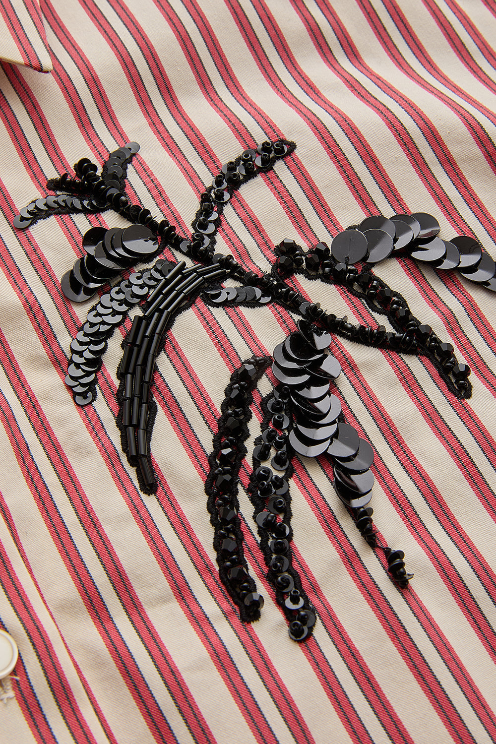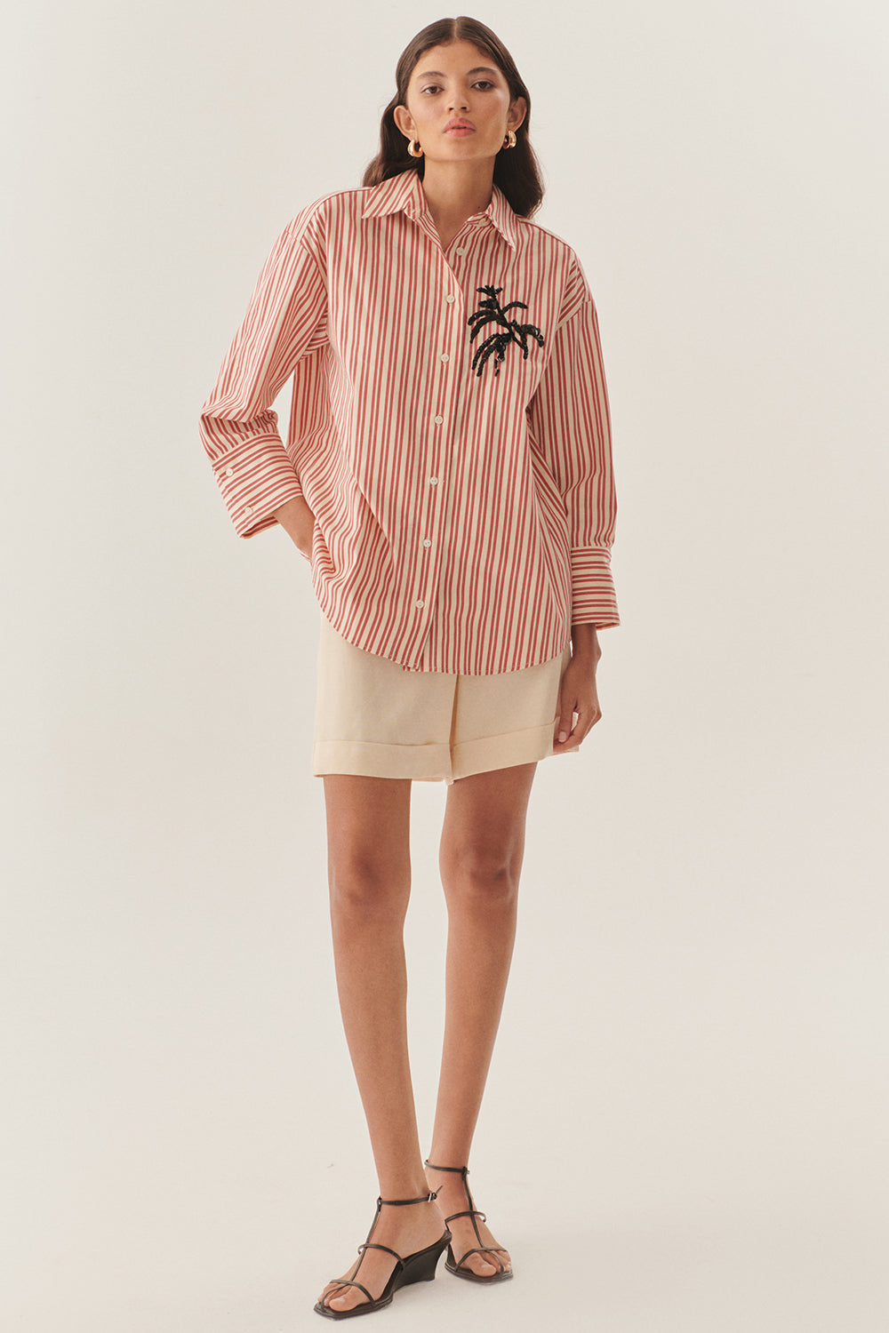 İŞleme Detaylı Kırmızı Çizgili Regular Gömlek
