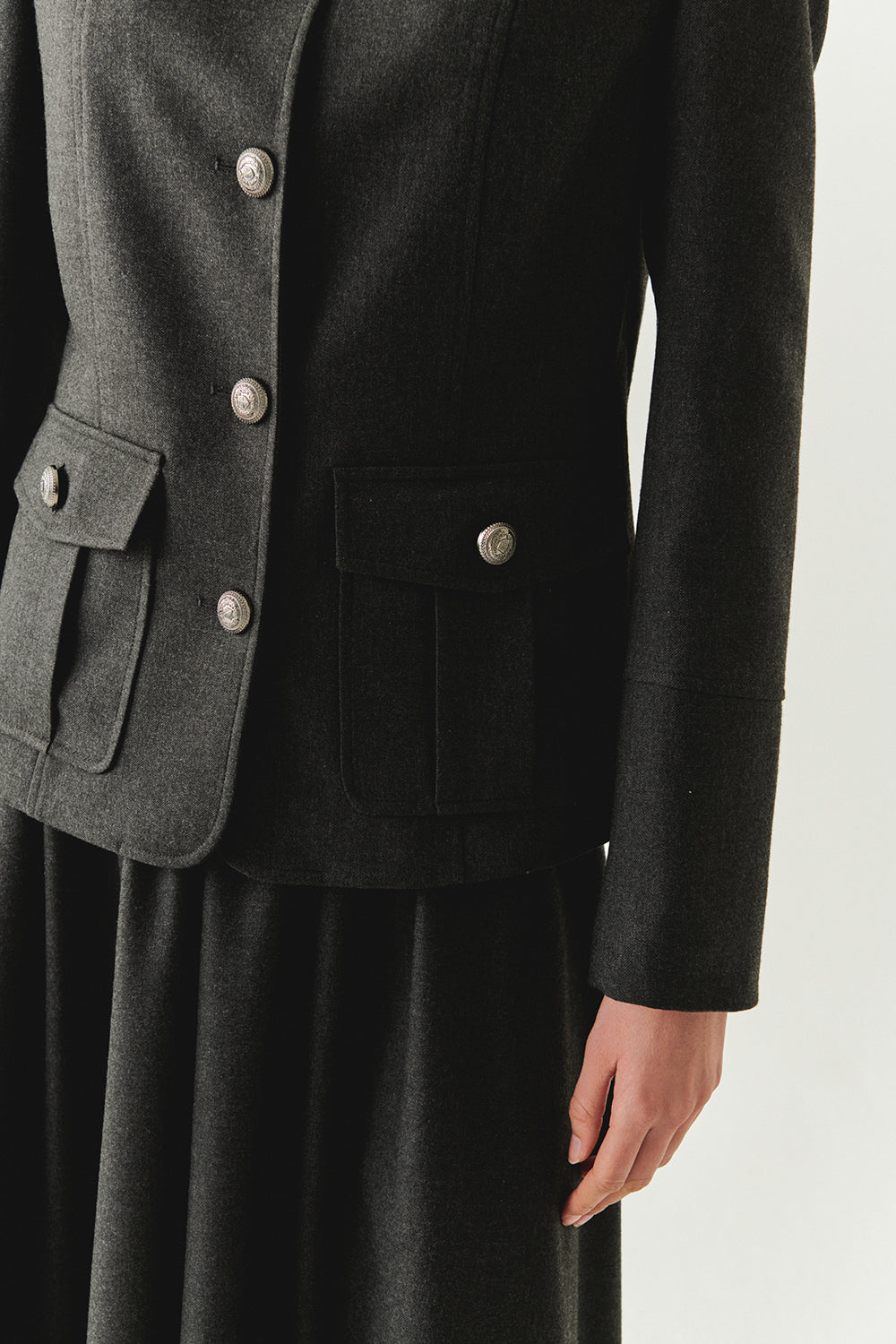 Kapak Cepli Astarlı Slim Fit Gri Ceket