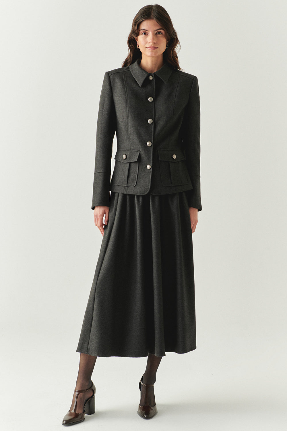 Klasik şıklığın modern bir yorumunu sunan bu slim fit gri ceket, zarif kesimi ve kaliteli kumaşıyla dikkat çeker. Ön kısmındaki kapaklı cepler hem fonksiyonel hem de tasarıma sofistike bir detay katar. Astarlı yapısı sayesinde konforlu bir kullanım sunarken, düğme kapamalı tasarımı ile ofis stilinden özel davetlere kadar farklı kombinlere uyum sağlar. Zamansız gri tonuyla gardırobunuzun vazgeçilmez parçalarından biri olacak.