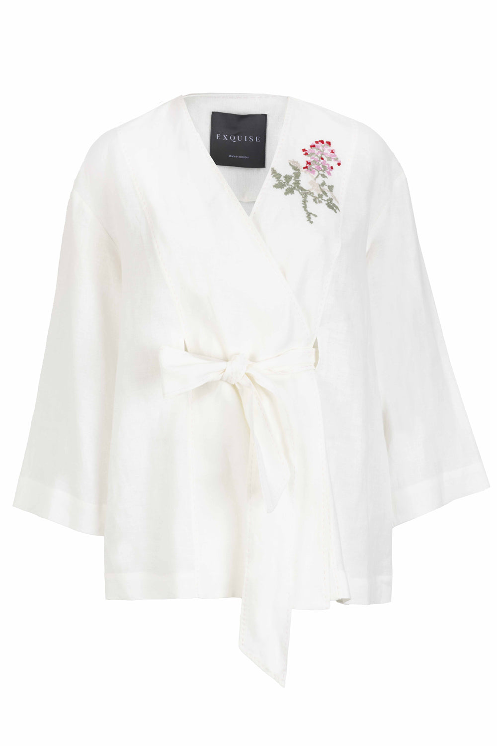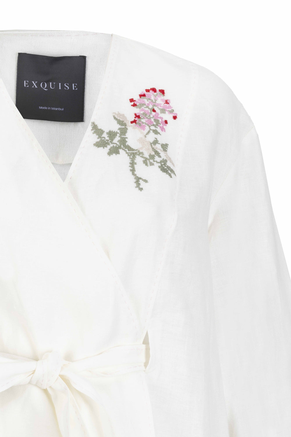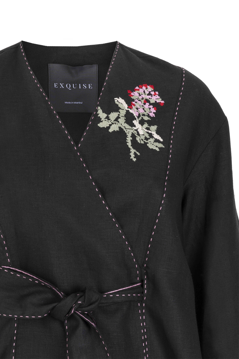 Kendi Kumaşında Kemerli Nakış İŞlemeli Rahat Kalıp Ceket