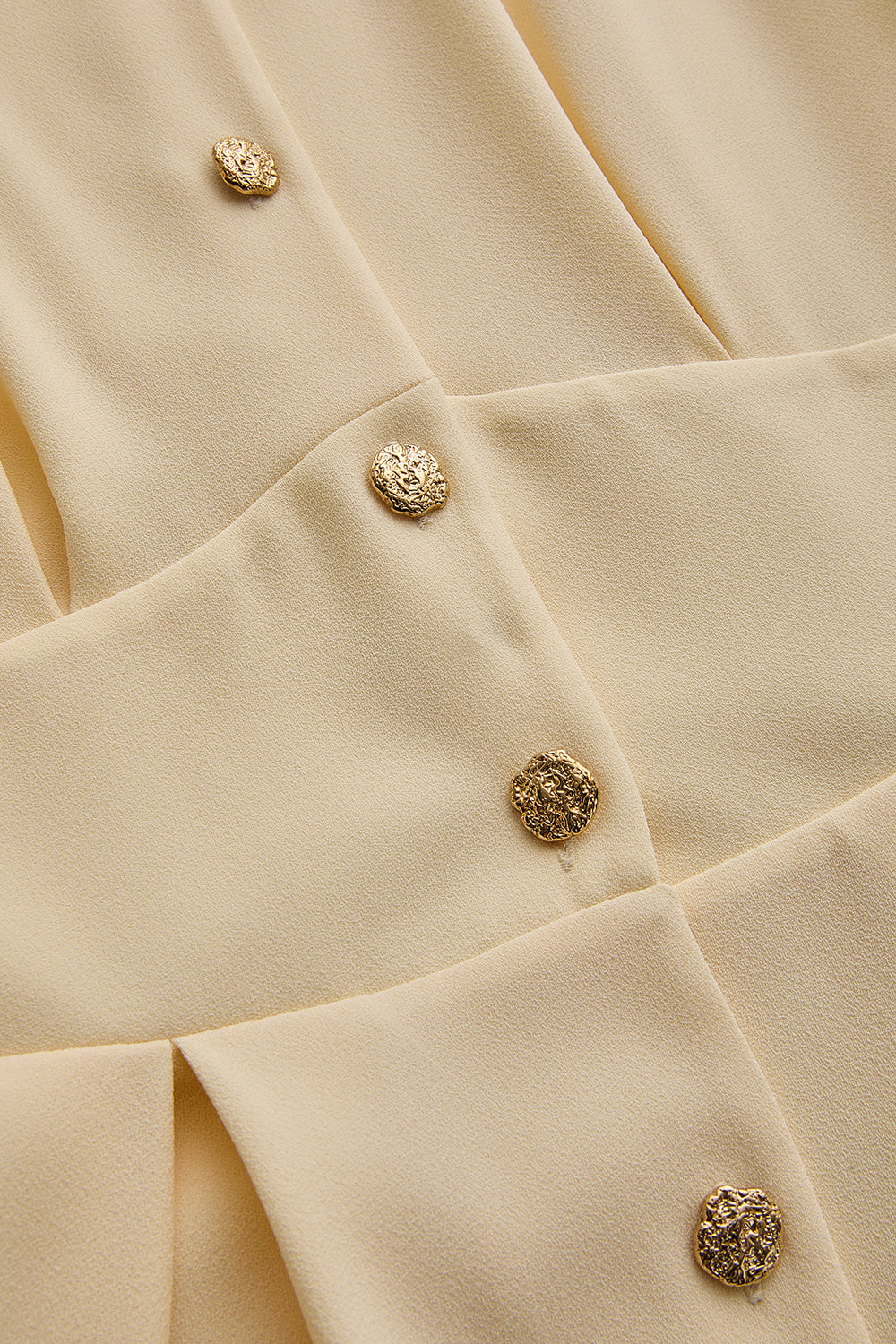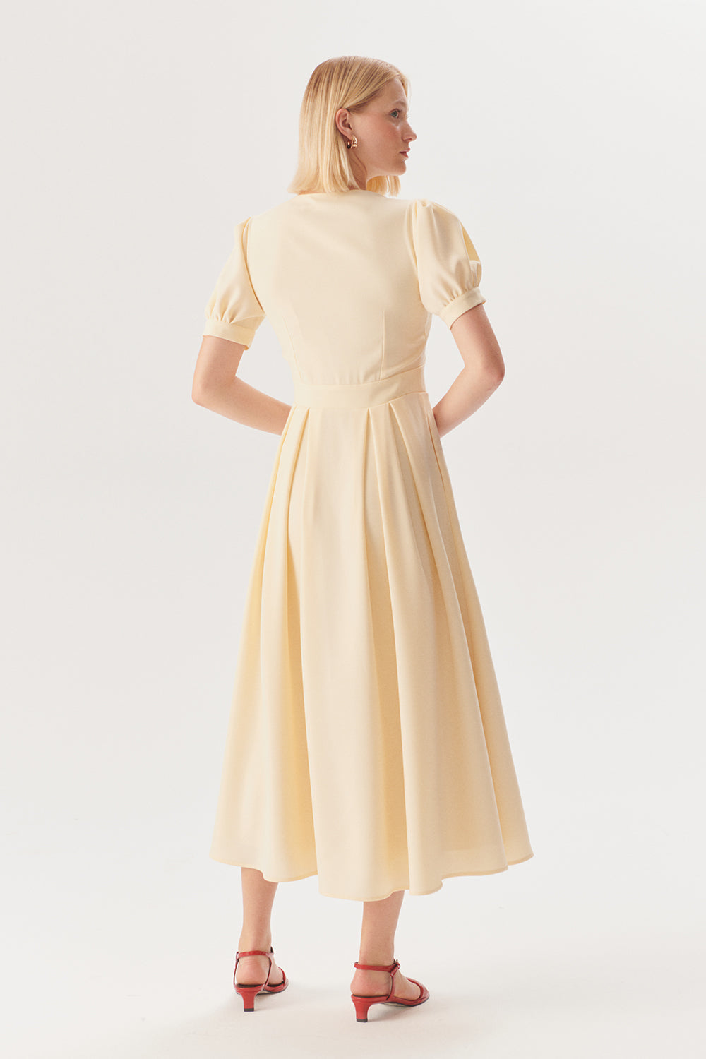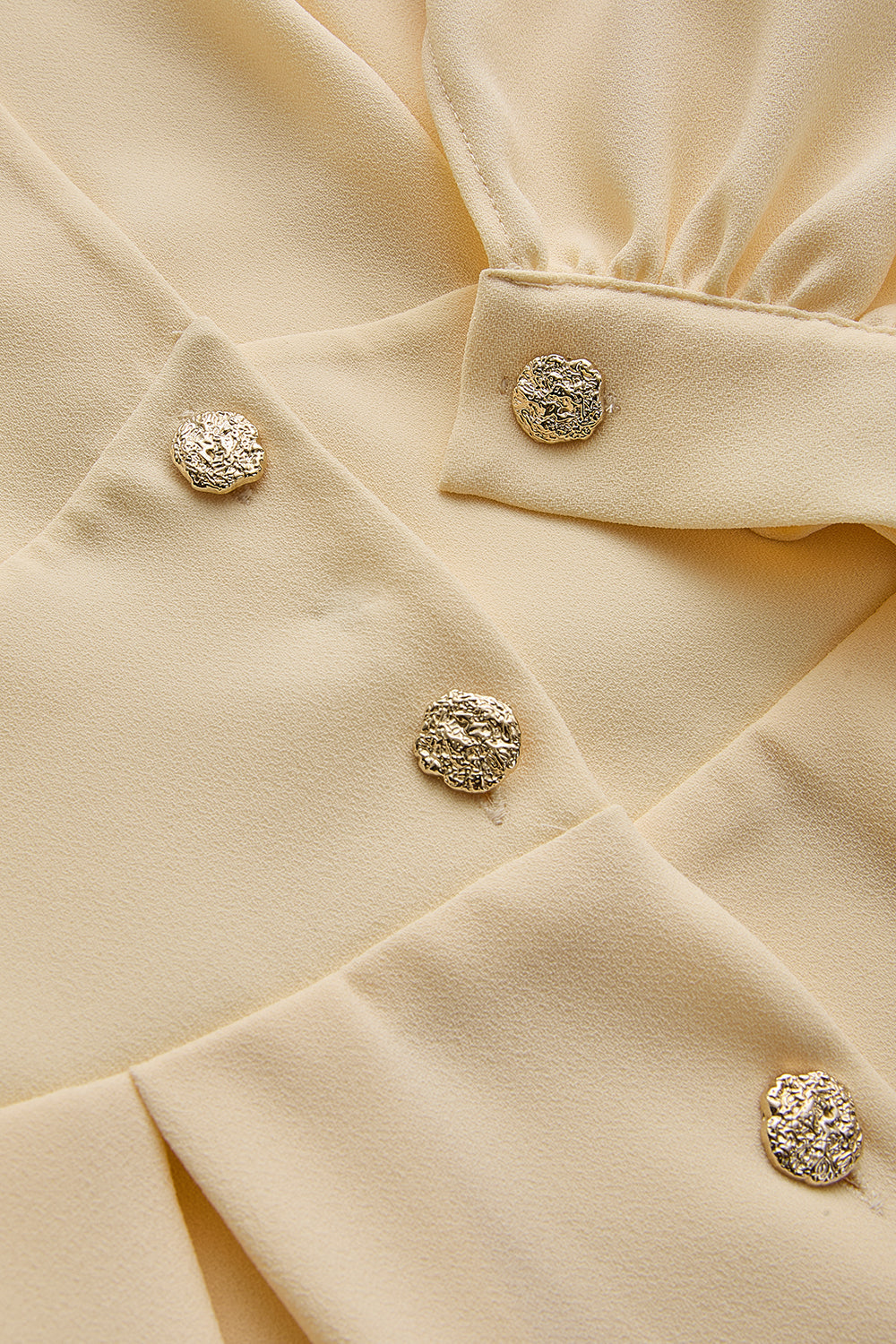 Kısa Kol Önden Düğmeli Bele Oturan Bej Elbise