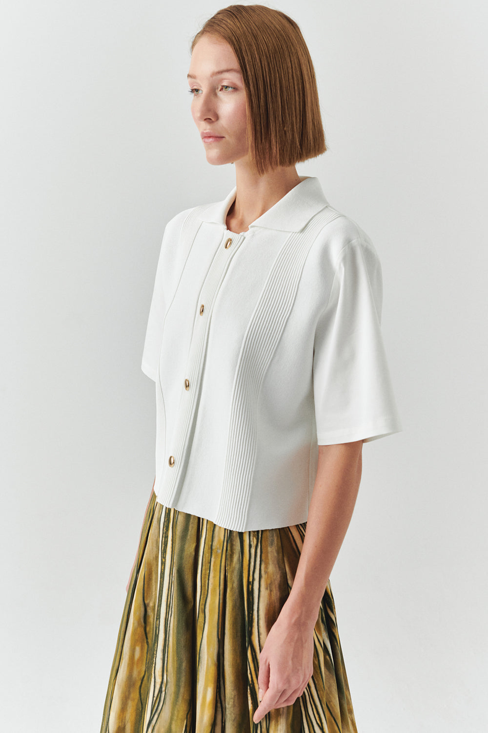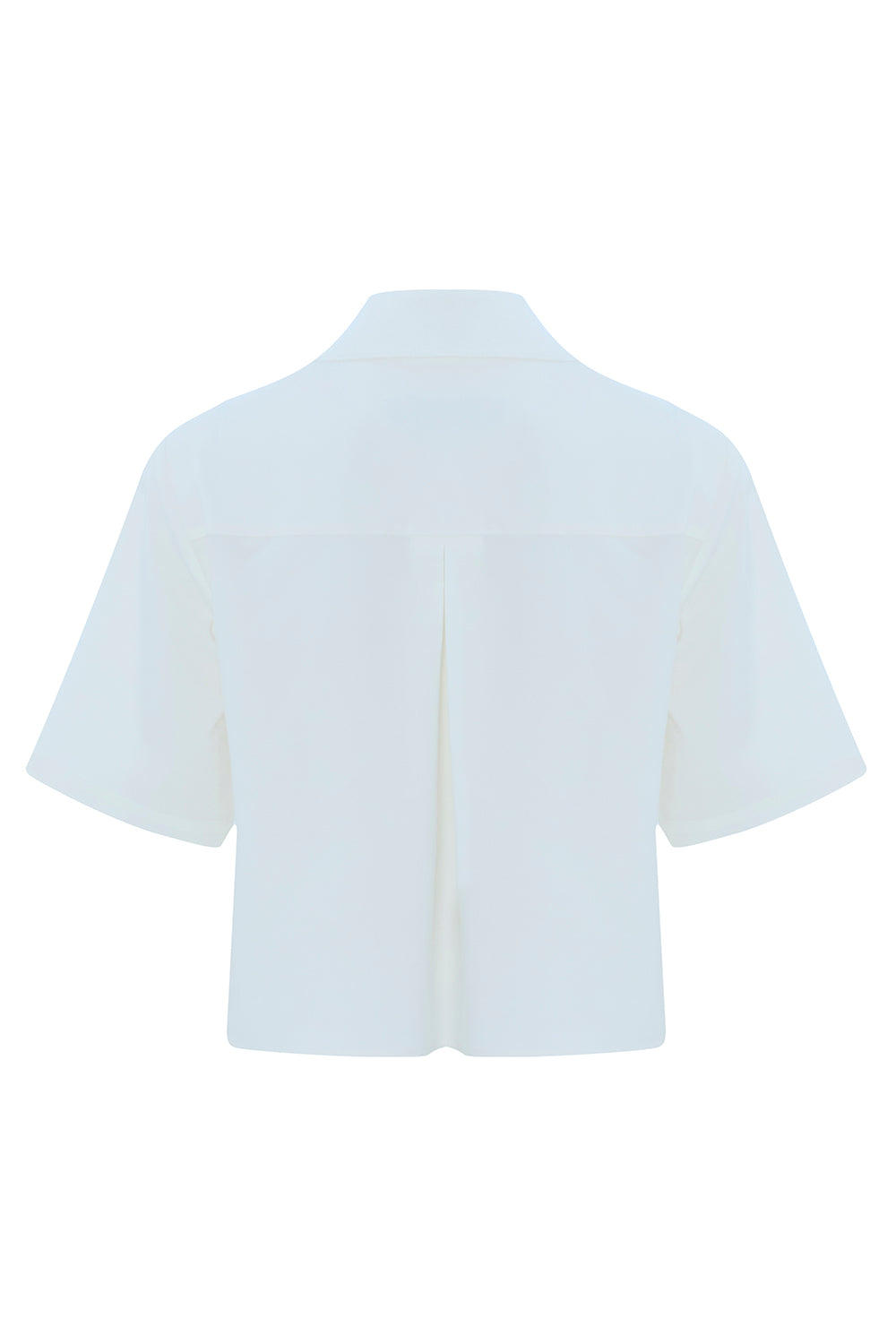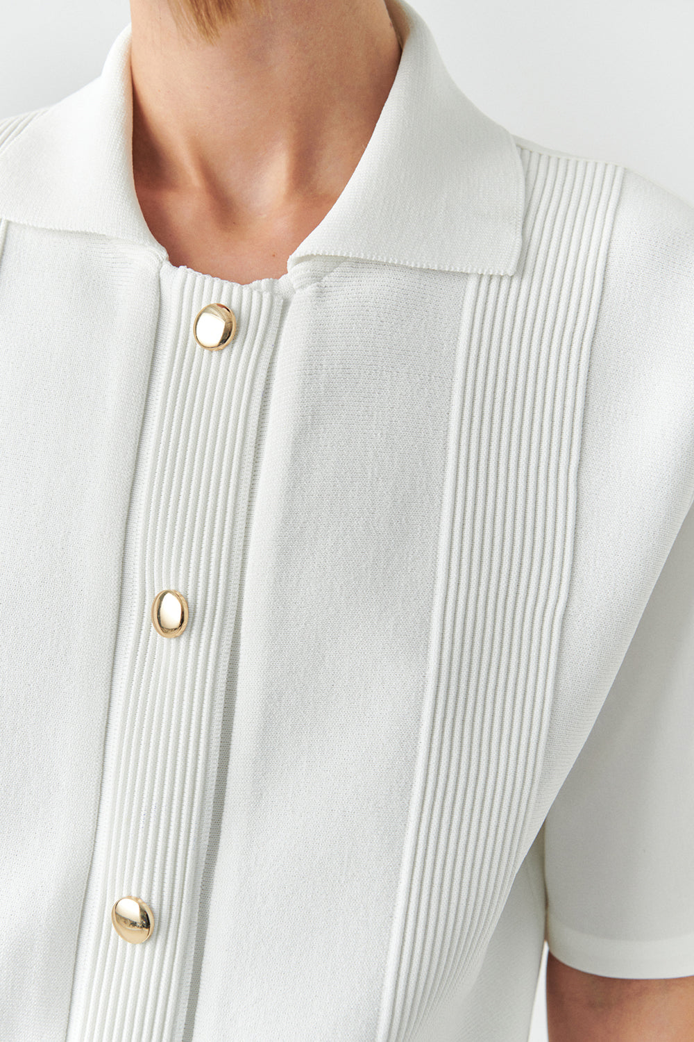 Kısa Kollu Triko Garnili Poplin Regular Kemik Gömlek