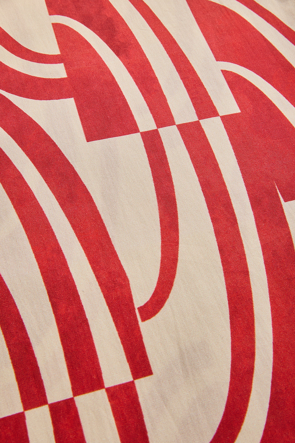 Soyut Desenli Pamuklu Kahve Kemik Wide Leg Pantolon