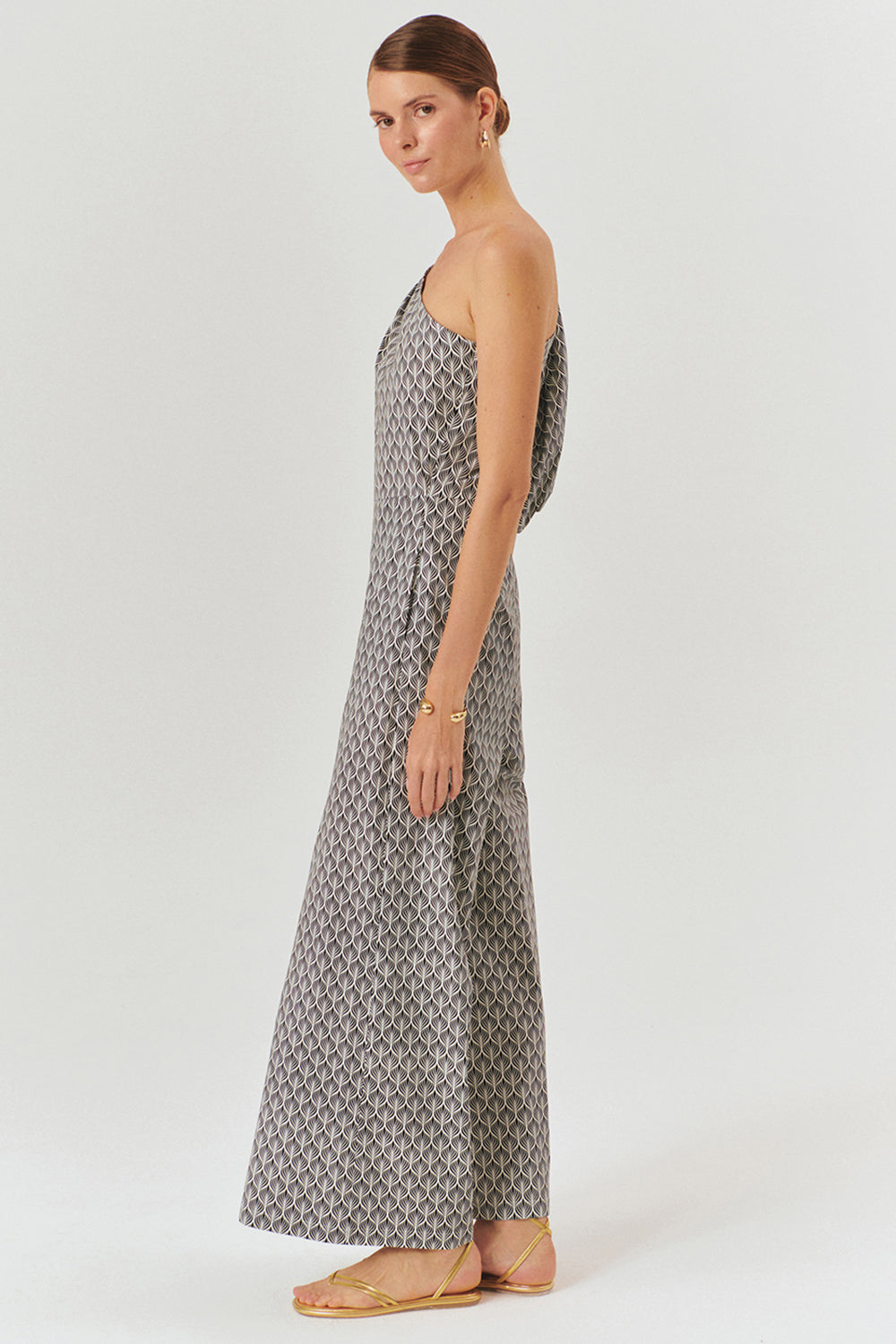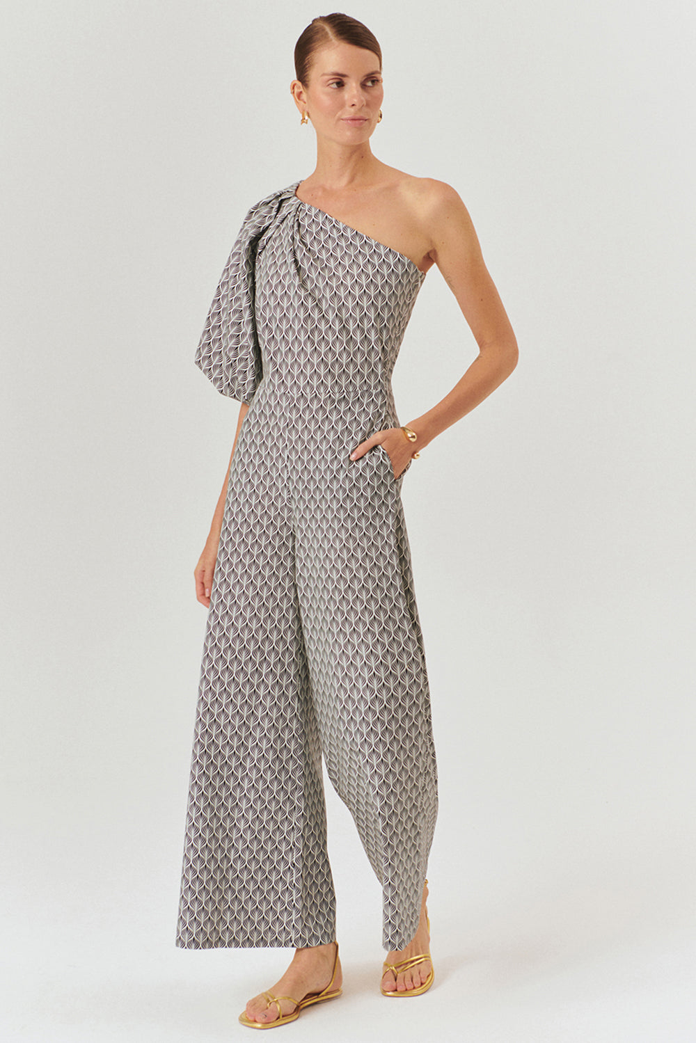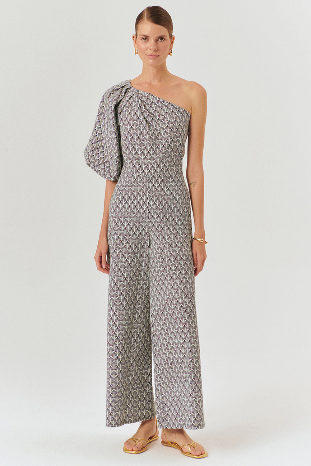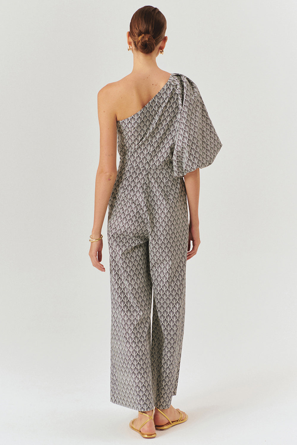 Tek Omuz Balon Kol Desenli Pamuklu Regular Tulum