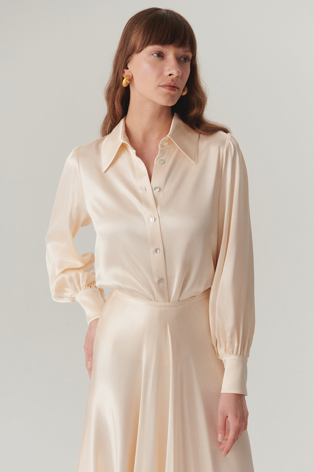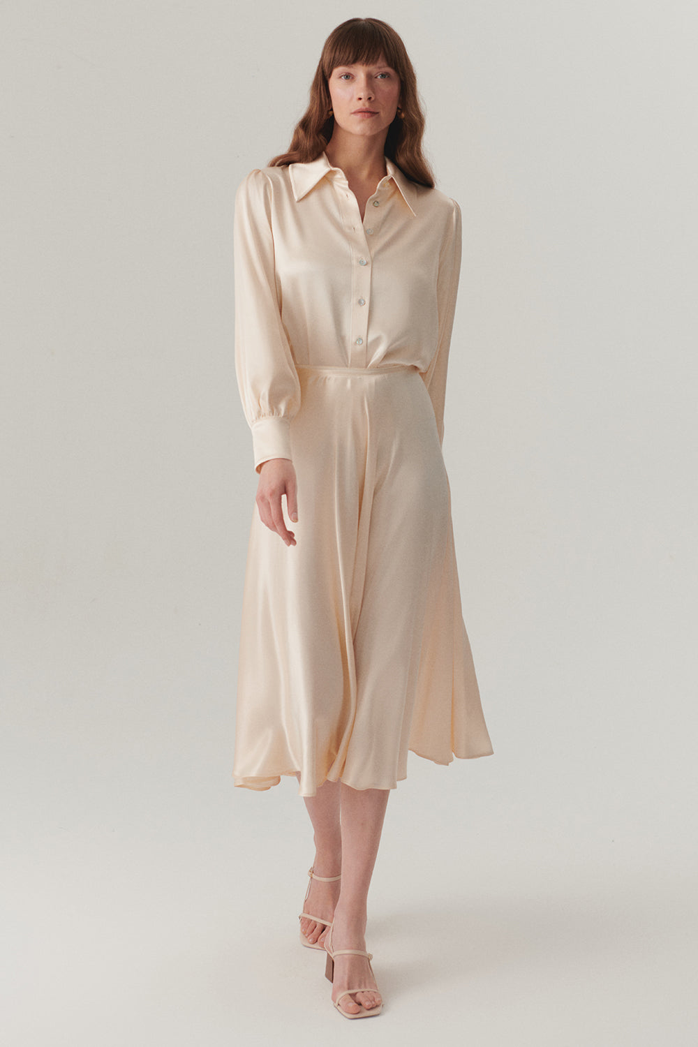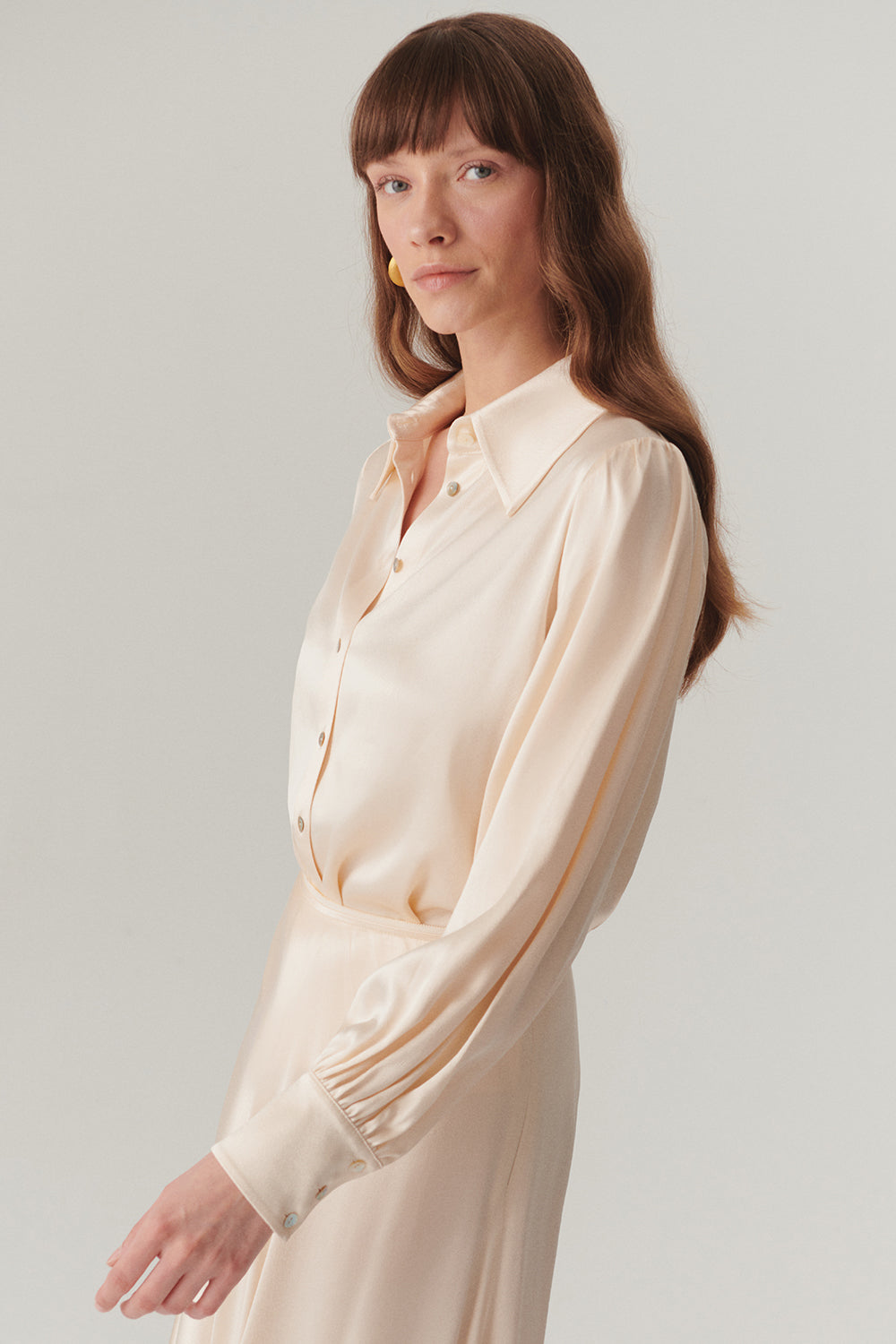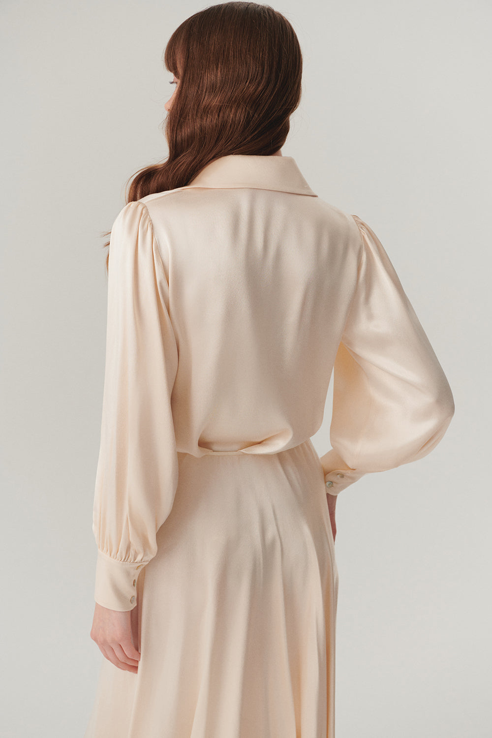 Uzun Kol Parlak Dokulu Regular Fit Saten Gömlek