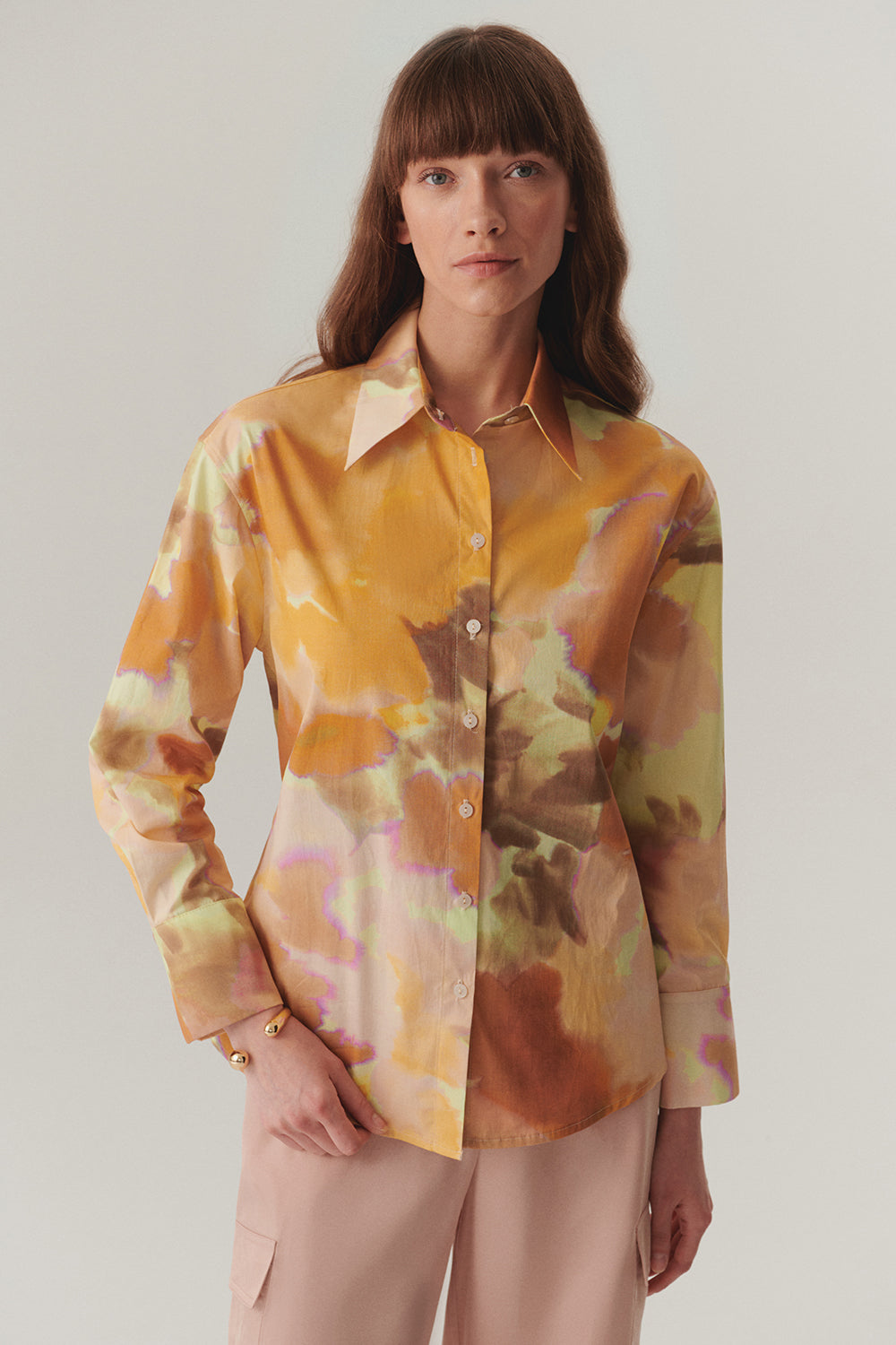 Uzun Kollu Regular Fit Pamuklu Soyut Desenli Gömlek