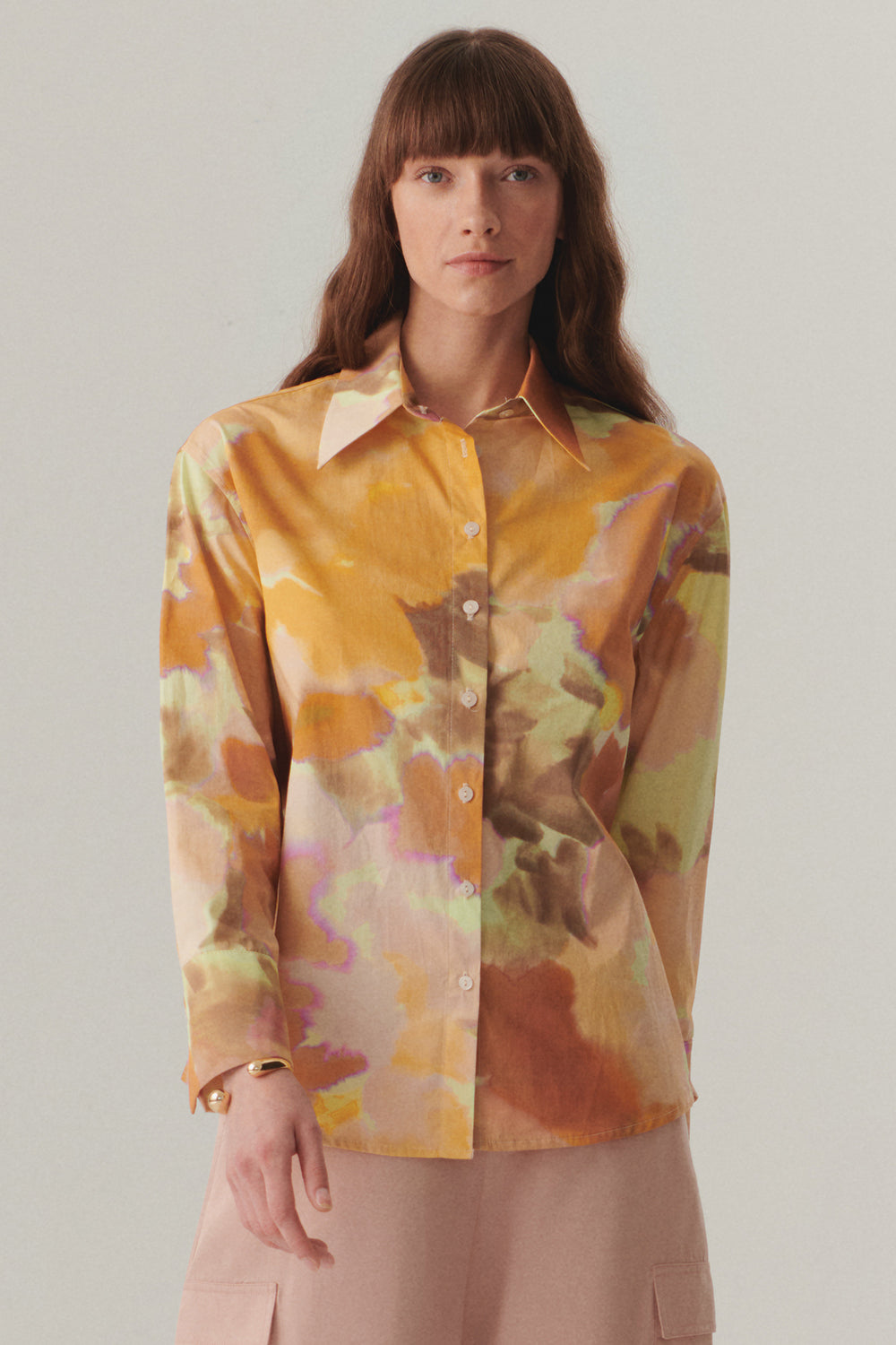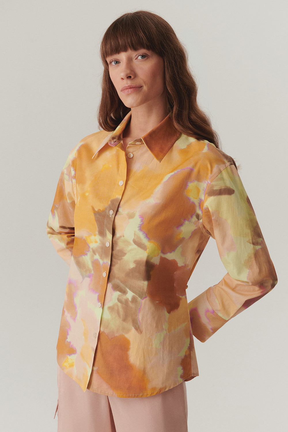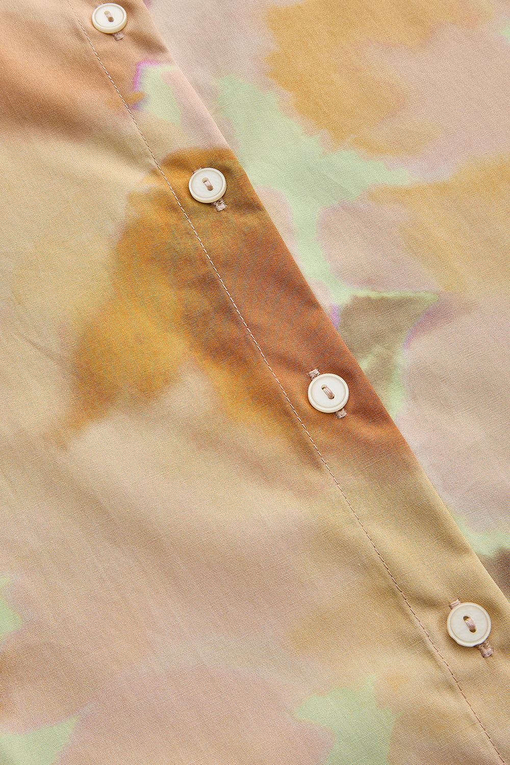 Renklerin büyüleyici uyumuyla stilinize sanatsal bir dokunuş katın! Soyut desenleri, modern ve dinamik bir hava yaratırken, regular fit kesimi gün boyu konfor sağlar. %100 saf pamuk dokusu, hafif ve nefes alabilen yapısıyla her mevsimde rahat bir kullanım sunar.Bu zamansız gömleği klasik pantolonlarla sofistike bir görünüm, jeanlerle modern bir stil, ya da şortlarla rahat bir yaz kombini oluşturmak için kullanabilirsiniz. Günlük şıklığınızı sanatsal desenlerle taçlandırın!