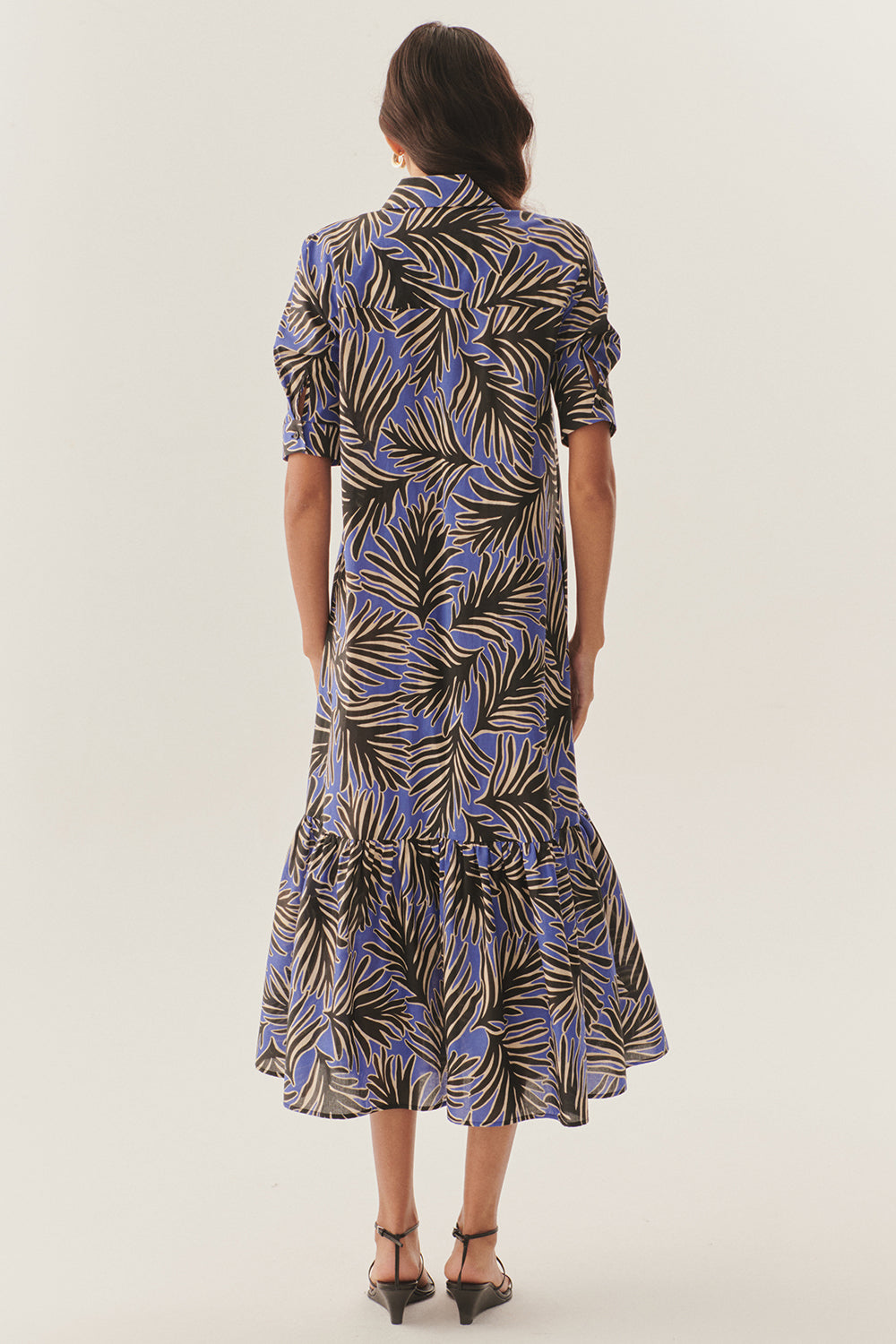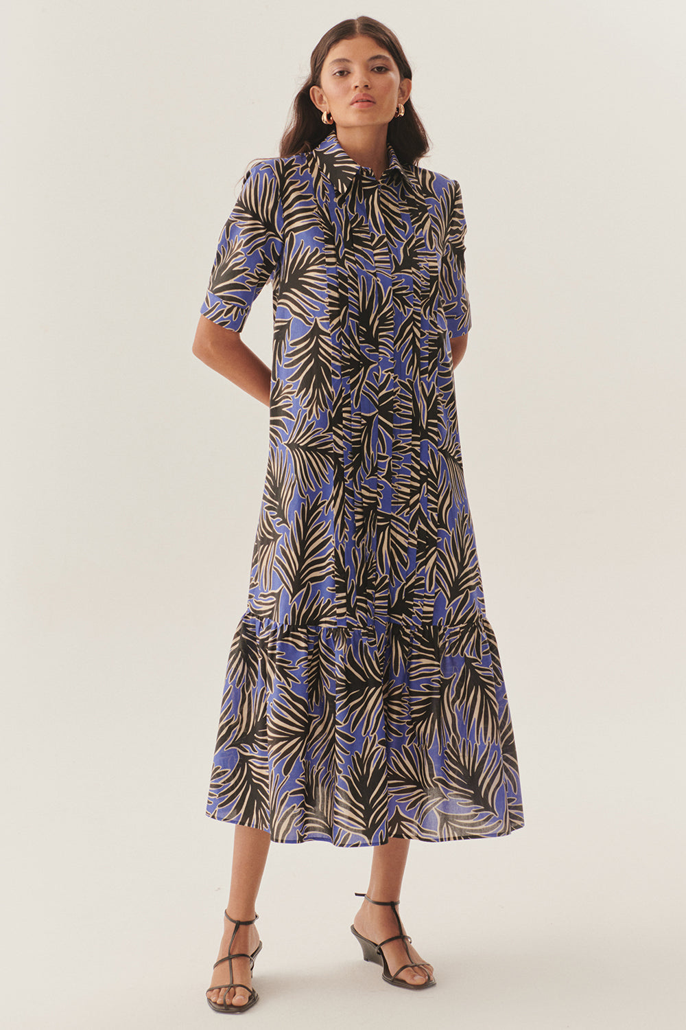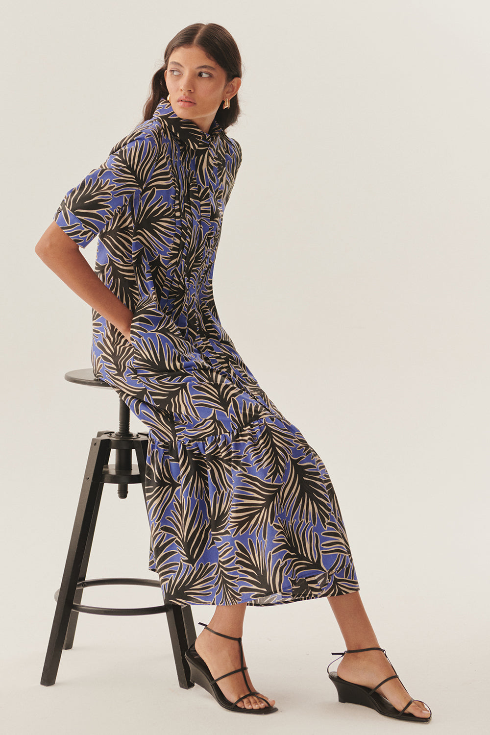 Yaprak Desenli Pamuklu Regular Midi Gömlek Elbise
