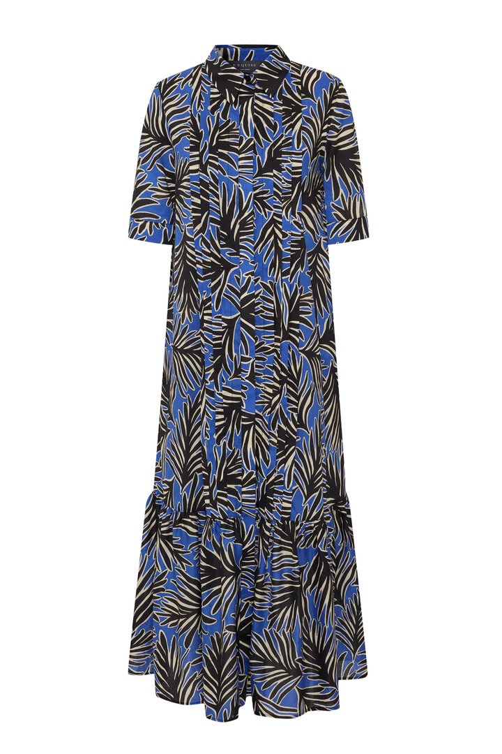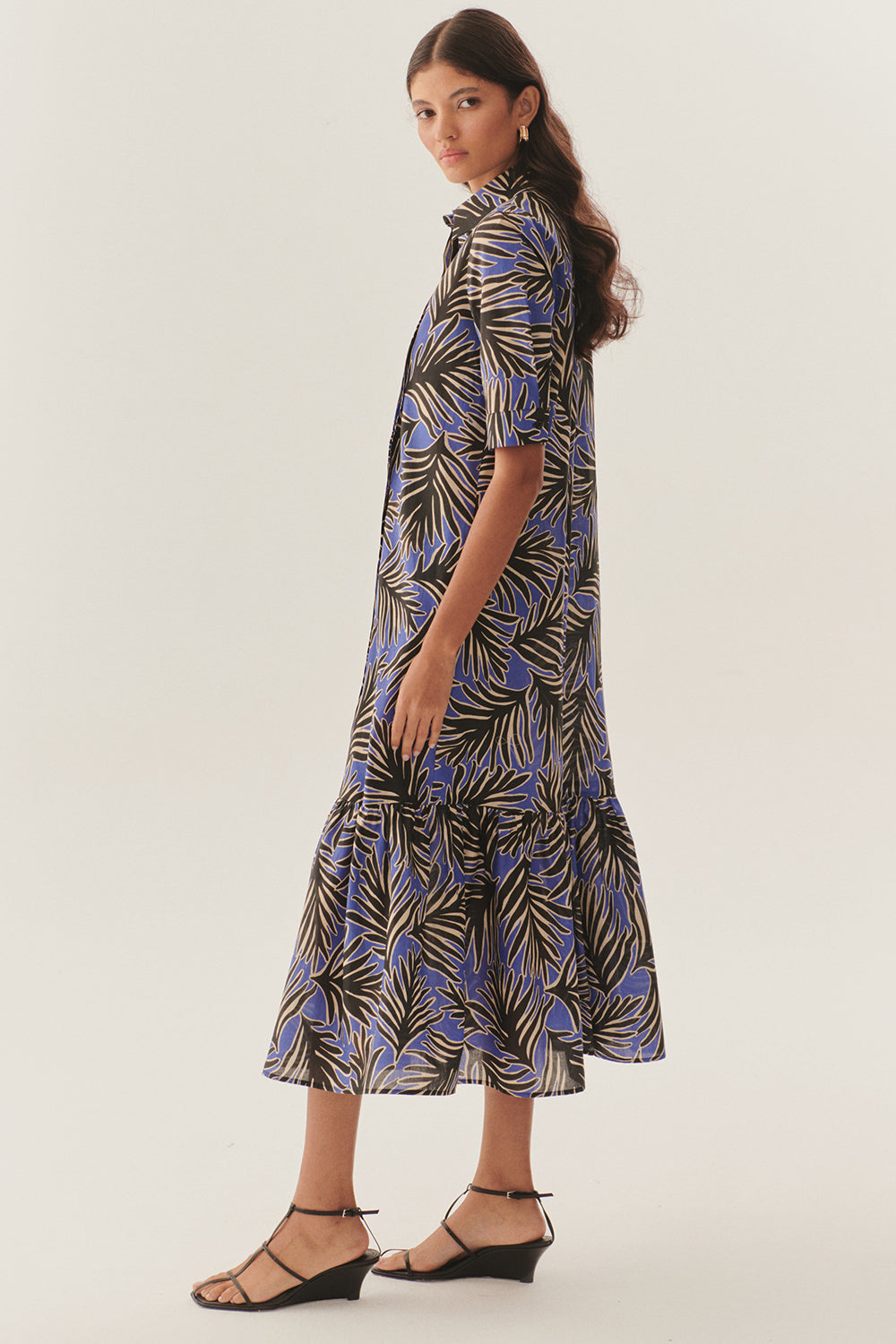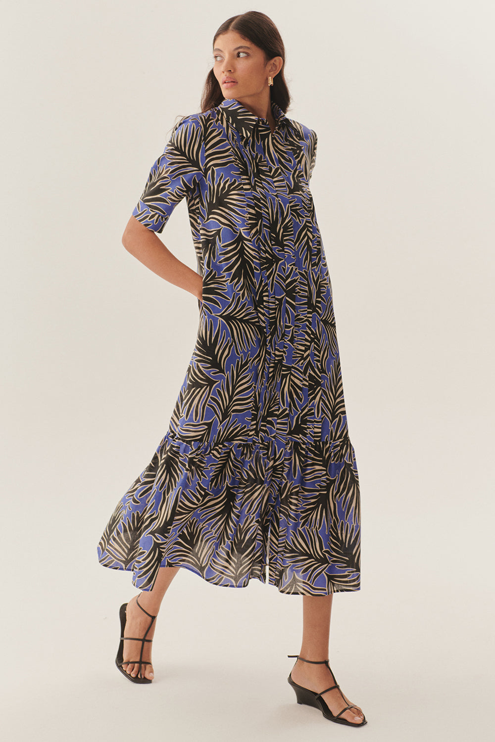 Yaprak Desenli Pamuklu Regular Midi Gömlek Elbise