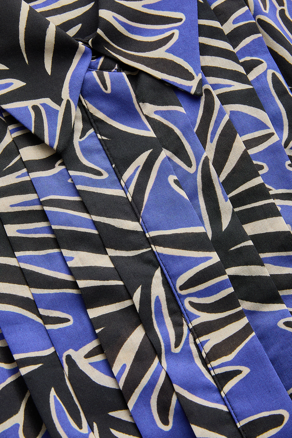 Zarif ve iddialı bir stilin anahtarı olan Yaprak Desenli Midi Elbise, hem günlük hem de özel davetlerde rahatça kullanabileceğiniz şık bir parçadır. Siyah ve bej tonlarındaki yaprak desenleri, canlı mavi arka plan ile birleşerek modern ve göz alıcı bir görünüm sunar.Düğmeli ön kısmı, klasik yakası ve kısa kolları ile hem şık hem de rahat bir kullanım sağlar. Katmanlı midi boy eteği, hareketinize zarafet katarken vücuda hoş bir döküm kazandırır.Bu elbiseyi günlük bir şıklık için sandaletlerle, özel davetlerde ise topuklu ayakkabılar ve zarif takılarla kombinleyebilirsiniz.